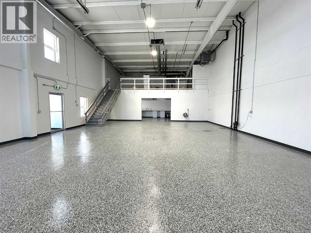 Newly Converted Commercial Condo Bay – Ideal for the Hobbyist or Premium Storage. This newly strata-titled building has transformed a former large facility into nine individual condo bays, each offering clean, functional, and secure space. Bay 1, the largest and most sought-after unit, stands out as the premium end bay with exceptional room and upgrades. Enjoy 1,979 sq ft of main floor area plus an additional 787 sq ft mezzanine, perfect for organizing equipment, creating a hobby workshop, or housing recreational vehicles and "toys." The bay features a large overhead door for easy access, multiple windows for natural light, and heating and air conditioning for year-round comfort. A washroom located on the mezzanine adds convenience, while the beautiful epoxy floors give the space a clean, polished look that’s easy to maintain. Bay 1 offers the perfect setup for anyone needing extra room for hobbies, gear, or high-quality storage in a newly converted condo-style setting. (id:51989)