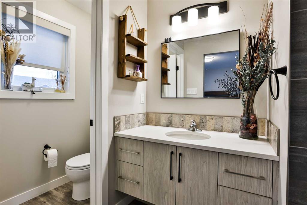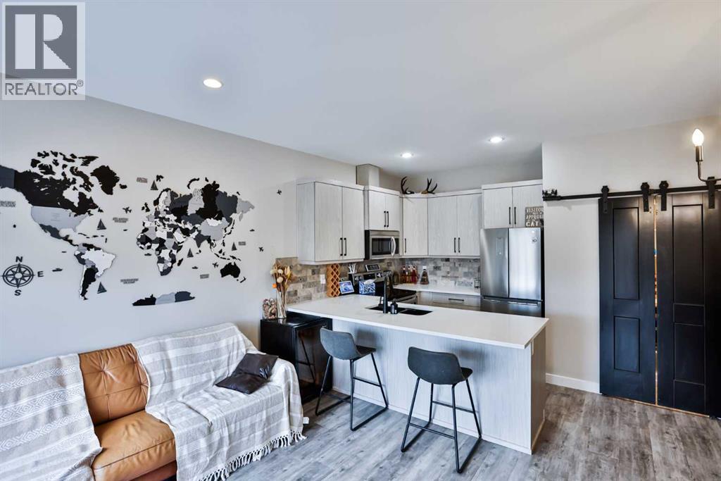 Welcome to this beautifully finished end-unit townhouse backing directly onto the coulees, offering incredible views and immediate access to walking and hiking trails right outside your back door.Built in 2018, this fully developed 2-storey townhouse features 2 bedrooms and 3 bathrooms and showcases modern finishes throughout. The main floor offers a bright and functional layout, highlighted by a stylish kitchen with flat-panel white oak veneer cabinetry, quartz countertops, tile backsplash, stainless steel appliances, undermount sink, and a large peninsula that provides plenty of counter and seating space.One of the standout features of this home is the custom-built butler’s pantry, complete with a butcher block countertop and double black sliding barn doors, creating both extra storage and a beautiful design statement.The quaint living room opens onto a back patio with wood deck and gazebo, perfectly positioned to take in the stunning coulee views — an ideal place to relax or entertain while enjoying the surrounding natural landscape.Upstairs, the spacious primary suite offers an amazing ensuite with a walk-in tiled shower with glass door, floating vanity with quartz countertop and undermount sink, private toilet room, and a large walk-in closet with wire shelving and custom black barn doors. The upper level also includes a second bedroom, full bathroom, and a convenient hallway nook perfect for a desk or workspace.The fully developed basement provides additional living space with a comfortable family room, full bathroom with tiled shower, and laundry area.This home also features a Google Smart Home system, allowing you to conveniently control your lights, temperature, doorbell, and door locks directly from your phone or tablet.Additional highlights include the convenience of a single attached garage, Hardieboard siding, aluminum railings, and low-maintenance landscaping for long-term durability and ease of care. Located in North Lethbridge, this hom e has schools, shopping, and nature all close by. Call your favorite agent today to view! (id:51989)