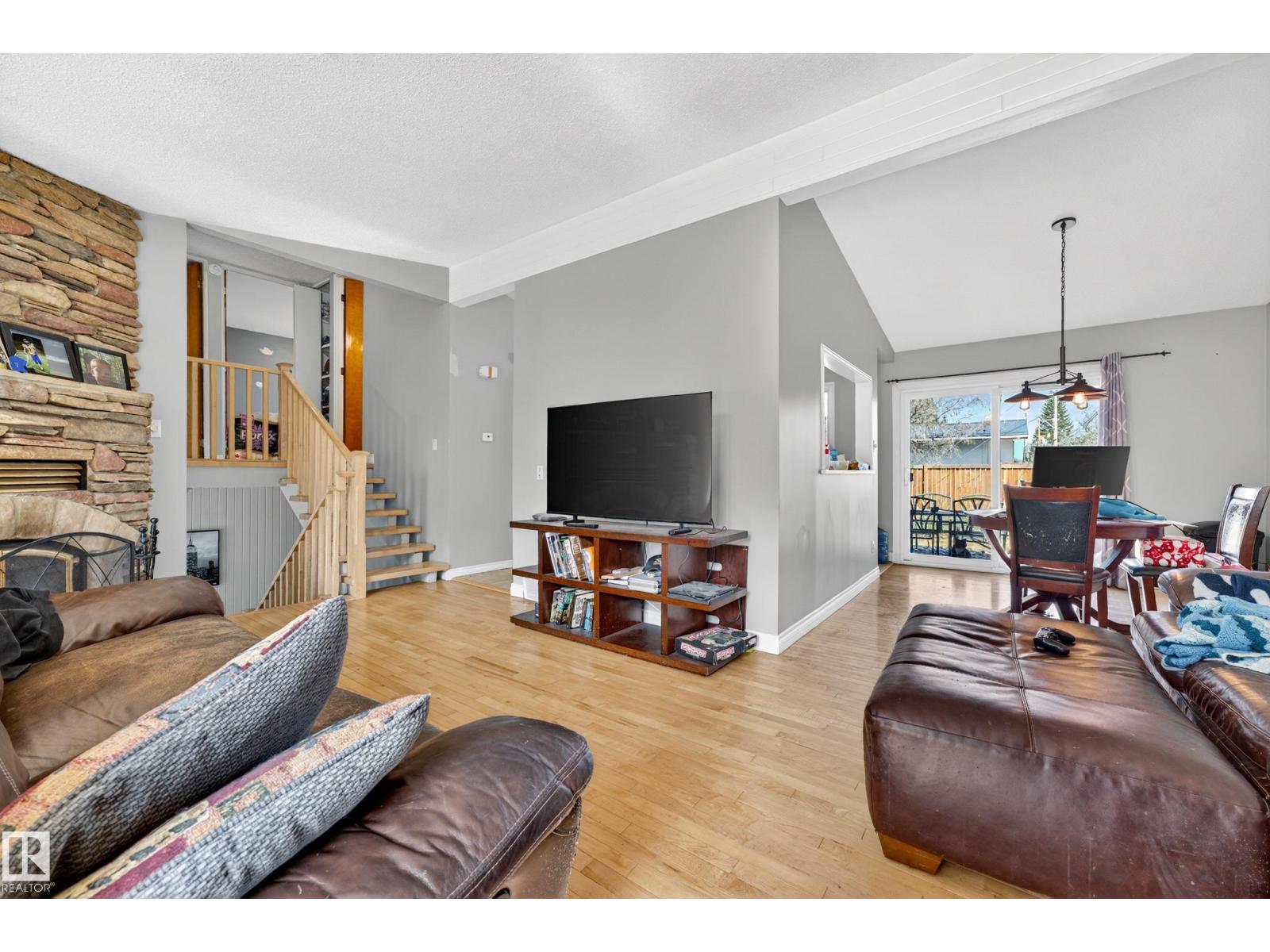 The home you have been waiting for in the heart of Grandin situated on a large private corner lot. Beautifully updated, vaulted ceilings, 4 Level Split with 3 bedrooms and 2.5 baths! Upgraded windows, maple hardwood floors, travertine tile, newer front/back doors and patio sliders, shingles have been replaced in the last 10 years and large deck. Spacious living room with wood burning fireplace and tons of natural light. Upstairs offers 3 bedrooms, primarily with ensuite. Downstairs has egress windows. Oversized single car garage with additional parking pad. Amazing opportunity in Grandin Surrounded by Parks, Green Spaces, Great Schools, Mature Neighbourhood. (id:51989)