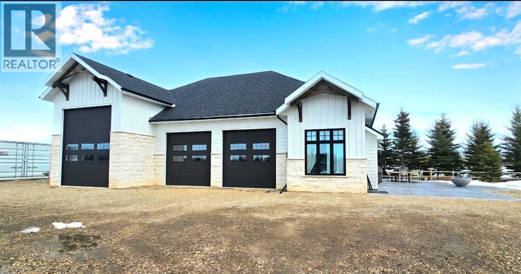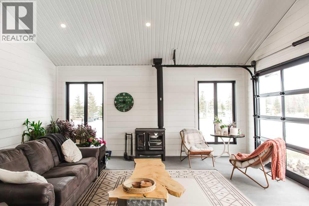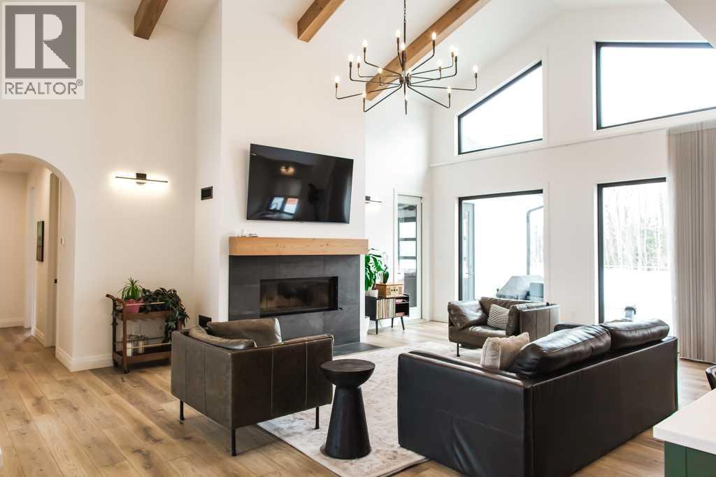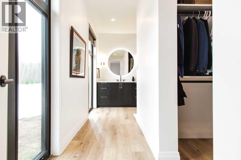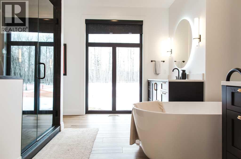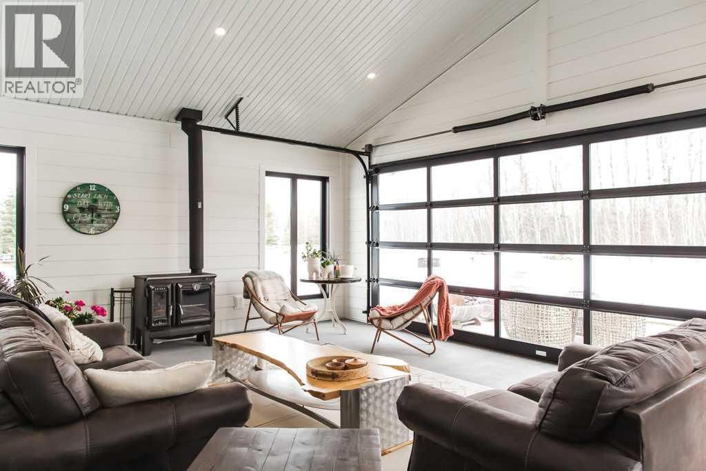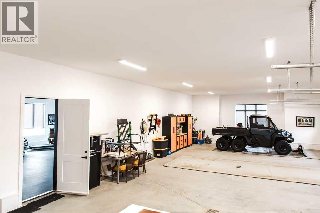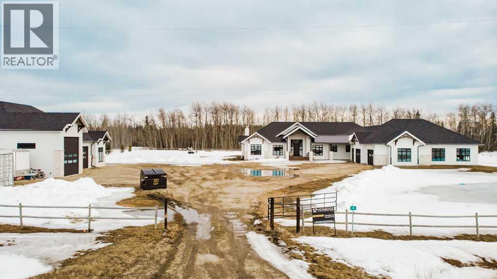 Experience the pinnacle of executive acreage living in this brand-new, fully custom estate by Homedge Grande Prairie. Completed in December 2024, this architectural triumph is perfectly positioned on 2.6 private acres backing directly onto Crown land and Bear Creek. Here, your backyard is a permanent sanctuary of protected forest and water, ensuring a level of seclusion that is simply irreplaceable.The Residence: Modern SophisticationSpanning over 4,200 sq ft of finished living space, the main home is a masterclass in "single-level luxury." The open-concept floor plan is anchored by floor-to-ceiling windows that dissolve the boundaries between the designer interior and the rugged natural beauty outside.The Chef’s Atelier: A culinary dream featuring a 48” Viking range, Sub-Zero panel-ready refrigeration, and a massive 12-foot social island. The walkthrough butler’s pantry—complete with Sub-Zero drawer fridges and a dedicated coffee station—makes hosting effortless.The Sunroom (The Crown Jewel): Designed for all four seasons, this space features soaring ceilings, cement in-floor heating, and a wood-burning cookstove. In the summer, the glass garage-style door disappears to merge with the patio; in the winter, it remains a warm, panoramic vantage point overlooking your private swimming pond.The Primary Retreat: A spa-inspired sanctuary with a freestanding soaker tub, a massive walk-in shower, and a boutique-style closet.The Lower Level: Includes a 1,200 sq ft ground-level gym/flex space with direct backyard access, perfect for the fitness enthusiast or a high-end hobby room. Rarely does a secondary building match the caliber of the main home. Built in 2020, this 2,500 sq ft fully finished shop is a professional-grade facility:3-Bay Configuration including a dedicated RV bay.Full Living/Office Quarters: Featuring dual offices, a full kitchen, laundry, and a bathroom.Climate-controlled with A/C and integrated into the property’s full reverse osmosis wate r system.Technical Excellence & ComfortThis estate is as smart as it is beautiful. Designed for total peace of mind, the mechanical systems include:Climate Control: Air conditioning in the home, gym, and shop; dual furnaces.Water Security: High-efficiency well with a comprehensive Reverse Osmosis system servicing the entire property.Preparedness: Full hookups installed and ready for a Generac backup system.Quality Finishes: Wide-plank LVP flooring, an LG Steam Closet (Styler) in the designer laundry, and custom blinds throughout.This is more than a home; it is a legacy property. (id:51989)
