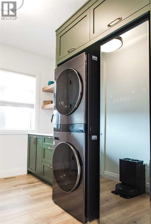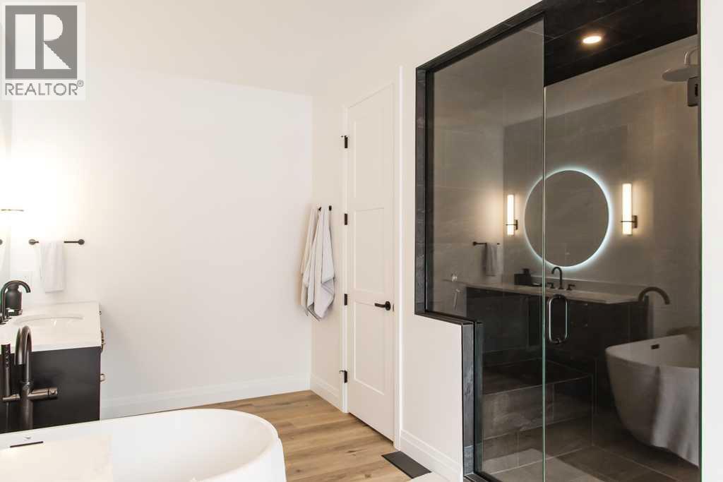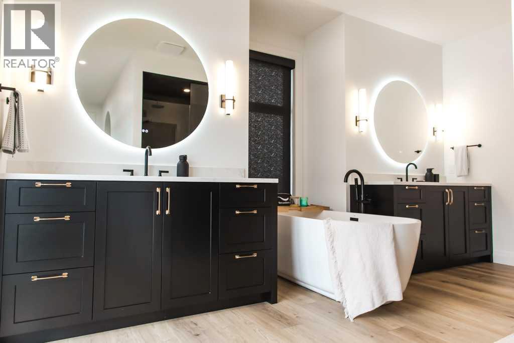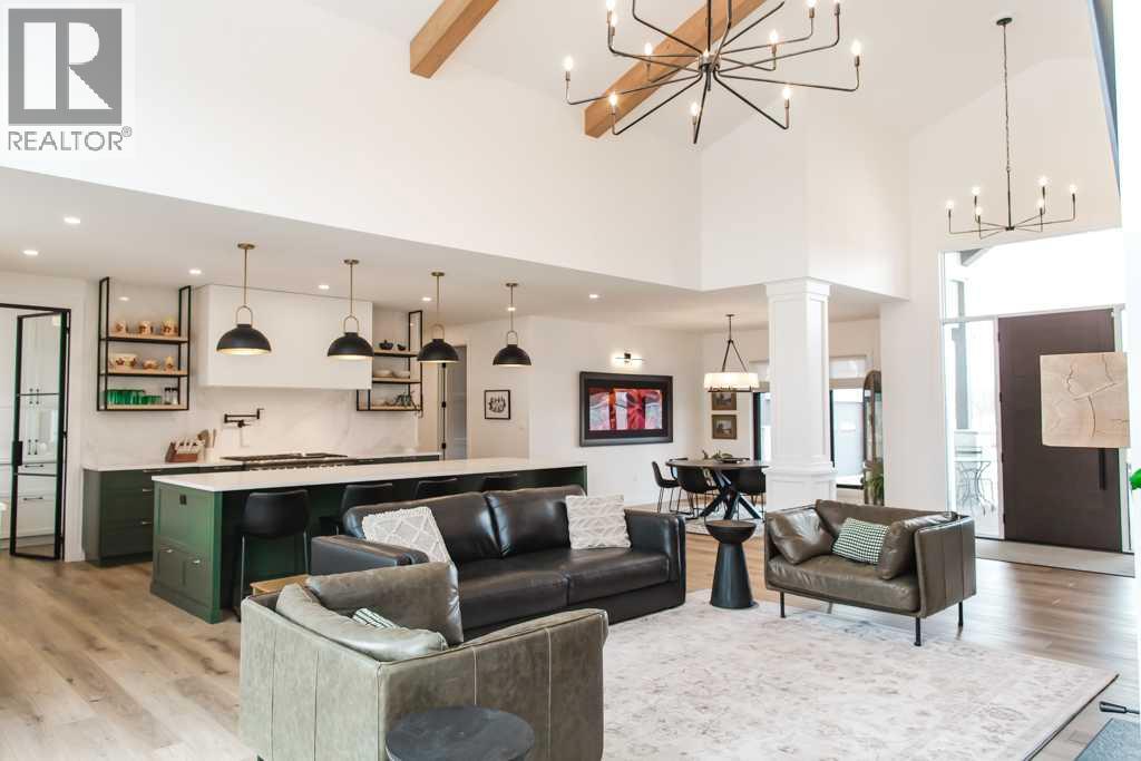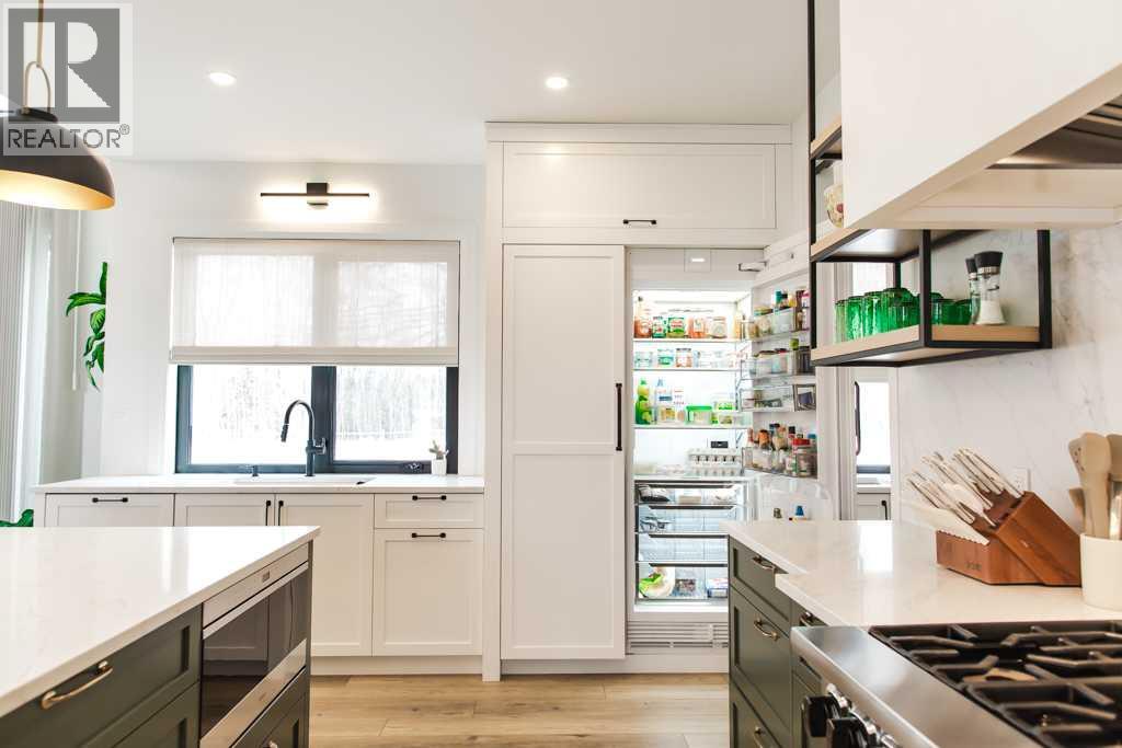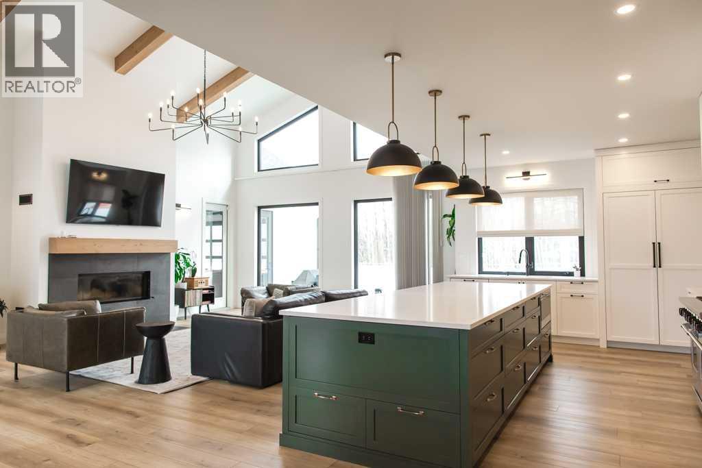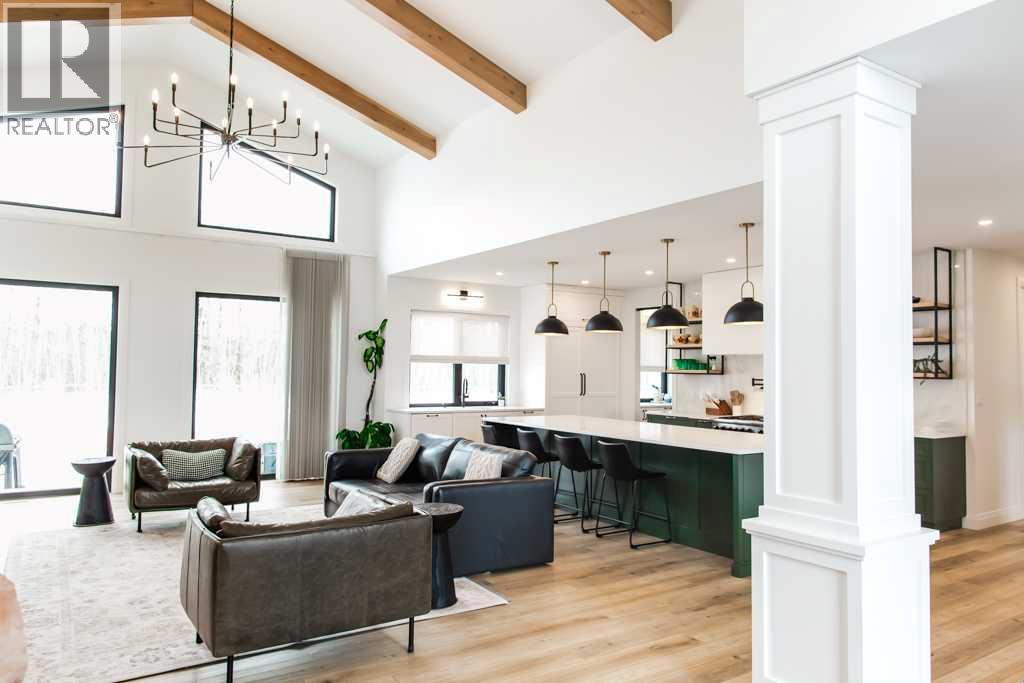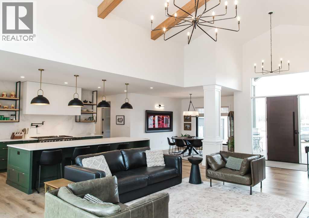 Experience the pinnacle of executive acreage living in this brand-new, fully custom estate by Homedge Grande Prairie. Completed in December 2024, this architectural triumph is perfectly positioned on 2.6 private acres backing directly onto Crown land and Bear Creek. Here, your backyard is a permanent sanctuary of protected forest and water, ensuring a level of seclusion that is simply irreplaceable.The Residence: Modern SophisticationSpanning over 4,200 sq ft of finished living space, the main home is a masterclass in "single-level luxury." The open-concept floor plan is anchored by floor-to-ceiling windows that dissolve the boundaries between the designer interior and the rugged natural beauty outside.The Chef’s Atelier: A culinary dream featuring a 48” Viking range, Sub-Zero panel-ready refrigeration, and a massive 12-foot social island. The walkthrough butler’s pantry—complete with Sub-Zero drawer fridges and a dedicated coffee station—makes hosting effortless.The Sunroom (The Crown Jewel): Designed for all four seasons, this space features soaring ceilings, cement in-floor heating, and a wood-burning cookstove. In the summer, the glass garage-style door disappears to merge with the patio; in the winter, it remains a warm, panoramic vantage point overlooking your private swimming pond.The Primary Retreat: A spa-inspired sanctuary with a freestanding soaker tub, a massive walk-in shower, and a boutique-style closet.The Lower Level: Includes a 1,200 sq ft ground-level gym/flex space with direct backyard access, perfect for the fitness enthusiast or a high-end hobby room. Rarely does a secondary building match the caliber of the main home. Built in 2020, this 2,500 sq ft fully finished shop is a professional-grade facility:3-Bay Configuration including a dedicated RV bay.Full Living/Office Quarters: Featuring dual offices, a full kitchen, laundry, and a bathroom.Climate-controlled with A/C and integrated into the property’s full reverse osmosis wate r system.Technical Excellence & ComfortThis estate is as smart as it is beautiful. Designed for total peace of mind, the mechanical systems include:Climate Control: Air conditioning in the home, gym, and shop; dual furnaces.Water Security: High-efficiency well with a comprehensive Reverse Osmosis system servicing the entire property.Preparedness: Full hookups installed and ready for a Generac backup system.Quality Finishes: Wide-plank LVP flooring, an LG Steam Closet (Styler) in the designer laundry, and custom blinds throughout.This is more than a home; it is a legacy property. (id:51989)