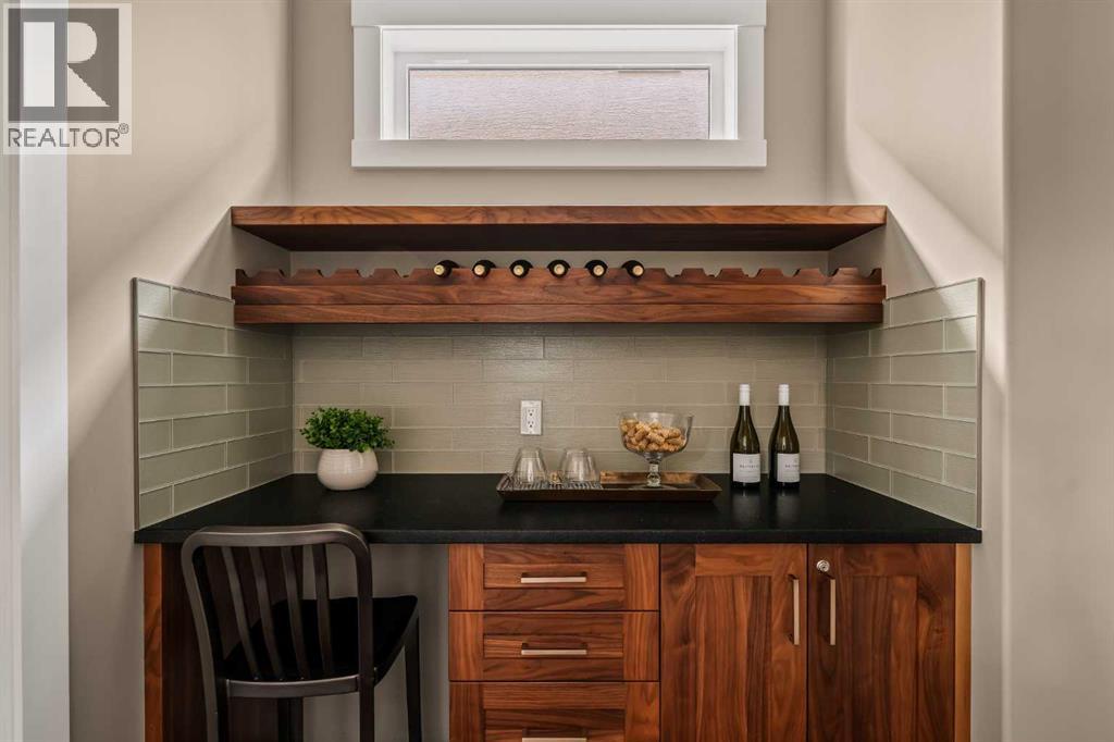 Welcome to this exceptional Albi Homes-built Wellington 5, a stunning executive residence offering over 4,000 sq.ft. of living space, a triple attached garage, air conditioning, & a rare private setting backing onto a wooded area & playground—with no neighbours behind. Positioned with an east-facing backyard, this home captures incredible morning light & tranquil views while providing an ideal space for families to relax & entertain. Designed with 4 bedrooms, 3.5 bathrooms, & built-in speakers, every detail of this home reflects quality craftsmanship & luxury.The main level showcases a private home office with sliding pocket doors provides a quiet workspace, while the butler’s pantry connects seamlessly to the show-stopping gourmet kitchen. Here you’ll find soft white full-height cabinetry, stone countertops, & a premium stainless steel built-in appliance package, highlighted by a Viking gas stove & oven & chimney hood fan. The oversized centre island with prep sink anchors the space, offering plenty of room for gathering and entertaining.The living room impresses with a coffered ceiling & a floor-to-ceiling stone surround gas fireplace with mantle, creating a warm focal point for the home. The dedicated dining area with elegant pendant lighting overlooks the private backyard, where natural light pours in through expansive windows. Step outside through sliding doors onto the main deck, with additional access to the north side deck off the dining area, perfect for outdoor dining & entertaining. Completing the main level is a well-designed mudroom with built-in bench, along with a convenient powder room. Upstairs, the luxurious primary retreat offers a peaceful escape featuring a tray ceiling & beautiful views of the wooded backdrop. The spa-inspired 5-piece ensuite includes a dual vanity, freestanding soaker tub, & custom glass steam shower with rainfall head & built-in bench. The walk-in closet with custom organizers completes this impressive space. Two additiona l jack-and-jill style bedrooms share a 5-piece bathroom with dual vanities & a separate tub/shower & toilet room, providing privacy & functionality for family living. A laundry room with sink, cabinetry, & abundant storage adds convenience to this level.The fully developed basement expands the home’s living space with a huge family room & recreation area—ideal for a home theatre, gym, games room, or entertainment space. This level also features a fourth bedroom, an additional full bathroom, under-stairs storage, & extensive storage within the mechanical room. The basement is also roughed-in for radiant in-floor heating, offering future comfort upgrades.Step outside to a beautifully designed backyard retreat, featuring a spacious wrap-around deck with built-in pergola, stairs leading to a paving stone patio, and plenty of green space for children and pets to play—all while enjoying the privacy of the treed setting and playground beyond. (id:51989)