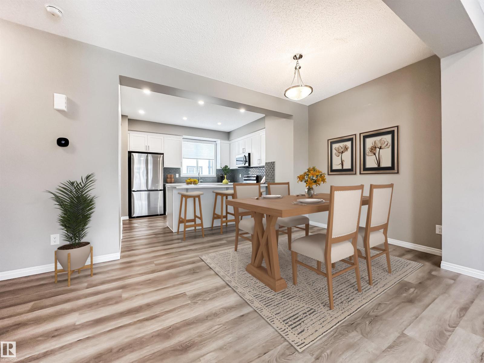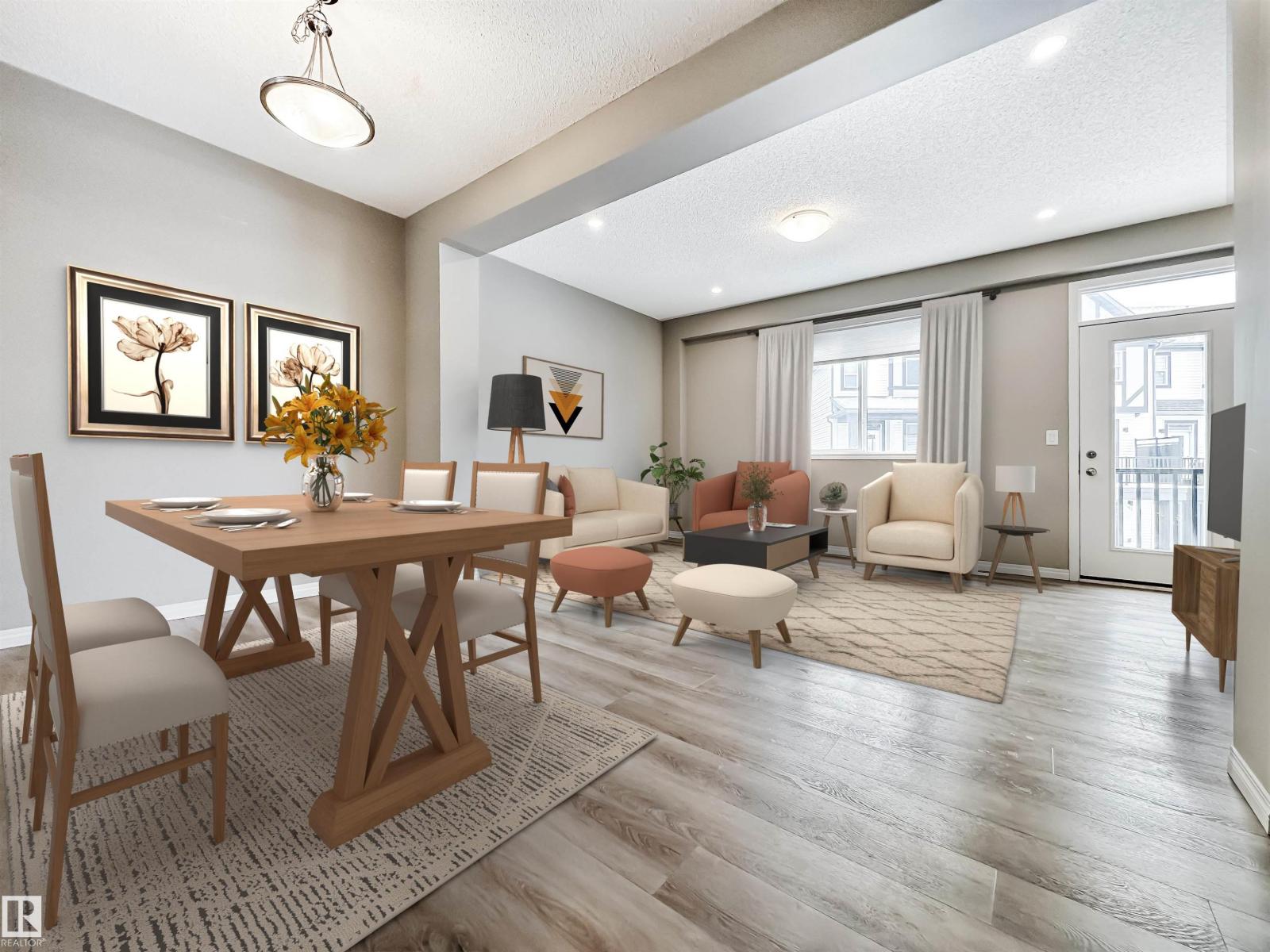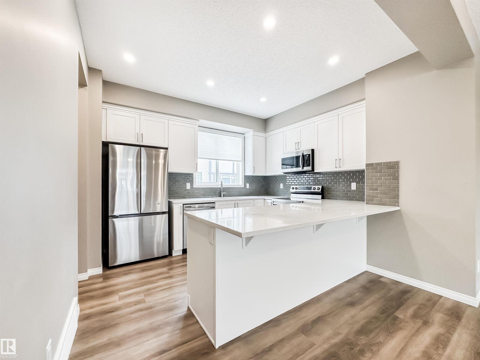 MOVE-IN READY WITH 3 BEDROOMS & DOUBLE ATTACHED GARAGE! This bright and spacious townhouse offers the space and finishes you’ve been waiting for. The main floor features an open living and dining area, balcony overlooking the courtyard, and a stylish kitchen featuring quartz countertops, white cabinetry, stainless steel appliances, and a pantry. A convenient 2-piece bath and main floor laundry complete this level. Upstairs, you’ll find three generous bedrooms including a huge primary retreat, a sleek 3-piece ensuite with quartz counters, plus a full 4-piece bath for family or guests. The lower level offers a perfect home office, gym, or guest space, along with utilities and access to the double attached garage. Steps to Shauna May Seneca K–9 School, close to shopping, parks, and quick access to the Henday. Stylish, functional, and ready for its next owner. Welcome home! (id:51989)