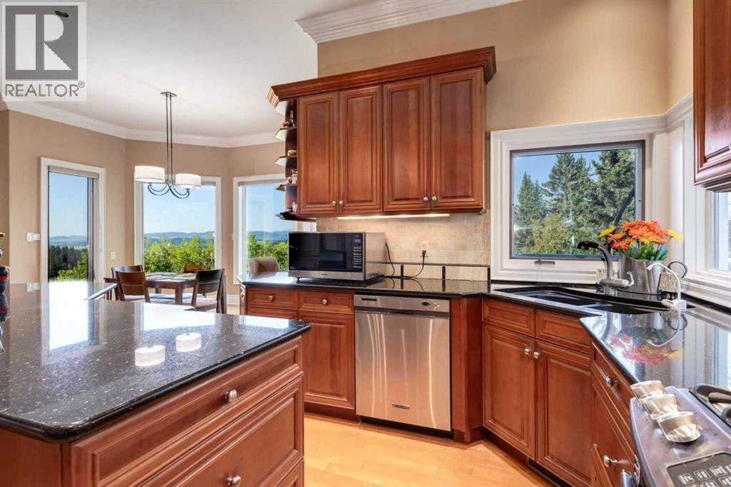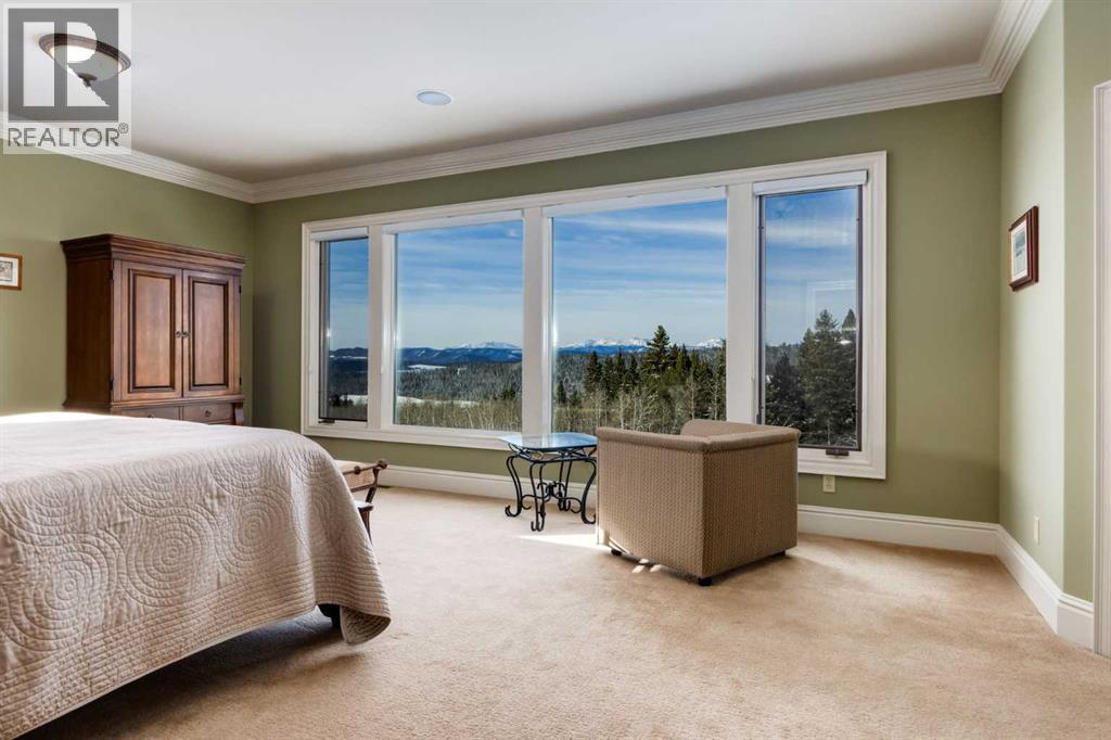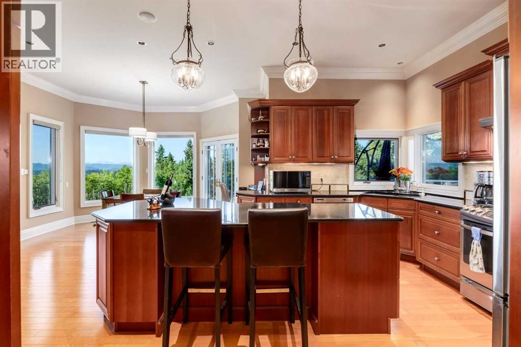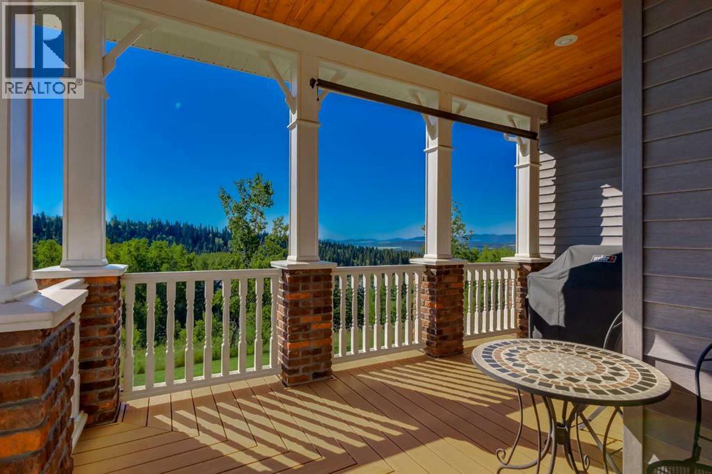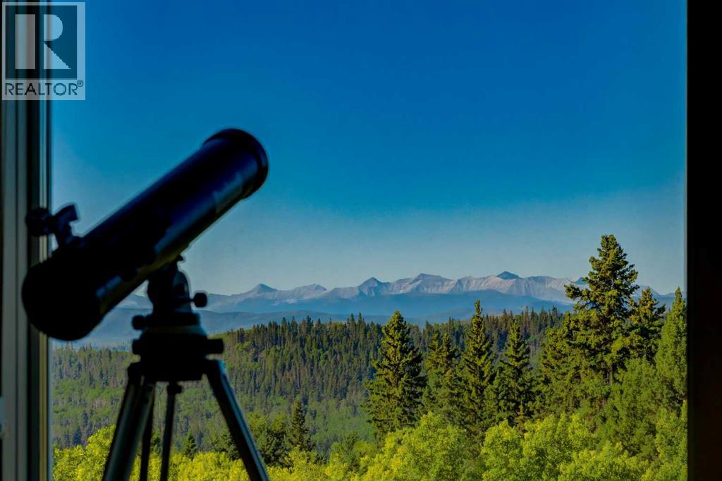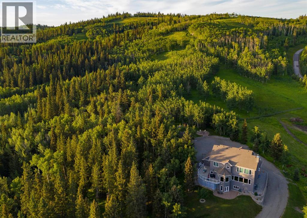 We’re extremely pleased to present one of the most impeccably maintained luxury acreages to hit the market—an extraordinary 9.86-acre estate blending pristine natural beauty with refined, executive living. Surrounded by mature trees and picturesque horse meadows, this stunning two-storey home is perfectly positioned to capture the Northern Lights and sweeping, unobstructed views of the Rocky Mountains and the valley stretching toward John Ware Ridge. Designed for both elevated family living and sophisticated entertaining, the home offers 5 spacious bedrooms (4 up, 1 down) and an exceptional layout. The main floor features gracious principal rooms, a private office, and expansive windows that flood the space with natural light while framing the breathtaking scenery. The kitchen is a gourmet chef’s dream, with pristine cabinetry, granite counters, stainless steel appliances and an open concept that was designed with the mountain views at the top of mind. The wood burning fireplace and the country aesthetics suit the property perfectly. Upstairs, the family quarters provide comfort and privacy, including a big primary bedroom; showcasing the view and west sunsets, along with a walk-in closet and 5-piece ensuite. While the fully developed walkout basement is an entertainer’s dream—complete with a large family/games room, bedroom, and a dedicated home theatre room to design your ultimate movie-night experience. This residence showcases true pride of ownership, with meticulous attention to detail and condition that is simply unmatched. Highlights include t 30-year fibreglass shingles (original) with new ridge caps (installed 2023), dual central A/C (2019), and a high-efficiency combination boiler system (2021) delivering on-demand hot water and in-floor heating in basement and attached garage. 2-Lennox furnaces with electronic air filtration further enhance comfort and air quality and an electronic gate. Outdoors, the property is equally impressive. Enjoy the expansive u pper deck, walkout patio, and composite wraparound porch —perfect for taking in the panoramic views from every level. A beautifully terraced firepit area finished in unistone complements the turnaround parking pad, interlocking stone driveway and landscaped garden walls. The grounds are meticulously maintained and cleared of deadfall, with forest pathways, horse pasture, a charming bridge over a seasonal run-off stream, and endless usable space, including a tee-box and chipping green too keep that short game in order. Additional features include an oversized-heated double attached garage (32'2" x 24'6"), a single heated detached utility garage with work benches and 100amp panel, trailer parking, under-deck storage, and a separate shed with lights—offering exceptional functionality for acreage living. This is a rare opportunity to own a truly immaculate, turnkey estate where luxury, privacy, and nature converge. Properties of this caliber are seldom offered—experience acreage living at its absolute finest. (id:51989)