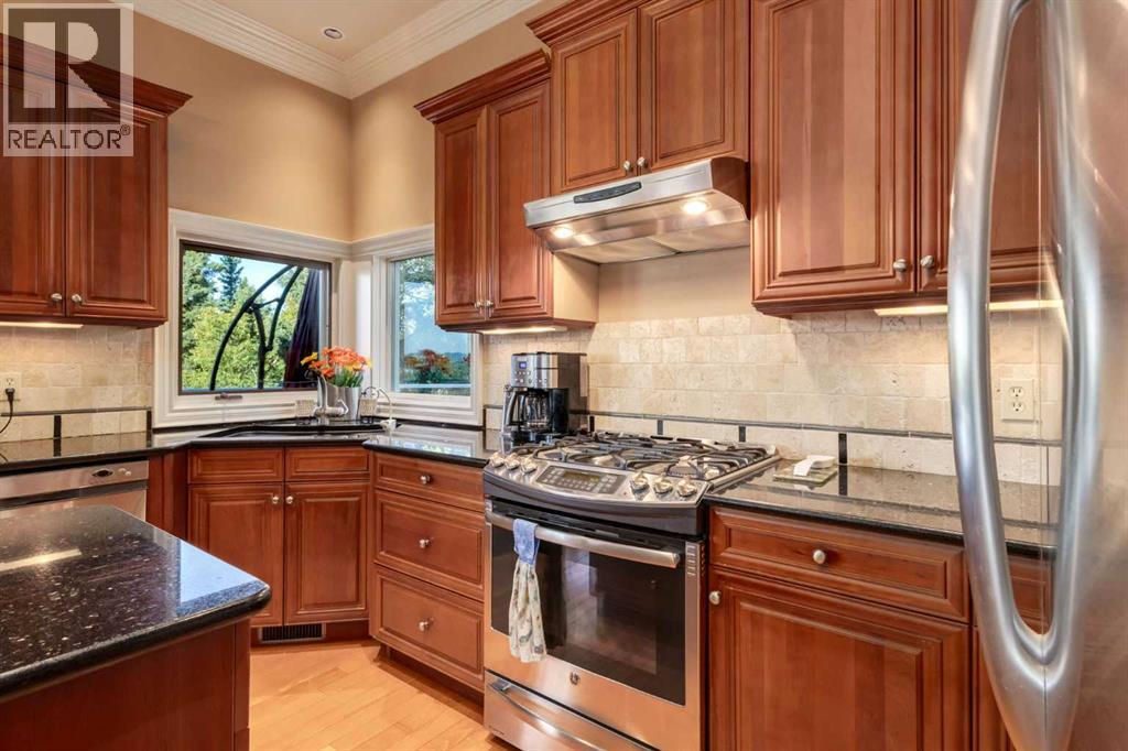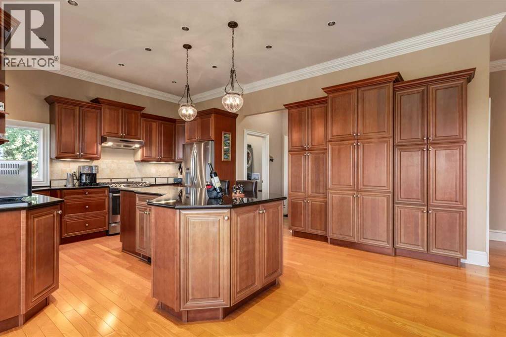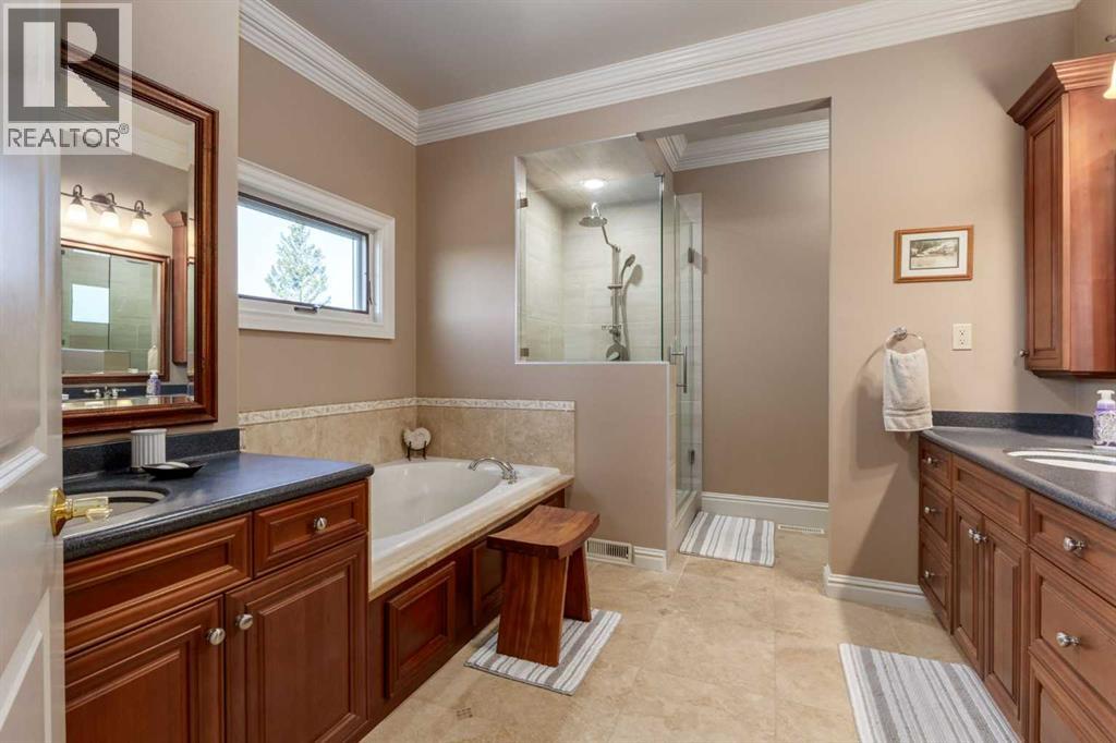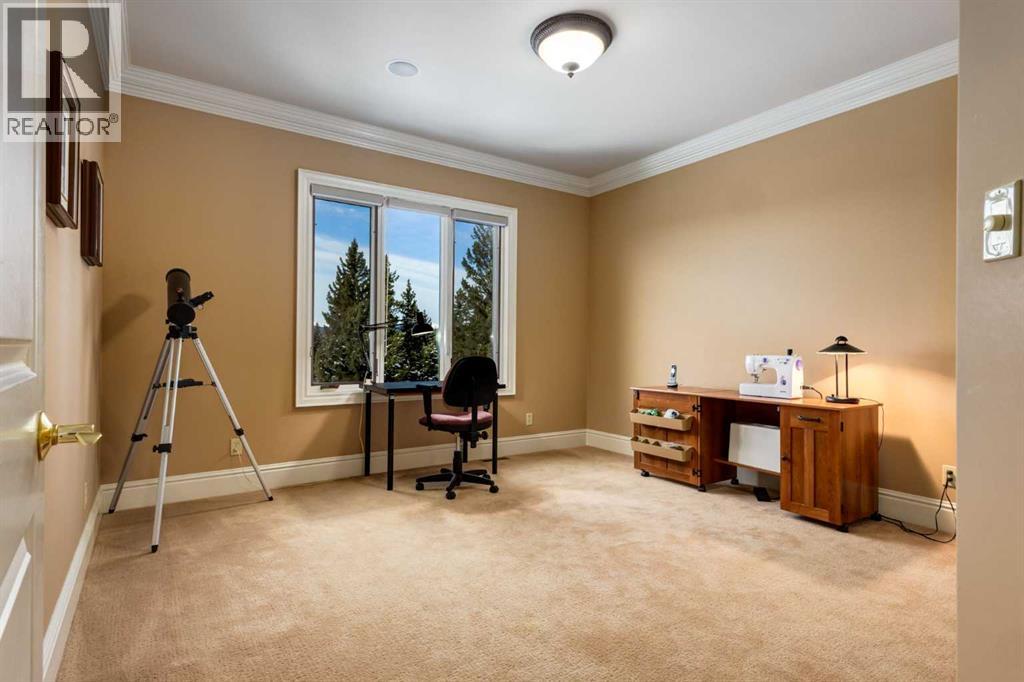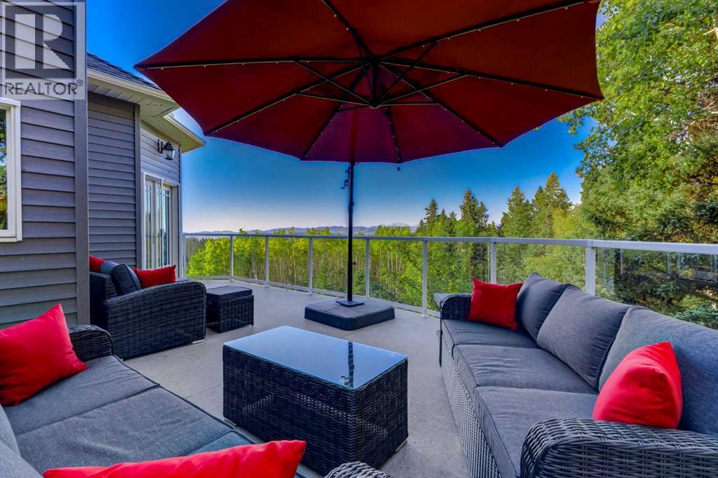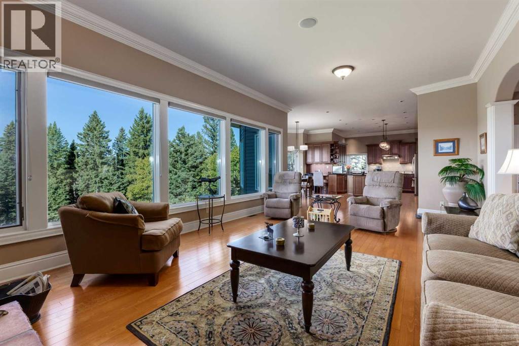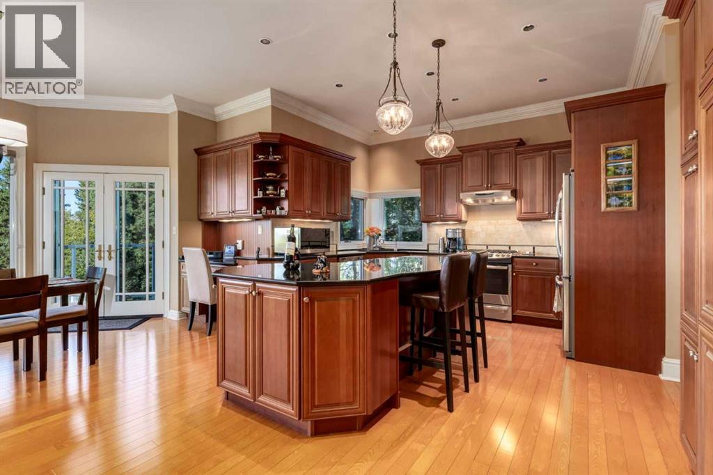 We’re extremely pleased to present one of the most impeccably maintained luxury acreages to hit the market—an extraordinary 9.86-acre estate blending pristine natural beauty with refined, executive living. Surrounded by mature trees and picturesque horse meadows, this stunning two-storey home is perfectly positioned to capture the Northern Lights and sweeping, unobstructed views of the Rocky Mountains and the valley stretching toward John Ware Ridge. Designed for both elevated family living and sophisticated entertaining, the home offers 5 spacious bedrooms (4 up, 1 down) and an exceptional layout. The main floor features gracious principal rooms, a private office, and expansive windows that flood the space with natural light while framing the breathtaking scenery. The kitchen is a gourmet chef’s dream, with pristine cabinetry, granite counters, stainless steel appliances and an open concept that was designed with the mountain views at the top of mind. The wood burning fireplace and the country aesthetics suit the property perfectly. Upstairs, the family quarters provide comfort and privacy, including a big primary bedroom; showcasing the view and west sunsets, along with a walk-in closet and 5-piece ensuite. While the fully developed walkout basement is an entertainer’s dream—complete with a large family/games room, bedroom, and a dedicated home theatre room to design your ultimate movie-night experience. This residence showcases true pride of ownership, with meticulous attention to detail and condition that is simply unmatched. Highlights include t 30-year fibreglass shingles (original) with new ridge caps (installed 2023), dual central A/C (2019), and a high-efficiency combination boiler system (2021) delivering on-demand hot water and in-floor heating in basement and attached garage. 2-Lennox furnaces with electronic air filtration further enhance comfort and air quality and an electronic gate. Outdoors, the property is equally impressive. Enjoy the expansive u pper deck, walkout patio, and composite wraparound porch —perfect for taking in the panoramic views from every level. A beautifully terraced firepit area finished in unistone complements the turnaround parking pad, interlocking stone driveway and landscaped garden walls. The grounds are meticulously maintained and cleared of deadfall, with forest pathways, horse pasture, a charming bridge over a seasonal run-off stream, and endless usable space, including a tee-box and chipping green too keep that short game in order. Additional features include an oversized-heated double attached garage (32'2" x 24'6"), a single heated detached utility garage with work benches and 100amp panel, trailer parking, under-deck storage, and a separate shed with lights—offering exceptional functionality for acreage living. This is a rare opportunity to own a truly immaculate, turnkey estate where luxury, privacy, and nature converge. Properties of this caliber are seldom offered—experience acreage living at its absolute finest. (id:51989)