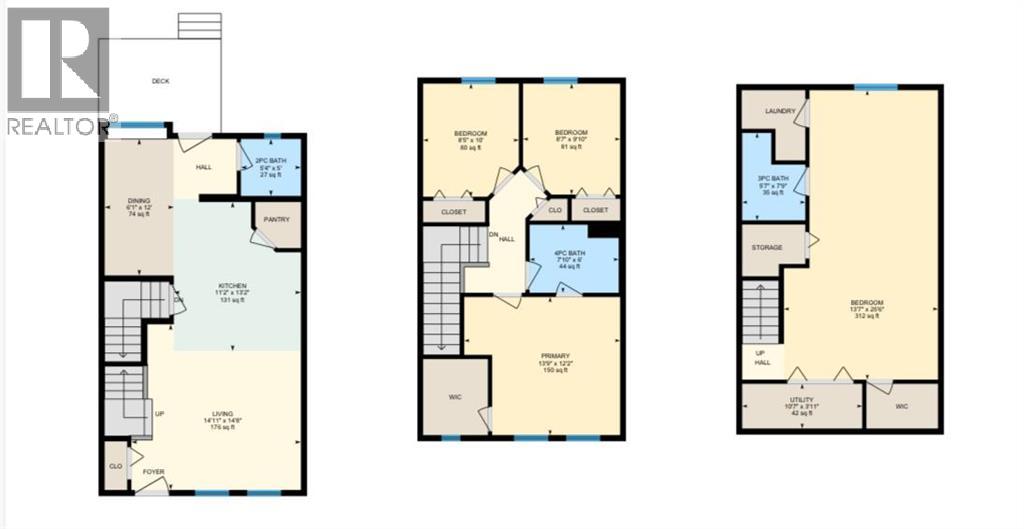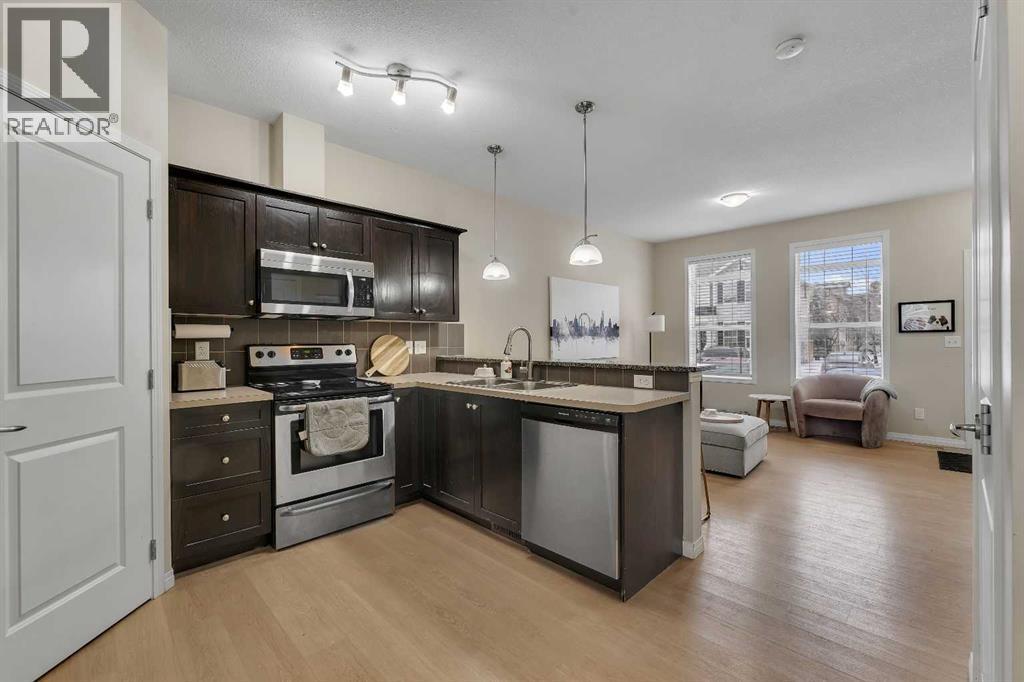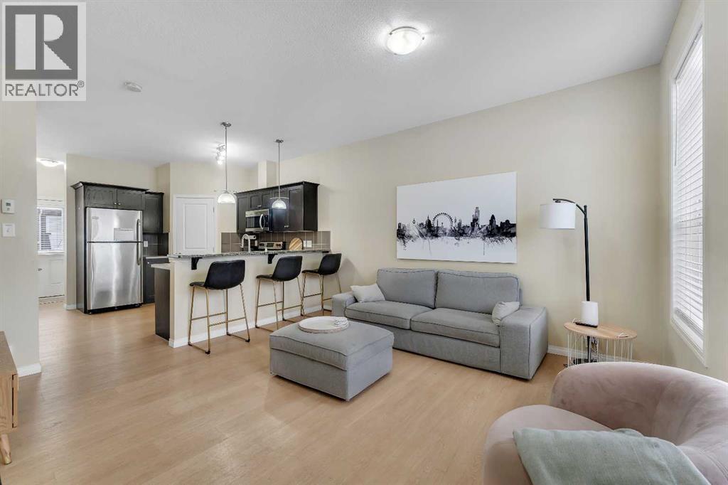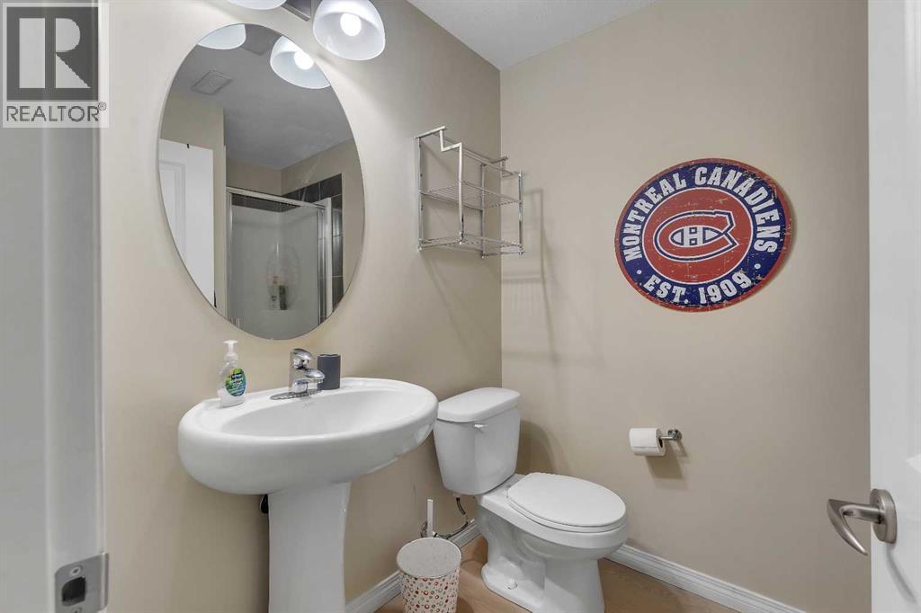 Exceptional value in this stylish and well-maintained townhome offering 1,749 sq ft of total finished living space, including a fully finished basement. The bright and open main floor features large windows that bring in plenty of natural light, creating a warm and inviting atmosphere. The spacious living room flows nicely through the main level, making it ideal for everyday living and entertaining.The kitchen offers plenty of counter space, stainless steel appliances, shaker-style cabinetry, and a walk-in pantry for extra storage. The adjoining dining area is perfect for family meals and gatherings, while a convenient 2-piece bathroom completes the main floor. Step outside to the back deck, perfect for summer barbecues and outdoor relaxation.Upstairs you will find a spacious primary bedroom with a large closet, along with two additional bedrooms and a 4-piece bathroom. The finished basement adds great extra space with a recreation room, 3-piece bathroom, and laundry area, making it ideal for kids, guests, or a media room.The complex offers one assigned parking stall plus additional common stalls available on a first-come, first-serve basis. A Club House is also available for gatherings and resident use.Located in the desirable community of Williamstown, you are just a 12-minute walk to Heron’s Cross Elementary School and steps from the 60-acre Williamstown environmental reserve with parks, ponds, playgrounds, pedestrian bridges, and scenic walking trails along Nose Creek. Well-managed and pet-friendly complex allowing up to two pets per unit, offering comfortable low-maintenance living. (id:51989)