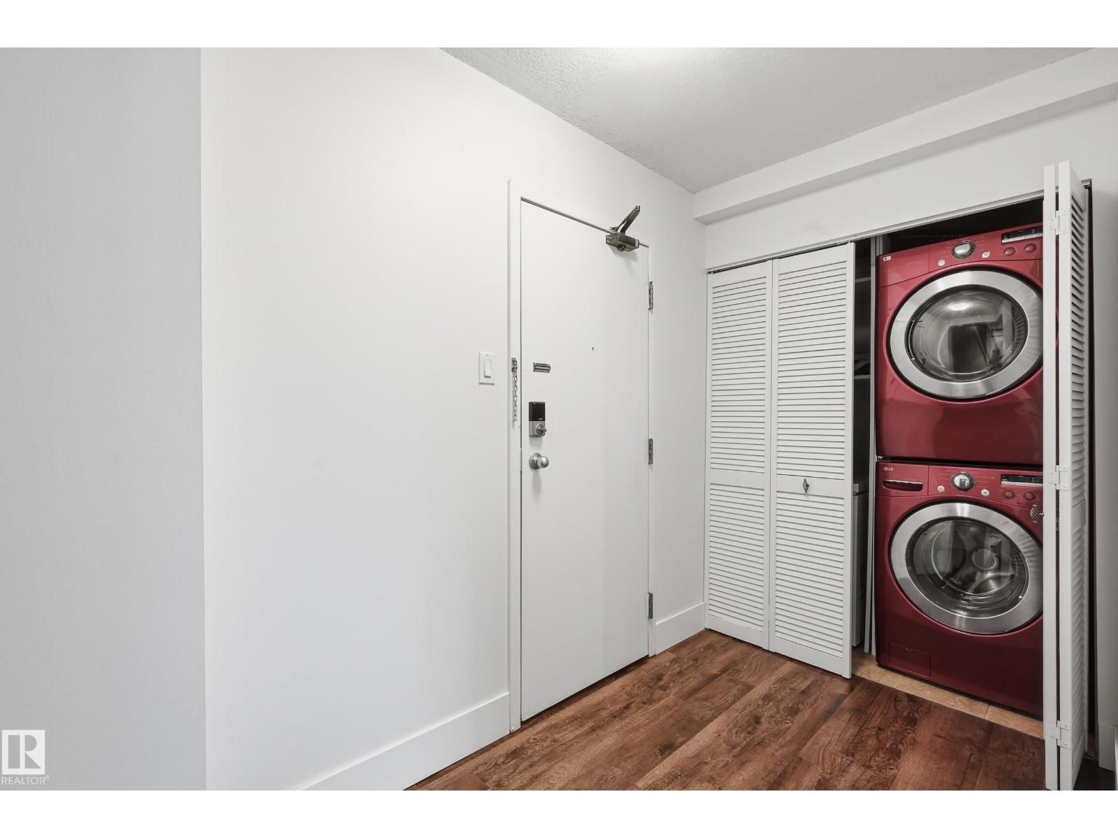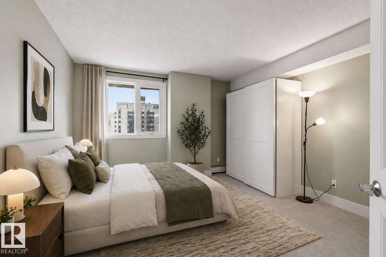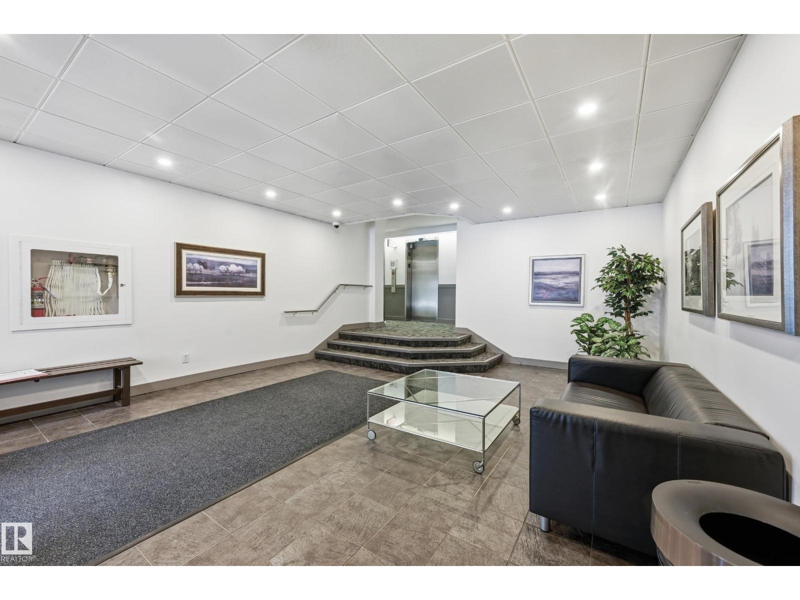 This TOP FLOOR 2 bedroom, 2 bathroom condo with River Valley Views offering over 1,000 sq.ft. of living space in the sought-after Tretheway, ideally located near the LRT, river valley walking/biking trails, and with quick access to shopping, the U of A, Brewery District, and Ice District. Freshly painted with newer carpet (2023), this well-maintained unit features an open-concept kitchen overlooking the living area with maple cabinetry, black appliances, vinyl plank flooring through the main living space. The main bath is conveniently located across from the second bedroom, while the ensuite includes a walk-in shower and heated tile floors. Enjoy the expansive west-facing balcony with beautiful treelined views. Includes assigned underground parking stall 13. Building amenities feature an exercise room, sauna, social room with pool table, and visitor parking. (id:51989)
