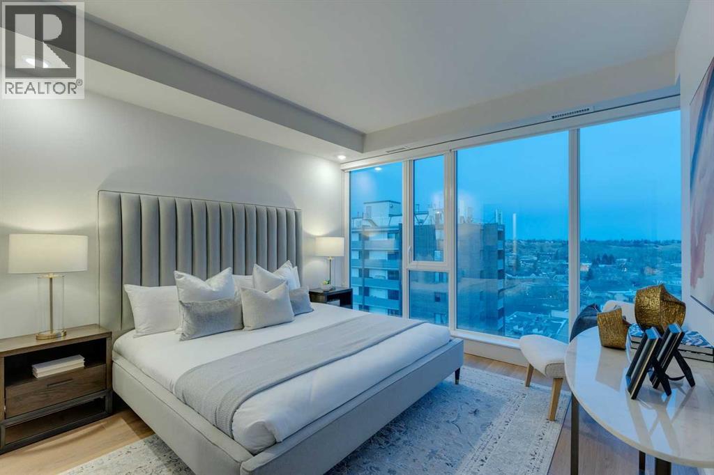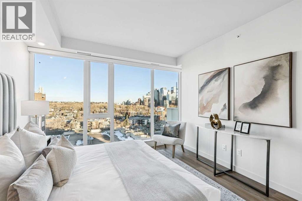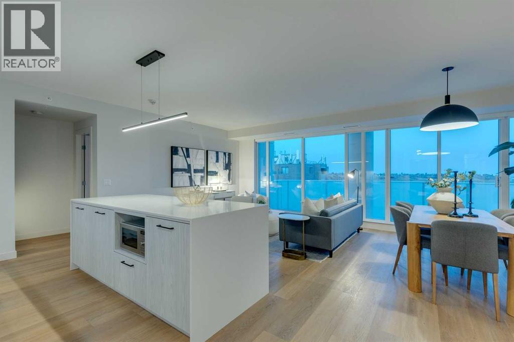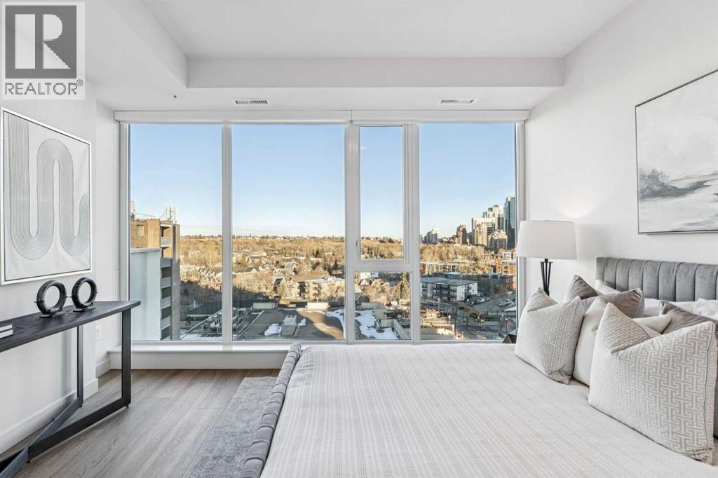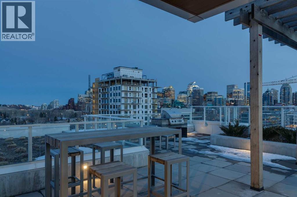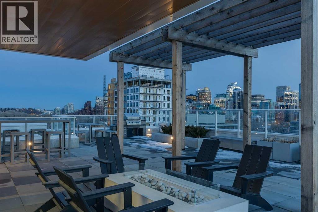Perched atop the sought-after Theodore, this exceptional 10th-floor penthouse presents a rare opportunity to experience refined urban living in the heart of Kensington. Showcasing over 1,400 square feet of beautifully curated living space, this pristine three-bedroom, three-bathroom residence blends sophisticated design with remarkable functionality—offered by the original owner and maintained in immaculate, show-home condition.From the moment you enter, soaring 9-foot ceilings, expansive floor-to-ceiling windows, and elegant luxury vinyl plank flooring create a bright, airy atmosphere while framing captivating views of downtown Calgary skyline. The open-concept living and dining area flows effortlessly onto a spacious private balcony—an inviting retreat to relax or entertain while enjoying the glittering city backdrop and convenient natural gas BBQ hookup.At the heart of the home, the designer kitchen is a chef’s dream. Thoughtfully appointed with sleek quartz countertops, abundant cabinetry, and a generous island with counter seating for four, the space is complemented by integrated Fisher & Paykel appliances, delivering both style and performance for everyday living and entertaining alike.The serene primary suite offers a luxurious escape, complete with expansive windows, a spacious walk-through closet, and a spa-inspired ensuite featuring heated floors, a free-standing soaker tub, shower, and dual vanity. Two additional well-proportioned bedrooms and full bathrooms provide exceptional flexibility for family, guests, or a stylish home office.Rarely found in inner-city condominium living, this penthouse includes three titled underground parking stalls and complete with storage locker, and convenient in-suite laundry & storage room —enhancing comfort and practicality.Residents of The Theodore also enjoy access to an extraordinary rooftop terrace, complete with outdoor fire pit, BBQ, lounge seating, and sweeping panoramic views that stretch from sunrise t o dusk. It’s a spectacular setting to unwind and gather with friends.Ideally located just steps from Kensington’s popular boutiques and restaurants, as well as Safeway Kensington, the home is also moments from the picturesque pathways and green space of Riley Park, the Bow River, nearby schools and the downtown core.Combining boutique luxury, an unbeatable inner-city location, and the rare convenience of three parking stalls, this remarkable penthouse offers the pinnacle of elevated urban living in one of Calgary’s most coveted neighbourhoods. (id:51989)