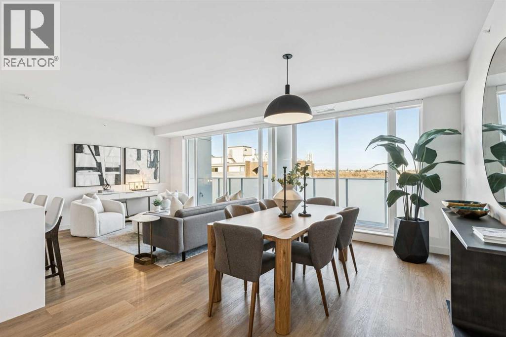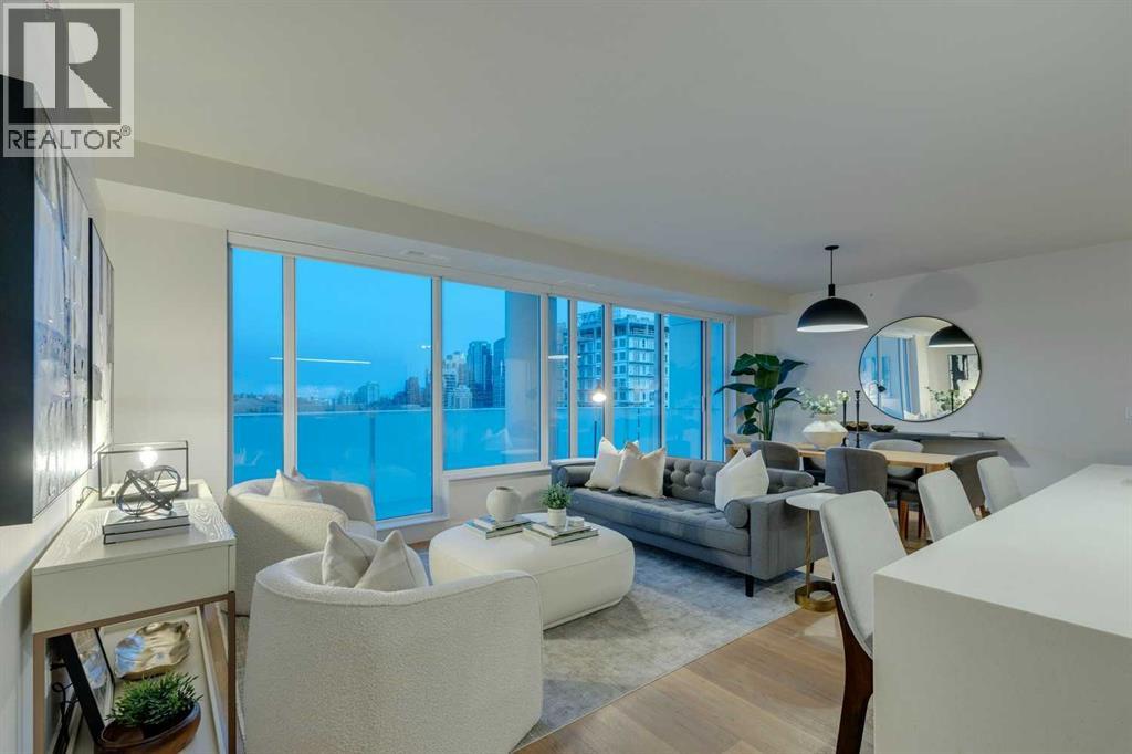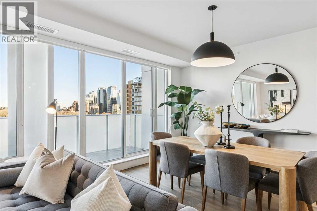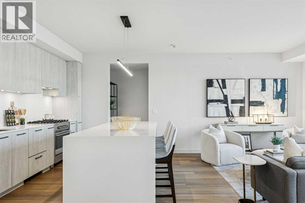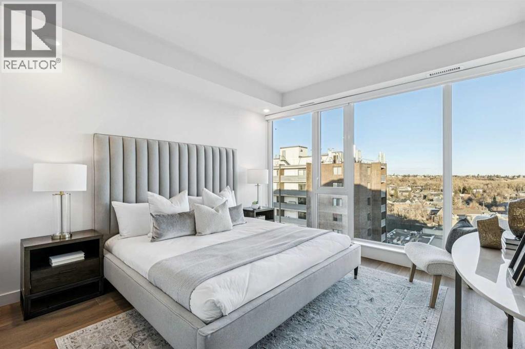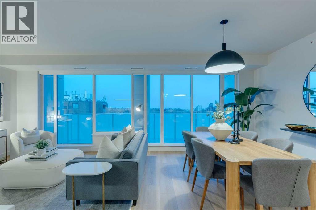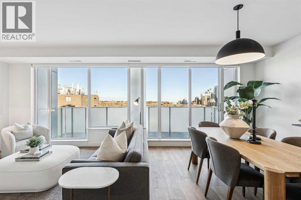 Perched atop the sought-after Theodore, this exceptional 10th-floor penthouse presents a rare opportunity to experience refined urban living in the heart of Kensington. Showcasing over 1,400 square feet of beautifully curated living space, this pristine three-bedroom, three-bathroom residence blends sophisticated design with remarkable functionality—offered by the original owner and maintained in immaculate, show-home condition.From the moment you enter, soaring 9-foot ceilings, expansive floor-to-ceiling windows, and elegant luxury vinyl plank flooring create a bright, airy atmosphere while framing captivating views of downtown Calgary skyline. The open-concept living and dining area flows effortlessly onto a spacious private balcony—an inviting retreat to relax or entertain while enjoying the glittering city backdrop and convenient natural gas BBQ hookup.At the heart of the home, the designer kitchen is a chef’s dream. Thoughtfully appointed with sleek quartz countertops, abundant cabinetry, and a generous island with counter seating for four, the space is complemented by integrated Fisher & Paykel appliances, delivering both style and performance for everyday living and entertaining alike.The serene primary suite offers a luxurious escape, complete with expansive windows, a spacious walk-through closet, and a spa-inspired ensuite featuring heated floors, a free-standing soaker tub, shower, and dual vanity. Two additional well-proportioned bedrooms and full bathrooms provide exceptional flexibility for family, guests, or a stylish home office.Rarely found in inner-city condominium living, this penthouse includes three titled underground parking stalls and complete with storage locker, and convenient in-suite laundry & storage room —enhancing comfort and practicality.Residents of The Theodore also enjoy access to an extraordinary rooftop terrace, complete with outdoor fire pit, BBQ, lounge seating, and sweeping panoramic views that stretch from sunrise t o dusk. It’s a spectacular setting to unwind and gather with friends.Ideally located just steps from Kensington’s popular boutiques and restaurants, as well as Safeway Kensington, the home is also moments from the picturesque pathways and green space of Riley Park, the Bow River, nearby schools and the downtown core.Combining boutique luxury, an unbeatable inner-city location, and the rare convenience of three parking stalls, this remarkable penthouse offers the pinnacle of elevated urban living in one of Calgary’s most coveted neighbourhoods. (id:51989)