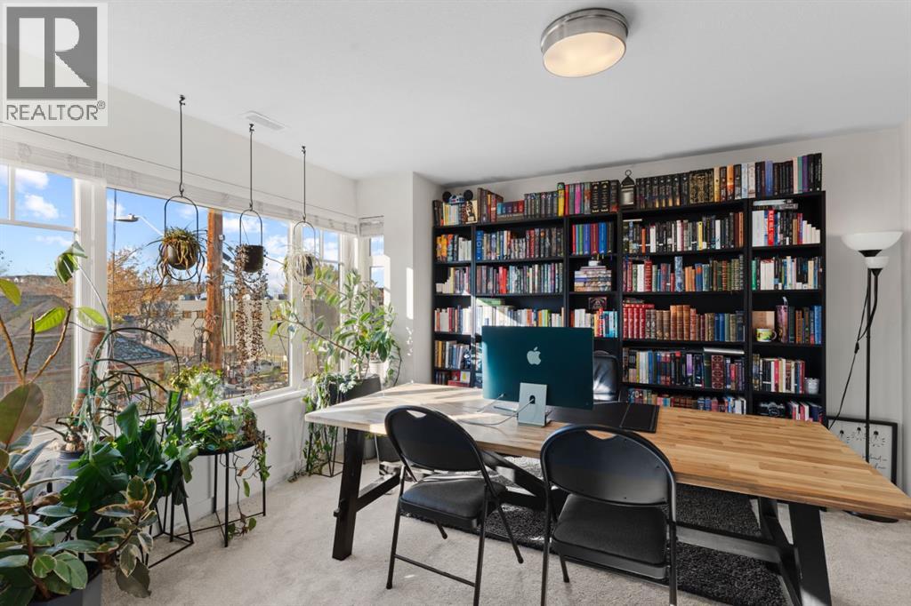 Welcome to this spacious inner-city townhome just steps from Calgary’s vibrant 17th Avenue. Offering nearly 1,900 sq ft of living space across four levels, this home combines the convenience of downtown living with the comfort and privacy of townhouse life.The open concept main floor is designed for everyday living and entertaining, featuring a bright living room with a modern tiled fireplace, a dedicated dining area, and a stylish kitchen complete with quartz countertops, stainless steel appliances, a gas range, and abundant cabinetry. The rear patio connects to a quiet courtyard and includes a gas line for your BBQ.Upstairs, the second level offers two generously sized bedrooms, a full bathroom, and convenient in-suite laundry. The top floor is dedicated to a private primary retreat, featuring lofted ceilings, a large walk-in closet, a spa-inspired ensuite with soaker tub and glass shower, and access to your own private rooftop balcony.Additional highlights include secure access to a heated underground parkade with an assigned stall, extra storage, and a well-maintained building.Located on the edge of the Beltline, you are only moments from the restaurants, cafés, shopping, and nightlife of 17th Avenue, while still enjoying the space and comfort of a full-size townhome.A rare opportunity to own a large inner-city townhome in one of Calgary’s most walkable neighbourhoods. (id:51989)
