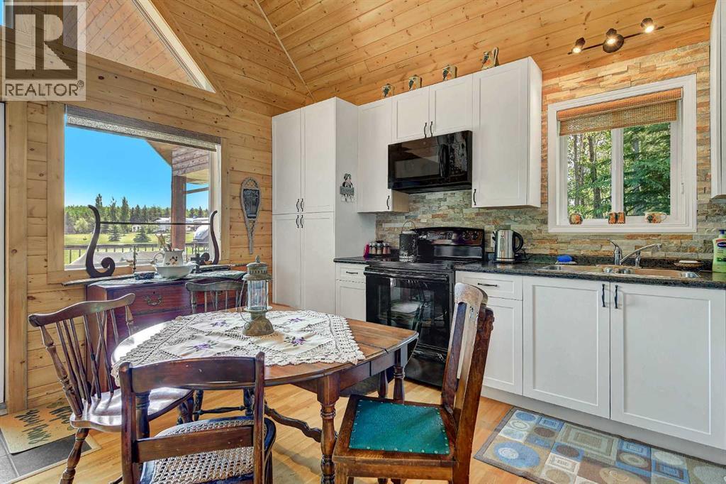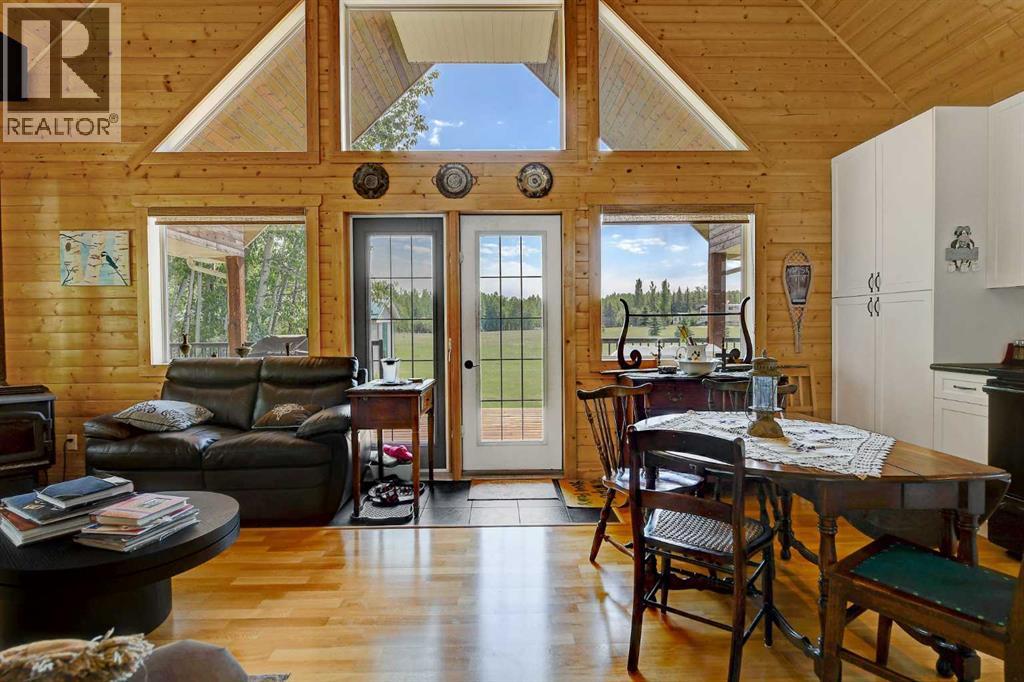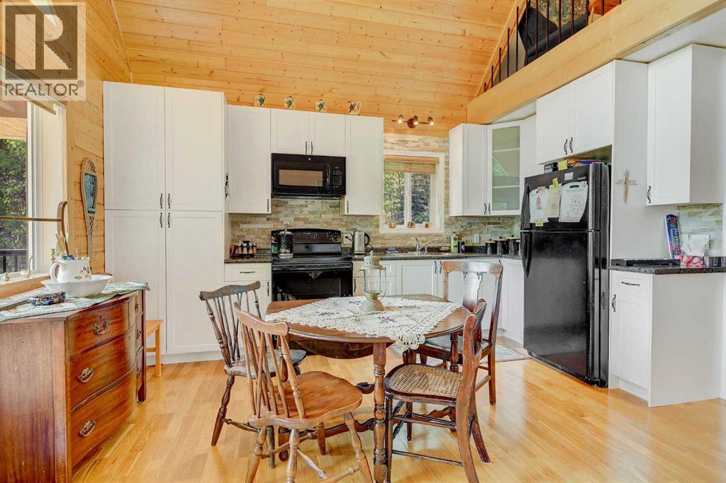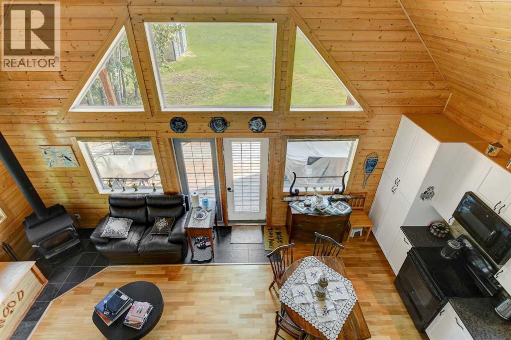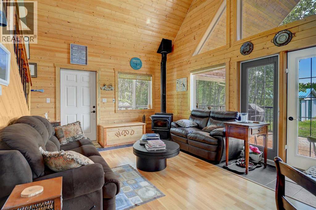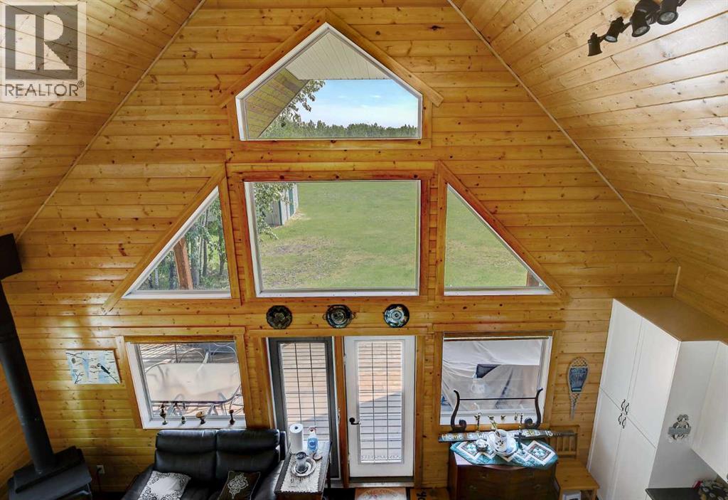 Escape to your perfect family retreat at this charming 2011-built 1212 sqft cottage, ideally situated on 2.47 acres just a short walk from the shores of Sturgeon Lake and moments from Greenview Golf Course. Located approximately 45 minutes from Grande Prairie and about 15 minutes from Valleyview, this cozy haven offers the best of both worlds: convenient access to the water and amenities and plenty of land to enjoy peaceful tranquility, privacy and nature. Imagine building cherished family memories here, whether you're spending sun-drenched days on the water, hosting gatherings and games in the spacious yard, popping over to the course for a round of golf, or unwinding under the stars around the campfire. This thoughtfully designed cabin boasts attractive exterior and a welcoming interior with vaulted ceiling, lots of windows, and a blend of charming tongue and groove walls and ceiling in the spacious open living area and painted drywall throughout bedrooms and bathroom. The kitchen is beautifully appointed with nice white shaker cabinets, black appliances, a stone backsplash, stainless sink, and soft-close drawers. Enjoy the warmth of the wood stove and plenty of space for family and guests with two bedrooms on the main floor, two more spacious bedrooms and sitting area upstairs. A full bathroom is located on the main floor and hot water on demand, wood stove and electric baseboard heaters cut down on energy usage when you aren't at the cottage. Floor to ceiling windows overlook the wrap around deck with aluminum railing and expansive yard, while a wooded area provides shelter from the wind and privacy from the low traffic road. For projects, parking and storage of all your lake toys the tin sided pole shed / garage is complete with electricity, lighting and workbenches. This property has power, natural gas, septic holding tank and water cistern. Step into instant relaxation at this turnkey Sturgeon Lake property, designed for creating joyous family memories year a fter year. (id:51989)