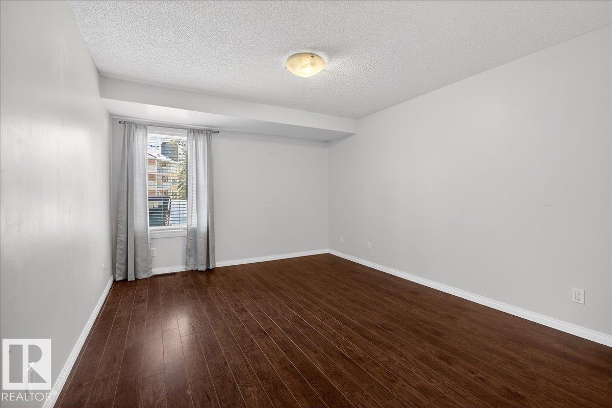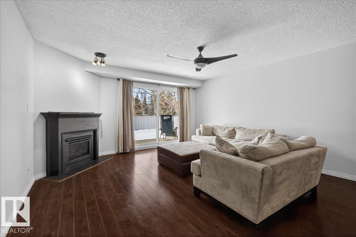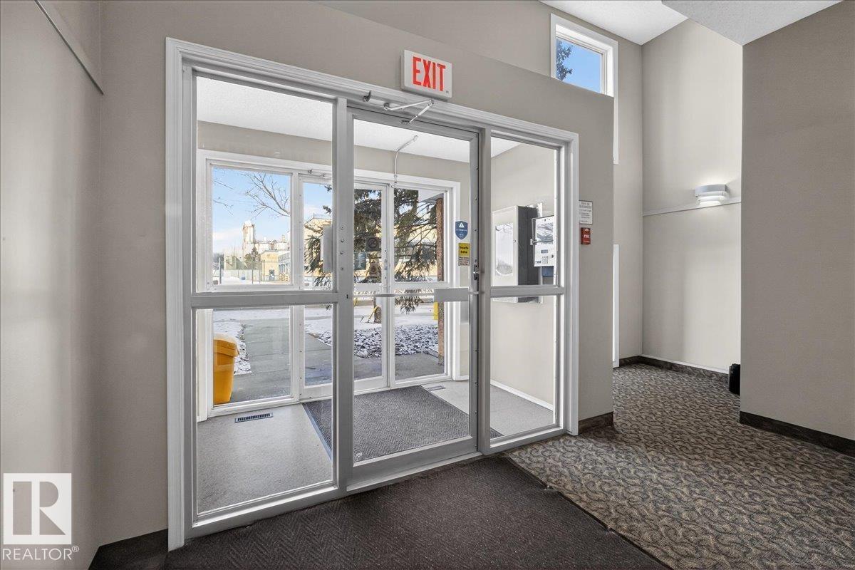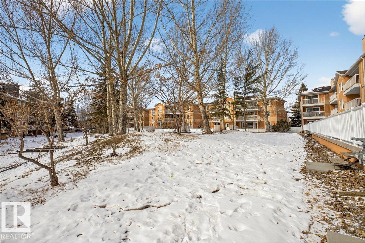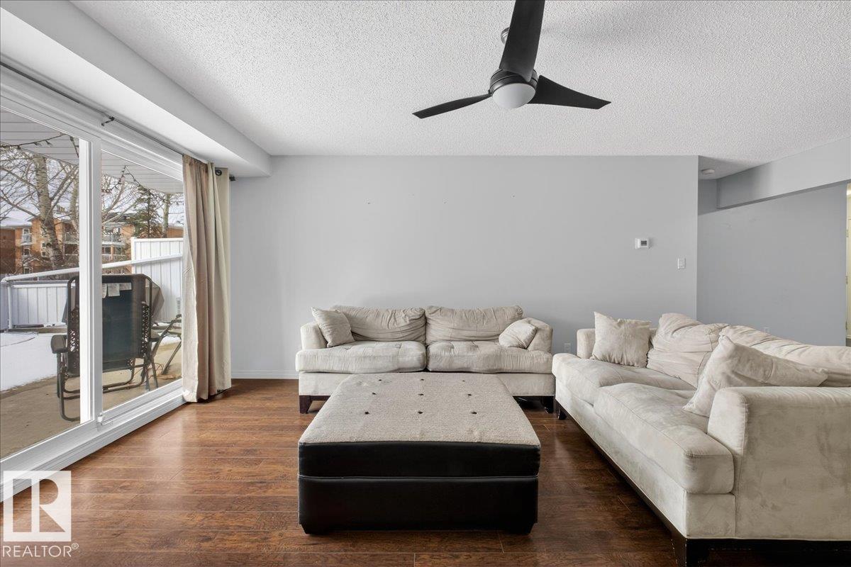 Enjoy downtown living without sacrificing space in this spacious condo offering over 1,300 sq ft of living space, just steps from the River Valley. This bright 3 bedroom, 2 full bathroom unit features a large exclusive-use south-facing patio/deck overlooking the courtyard—perfect for summer, complete with a natural gas BBQ line and additional storage. The updated kitchen offers white cabinetry, newer stainless steel appliances, ample counter space, and laminate flooring, opening to the dining area with a passthrough to the expansive living room filled with natural light from patio doors. The primary bedroom fits a king-sized bed and includes a 4-piece ensuite. Additional highlights include central A/C, a gas fireplace, in-suite laundry, and TWO heated underground parking stalls. Building amenities include an exercise room and sauna. Ideally located minutes to Downtown, Rogers Place, LRT, Little Italy, and Commonwealth Stadium. (id:51989)