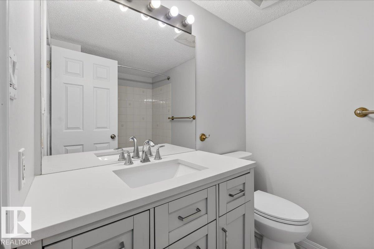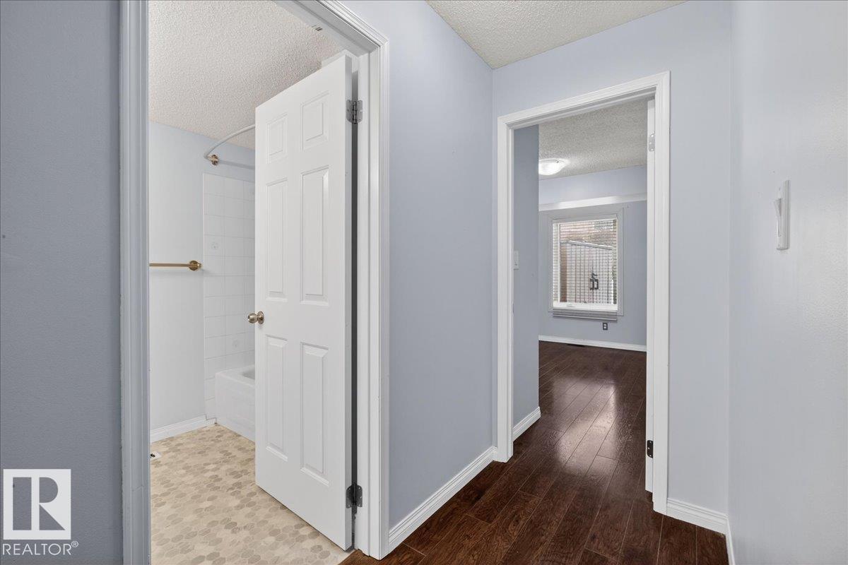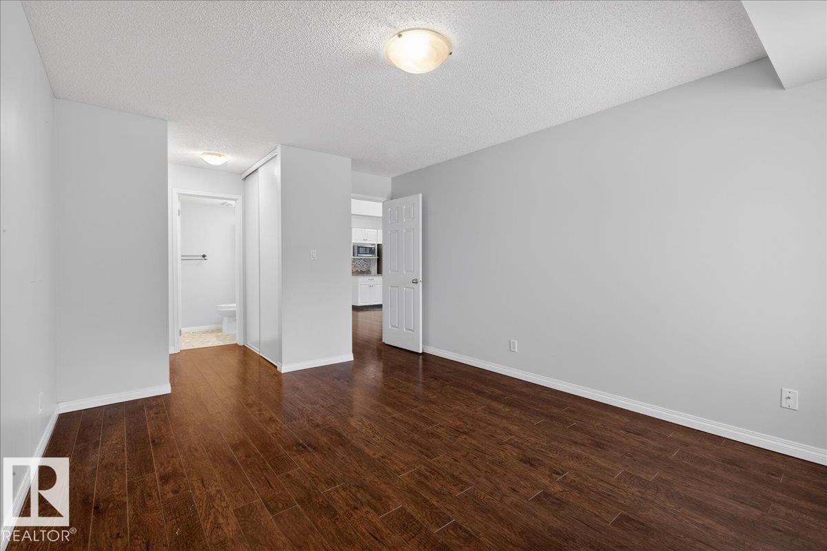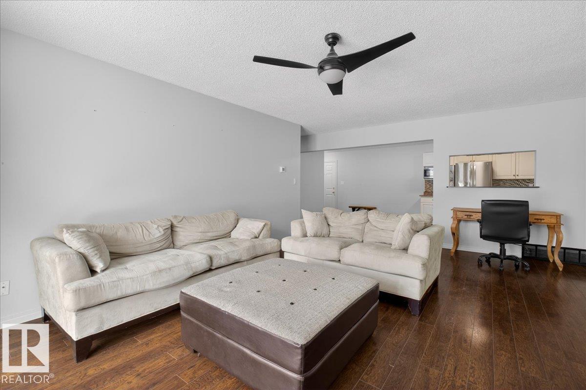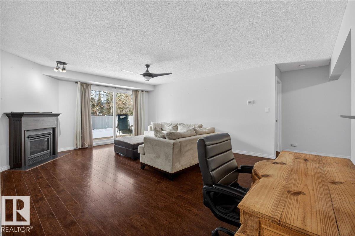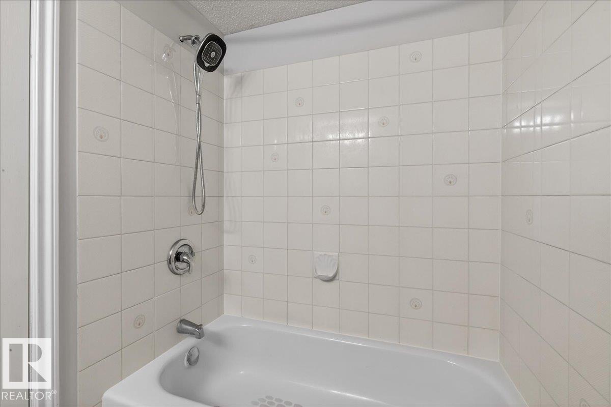 Enjoy downtown living without sacrificing space in this spacious condo offering over 1,300 sq ft of living space, just steps from the River Valley. This bright 3 bedroom, 2 full bathroom unit features a large exclusive-use south-facing patio/deck overlooking the courtyard—perfect for summer, complete with a natural gas BBQ line and additional storage. The updated kitchen offers white cabinetry, newer stainless steel appliances, ample counter space, and laminate flooring, opening to the dining area with a passthrough to the expansive living room filled with natural light from patio doors. The primary bedroom fits a king-sized bed and includes a 4-piece ensuite. Additional highlights include central A/C, a gas fireplace, in-suite laundry, and TWO heated underground parking stalls. Building amenities include an exercise room and sauna. Ideally located minutes to Downtown, Rogers Place, LRT, Little Italy, and Commonwealth Stadium. (id:51989)