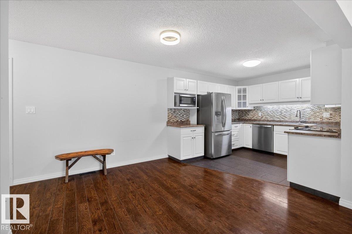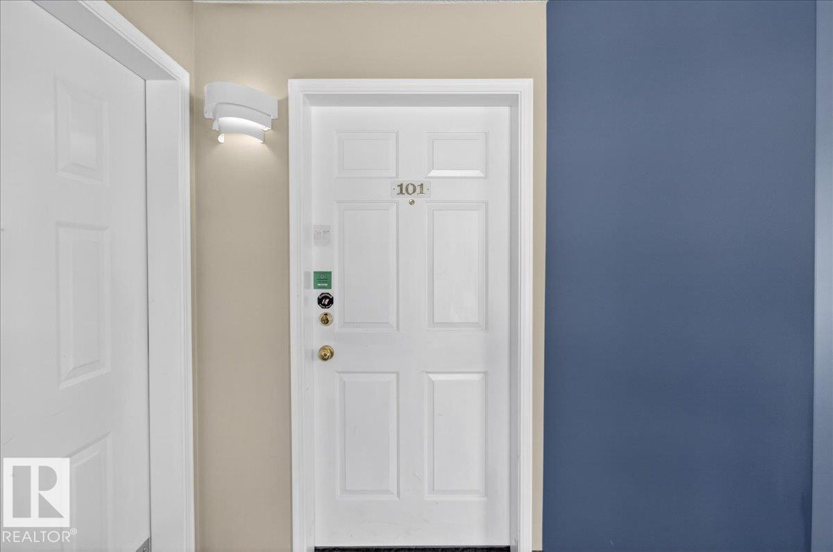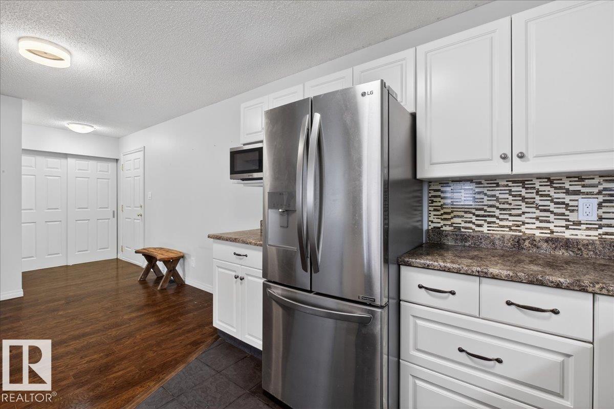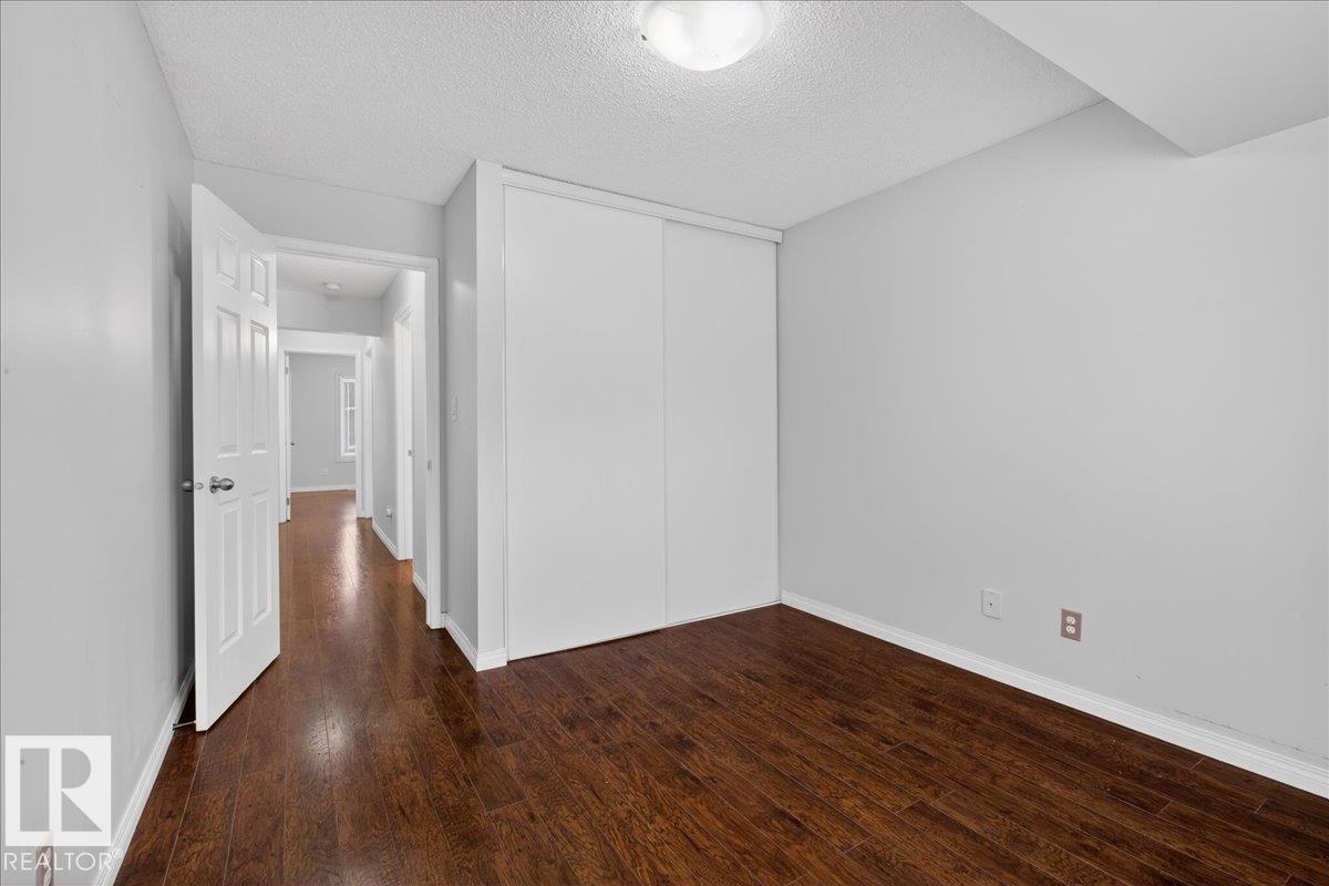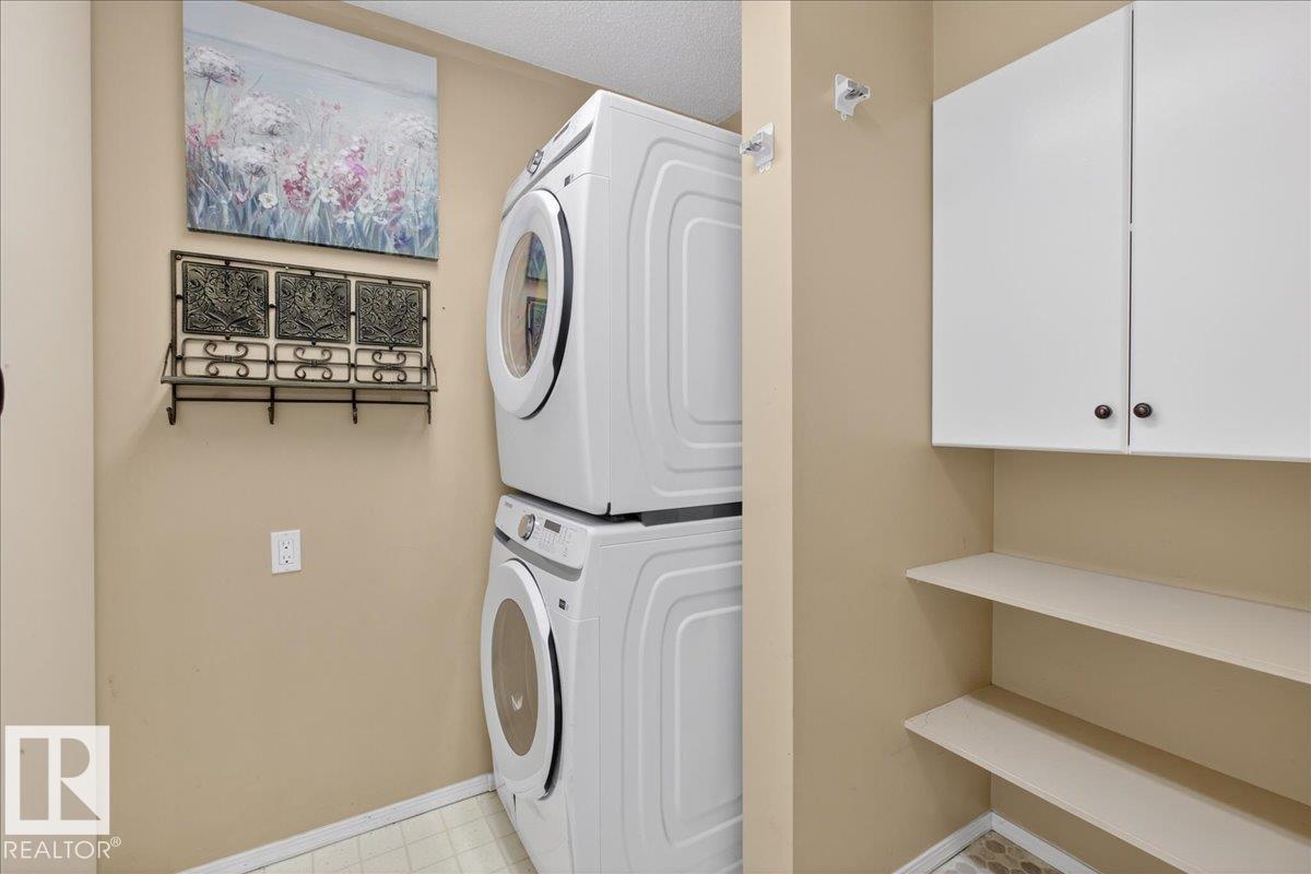 Enjoy downtown living without sacrificing space in this spacious condo offering over 1,300 sq ft of living space, just steps from the River Valley. This bright 3 bedroom, 2 full bathroom unit features a large exclusive-use south-facing patio/deck overlooking the courtyard—perfect for summer, complete with a natural gas BBQ line and additional storage. The updated kitchen offers white cabinetry, newer stainless steel appliances, ample counter space, and laminate flooring, opening to the dining area with a passthrough to the expansive living room filled with natural light from patio doors. The primary bedroom fits a king-sized bed and includes a 4-piece ensuite. Additional highlights include central A/C, a gas fireplace, in-suite laundry, and TWO heated underground parking stalls. Building amenities include an exercise room and sauna. Ideally located minutes to Downtown, Rogers Place, LRT, Little Italy, and Commonwealth Stadium. (id:51989)
