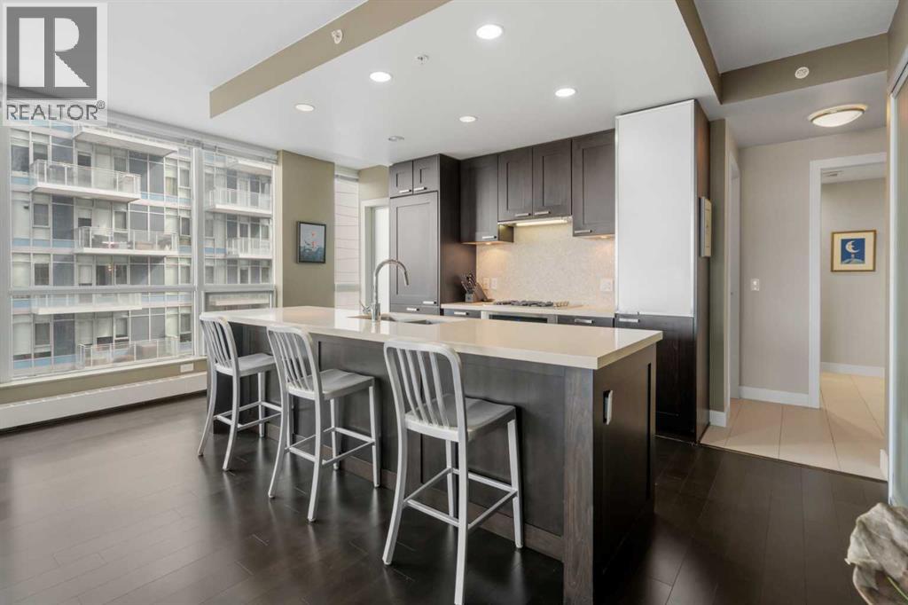 From the moment you arrive, it’s clear this isn’t just a home—it’s a full-service living experience in one of Calgary’s most amenity-rich buildings. This nearly 1,100 sq ft corner unit stands out as an incredible opportunity, offering the space, layout, and features rarely found at this price point in such a sought-after development. Step straight out onto your expansive 150 sq ft patio and take in the captivating river views—an ideal setting for morning coffee or evening unwinding. Inside, the thoughtfully designed layout delivers both function and style with 2 bedrooms, 2 bathrooms, and a versatile den perfect for a home office. The gourmet kitchen is built for entertaining, complete with a gas range, stainless steel and integrated appliances, a pantry, rich espresso cabinetry, and a large island that anchors the space beautifully. The primary suite is a true retreat, featuring continued river views, a walk-through closet, and a luxurious 5-piece ensuite. A well-separated second bedroom ensures comfort and privacy for guests. And yes—two underground side-by-side parking stalls add even more everyday convenience and long-term value. What truly elevates this home is the building itself. Waterfront is renowned for its exceptional, full-service amenities: a professional concierge, an expansive fitness centre, yoga studio, owner’s lounge, indoor jacuzzi, steam rooms, private movie theatre, guest suite, visitor parking, and even a car wash bay. It’s a lifestyle designed for comfort, wellness, and ease—all under one roof. Located just steps from Prince’s Island Park, the Bow River pathways, the +15 network, downtown core, and C-Train access, you’re perfectly positioned to enjoy both nature and city life.This is more than a home—it’s standout value in a premier building, offering space, views, and amenities that are hard to match. (id:51989)