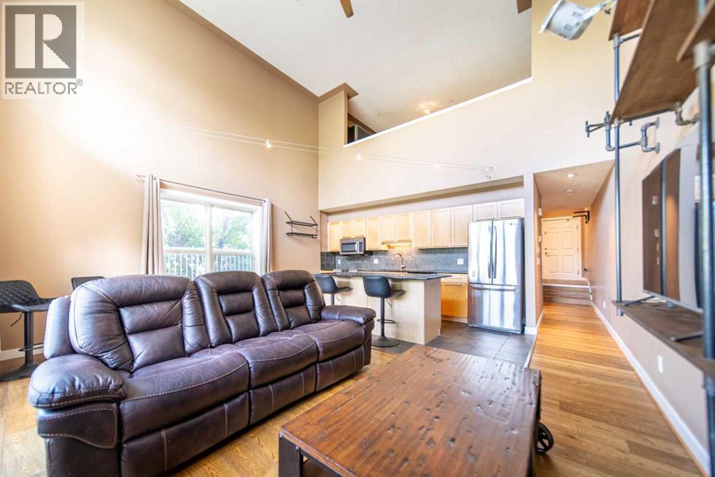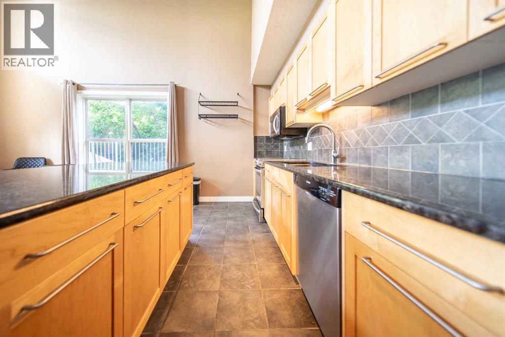 This bright and airy 2-bedroom, 2-bath loft-style condo offers over 1,000 sq. ft. of modern, open-concept living in one of Calgary’s most desirable inner-city neighbourhoods. The south facing corner unit is bathed in natural light thanks to its soaring ceilings and dramatic wall of windows, creating a space that feels both spacious and inviting. The main level features a stylish kitchen with granite countertops, rich maple cabinetry, and stainless steel appliances perfect for cooking, entertaining, or casual nights in. The open living and dining area flows effortlessly to a sunny private patio, ideal for morning coffee or evening gatherings. Upstairs, the lofted primary suite is a true retreat with a full ensuite bath and generous closet space. A second bedroom and full bath on the main level add versatility ideal for guests, a home office, or a roommate setup. Additional perks include in-floor heating throughout, two titled underground parking stalls, a separate storage locker, and in-suite laundry. Located in vibrant South Calgary, you’re steps from 17th Avenue or Marda Loop’s trendy shops, restaurants, cafés, parks, and transit everything you need for connected, urban living. (id:51989)