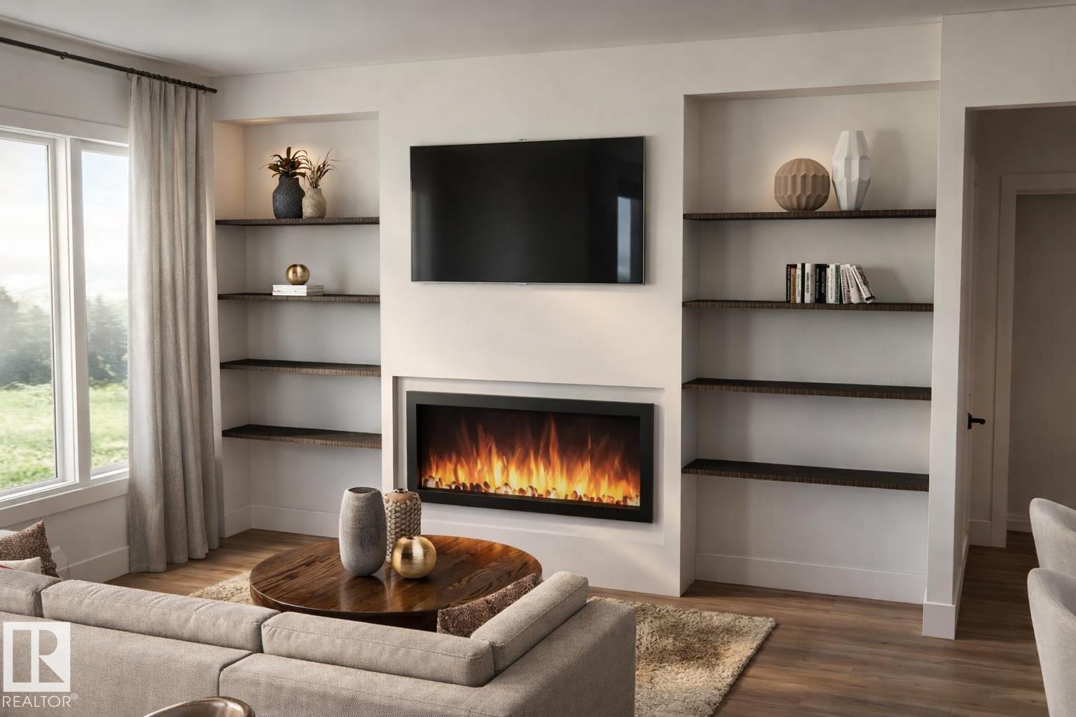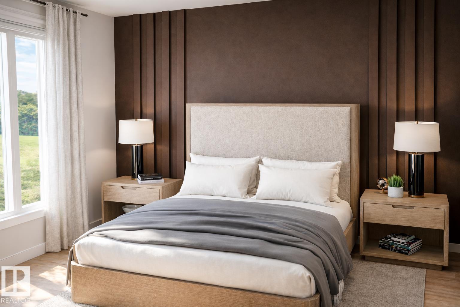 Built by ATTESA Homes, this 1,415 sq. ft. pond backing bungalow in Westwinds, Morinville blends modern style with functional living on a desirable pie-shaped lot. Steps from St. Kateri Tekakwitha Academy, it’s ideal for families. The bright, open-concept main floor features a smart layout with generous storage, open concept kitchen & living area, main floor laundry and a second bedroom. The primary suite includes a double-vanity ensuite, free standing tub and walk-in shower for added comfort. A double-attached garage provides ample parking and storage. A fully finished walkout basement expands your living space, offering flexibility for family, guests, or recreation. Quality craftsmanship and a prime location make this a standout choice for stylish, low-maintenance living. Photos and renderings are for illustration purposes to reflect selections only and may not reflect exact final design. (id:51989)