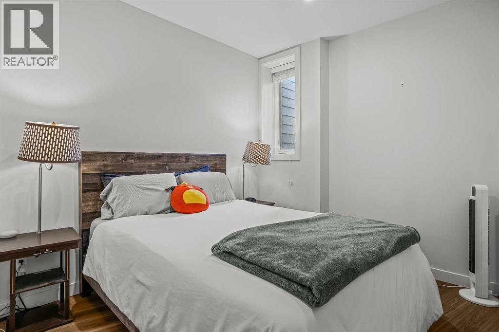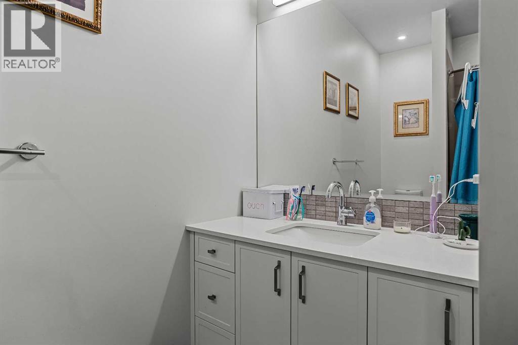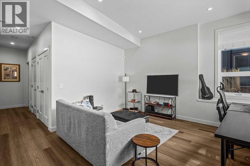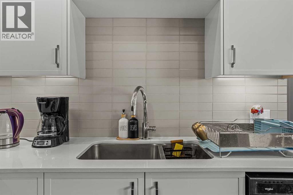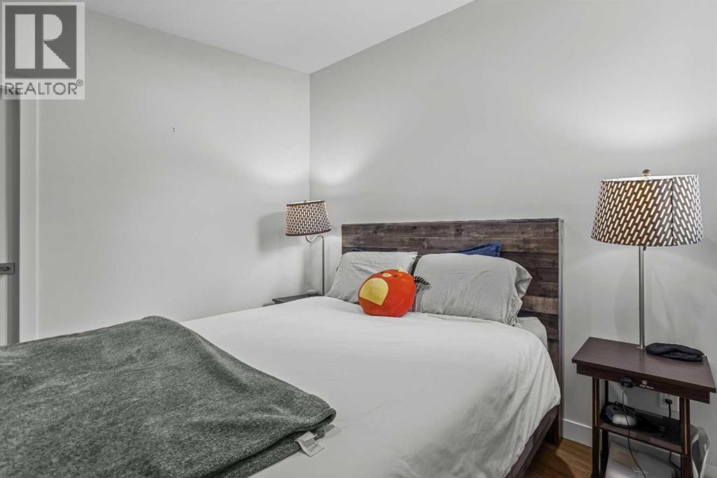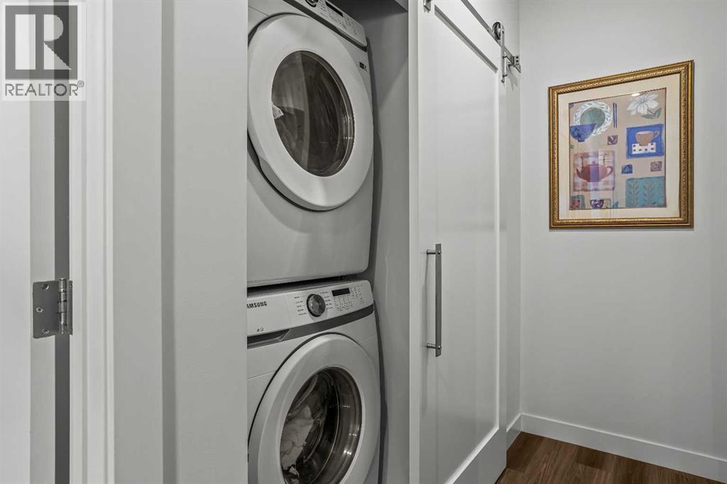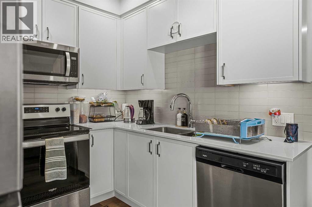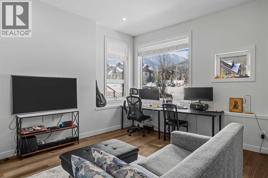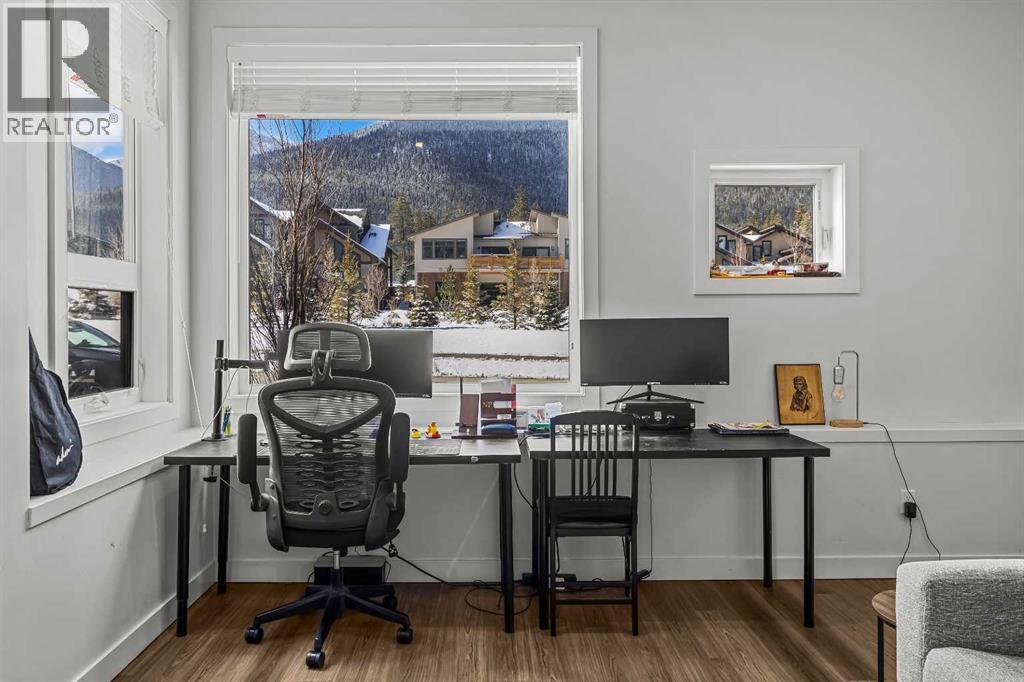 Welcome to 102G – 1200 Three Sisters Parkway, a beautifully designed 1-bedroom condominium in the highly desirable community of Stewart Creek, offering modern mountain living in one of Canmore’s fastest growing neighbourhoods.This thoughtfully laid-out home features over 620 sq ft of bright, open living space with large windows that flood the interior with natural light and showcase stunning mountain views right from your living area and workspace. The open-concept living room provides a comfortable place to relax, complete with warm wood flooring and seamless flow into the kitchen.The modern kitchen offers clean contemporary finishes including quartz countertops, stainless steel appliances, full-height cabinetry, and a stylish tile backsplash. Its efficient design provides excellent storage and workspace while maintaining an open connection to the living area—ideal for both everyday living and entertaining.A standout feature of this home is the flexible workspace positioned beside oversized windows, creating a bright and inspiring area for working from home while enjoying views of the surrounding peaks.The spacious bedroom provides a quiet retreat with generous closet space and easy access to the well-appointed 4-piece bathroom. In-suite stacked laundry and additional storage add convenience and practicality.Situated on the ground level with easy access, this home is perfect for full-time living, a mountain getaway, or an investment property. Stewart Creek continues to grow as one of Canmore’s most desirable communities, and this location is conveniently close to the upcoming Three Sisters Gateway commercial district, future home to an IGA grocery store, cafés, restaurants, and services—bringing everyday amenities just minutes from your door.Surrounded by world-class hiking, biking, and cross-country ski trails, and just steps from the Stewart Creek Golf Course, this home offers the perfect balance of mountain lifestyle and modern convenience. (id:51989)