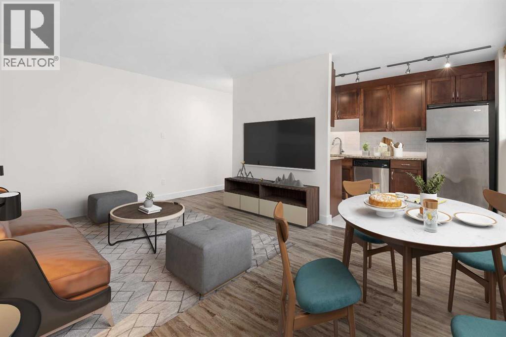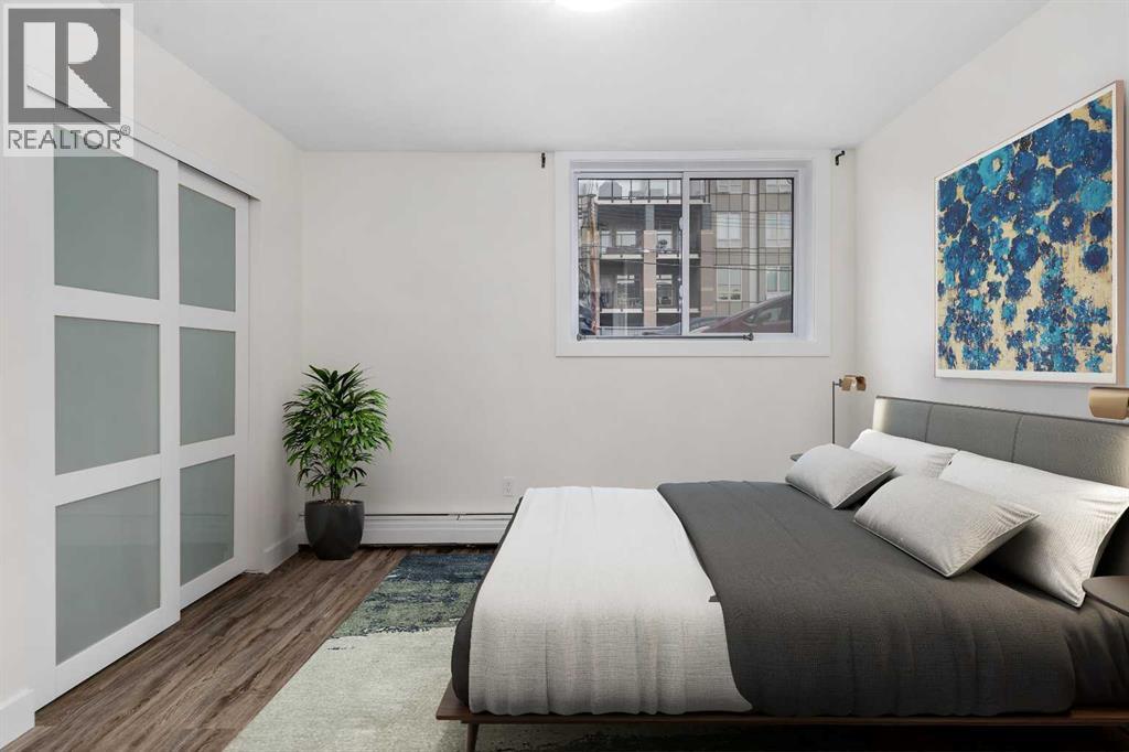 Steps to the Sunnyside C-Train station, this cute condo is located on a quiet, tree-lined street in the heart of Sunnyside. This is a great opportunity for a first time Buyer or for an investor. As you step inside this unit, you'll be greeted by an abundance of natural light pouring in through the large, North facing windows. The freshly painted living and dining rooms are flooded with warmth, making it the perfect spot to relax and unwind after a long day. The kitchen has newer brown cabinetry and is equipped with everything you need, including granite counters and stainless steel appliances - perfect for cooking and entertaining. The large bedroom is a serene retreat, with good-sized closets and plenty of natural light. This fantastic building has everything you need, including a common area laundry room, secure bike storage, and assigned parking. And with hookups for in-suite laundry, you can have the convenience of doing your laundry from the comfort of your own home. This property offers a great location within Sunnyside to either call home or use as an investment property. Fast possession if you wish to assume the tenant! (id:51989)
