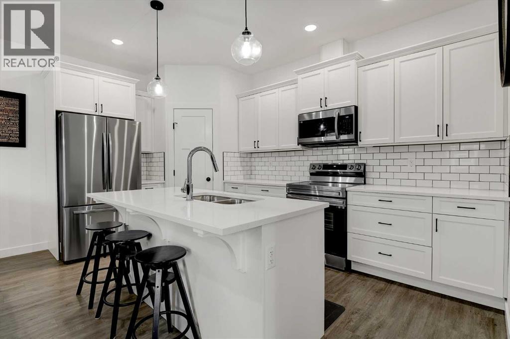 Own a piece of this UPGRADED fourplex in the welcoming community of Whispering Ridge—perfectly positioned directly across from the Whispering Ridge K–8 Public School. With 5 BEDROOMS and 3.5 BATHROOMS, this FULLY finished home is an exceptional fit for families looking for space, convenience, and a location that truly supports everyday living.You can't help notice and appreciate the bright, fresh colour palette and modern style that carries throughout the home, creating a clean and inviting atmosphere. Recessed lighting, quartz countertops, and quality finishings elevate the space. The spacious entry offers a large closet with a nearby 2-piece bath, and leads into a thoughtfully designed open-concept main floor. The kitchen is a standout, showcasing bright white soft-close cabinetry, a fully tiled backsplash, corner pantry, and high-end stainless appliances. A central island with a breakfast bar provides a dual-purpose hub that combines extra food prep space with a casual spot for family to gather. Upstairs, the primary suite easily accommodates a king-sized bed and features a walk-in closet along with a beautiful 4-piece ensuite, complete with a double vanity, shower, and the added bonus of a bidet-equipped toilet.Two additional bedrooms and a conveniently located laundry room complete the upper level.The fully developed basement expands your living space with a cozy family room, a 4th and 5th bedroom, full 4-piece bathroom with tile surround, and utility/storage room—giving you a true five-bedroom layout that’s hard to find.The single attached HEATED garage is FINISHED , HEATED & PAINTED including a durable epoxy floor and a practical mezzanine for added storage. Additional upgrades such as CENTRAL A/C and hot water on demand ensure year-round comfort and efficiency. Outdoors you'll find a practical side yard lined with grass and gated entry. The XL Driveway parks 4 large sized vehicles comfortably. Set in one of Grande Prairie’s most desirable County neig hbourhoods, this WELL-MAINTAINED, MOVE-IN READY home offers the added benefit of LOW COUNTY TAXES while being just minutes from nearby amenities. Enjoy easy access to walking trails, playgrounds, skating rinks, and the Crosslink County Sportsplex. An unbeatable location for your family to enjoy! (id:51989)