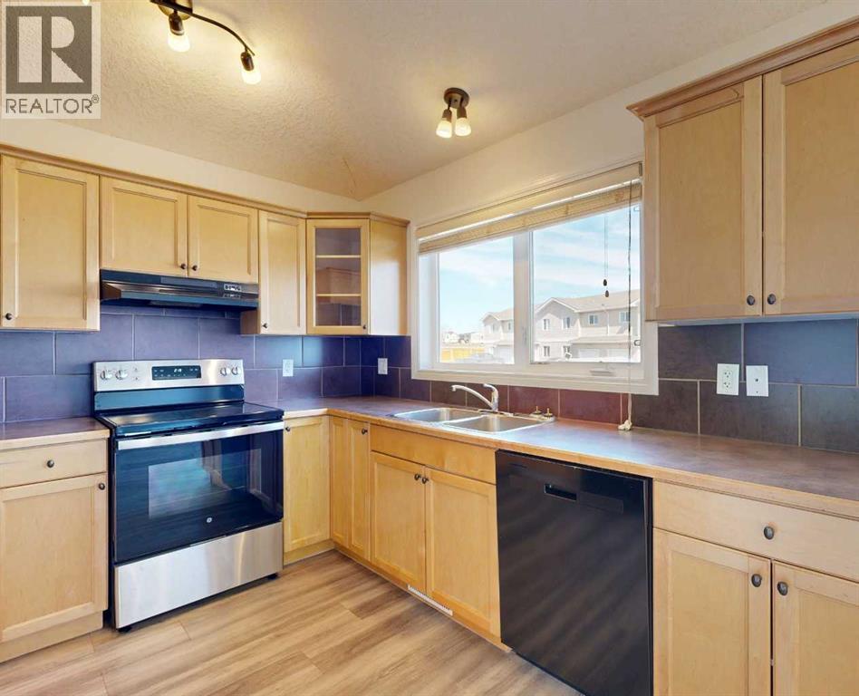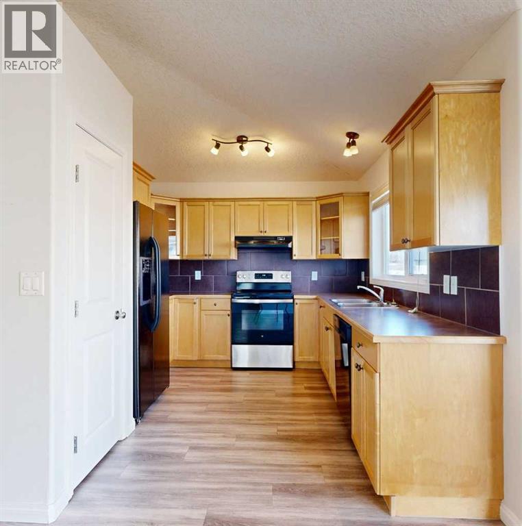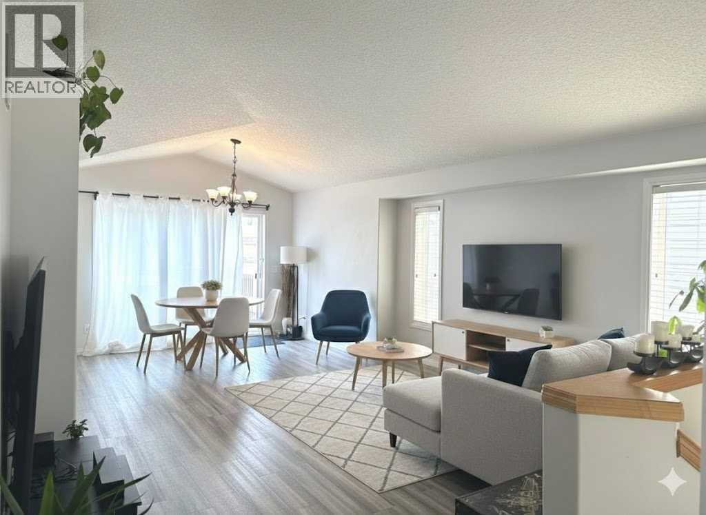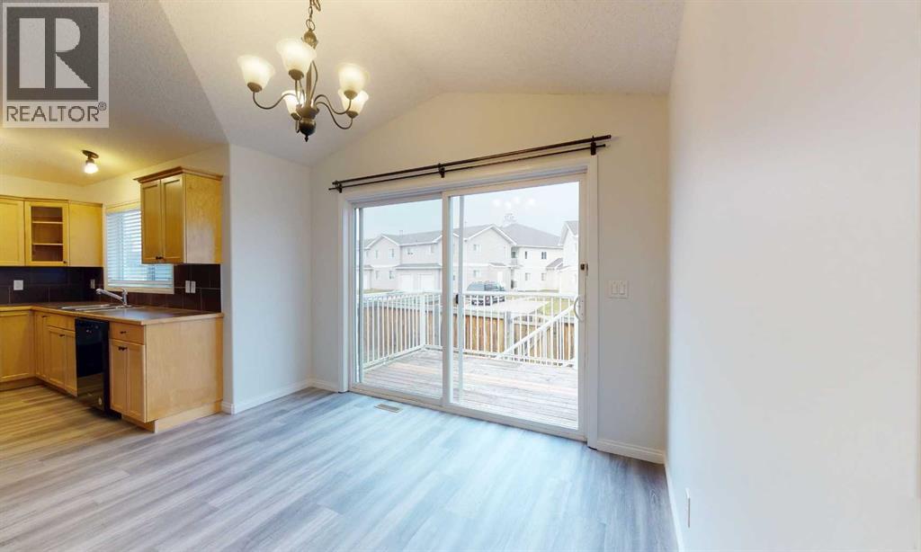 This charming and well-maintained bi-level home presents a fantastic opportunity to own in one of Grande Prairie’s most convenient locations. Perfectly situated across from a sprawling greenspace and playground, this fully developed property offers an inviting atmosphere from the moment you arrive.The main floor features an airy, open-concept layout enhanced by vaulted ceilings and stylish vinyl plank flooring. The living room transitions seamlessly into the dining area, where sliding glass doors open onto an east-facing deck finished with durable Regal railing—ideal for morning coffee. In the kitchen, you’ll find a handy pantry and an abundance of maple cabinetry that perfectly complements the tiled backsplash and appliance package, which includes a brand new stove. Two comfortable bedrooms and a full main bathroom complete the upper level.The thoughtfully designed basement maximizes space and light with large windows throughout. A short hallway leads to a finished laundry room, utility area, and a private bedroom; this section features a door to minimize noise transfer from the rest of the lower level, making it an ideal setup for a quiet home office or den. The remainder of the basement includes a spacious family room, an additional bedroom, and the second bathroom, providing plenty of room for guests or a growing family.Outside, the property includes a fully fenced backyard with gate access to a rear alley and a convenient concrete parking pad. This solid surface makes snow removal a breeze in the winter. Located just steps from Ivy Lake, walking trails, schools, and essential shopping, this home is as practical as it is cute.Take advantage of the 3D Tour to explore every corner of this home from the comfort of your couch. This property is ready for its next chapter—contact a REALTOR® today to schedule your private viewing! (id:51989)