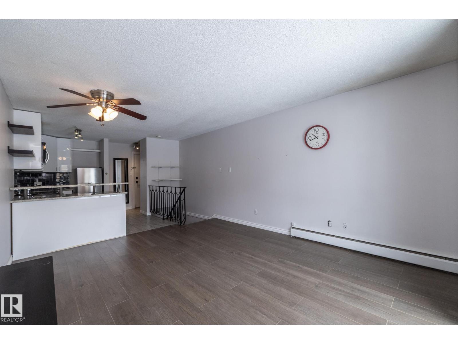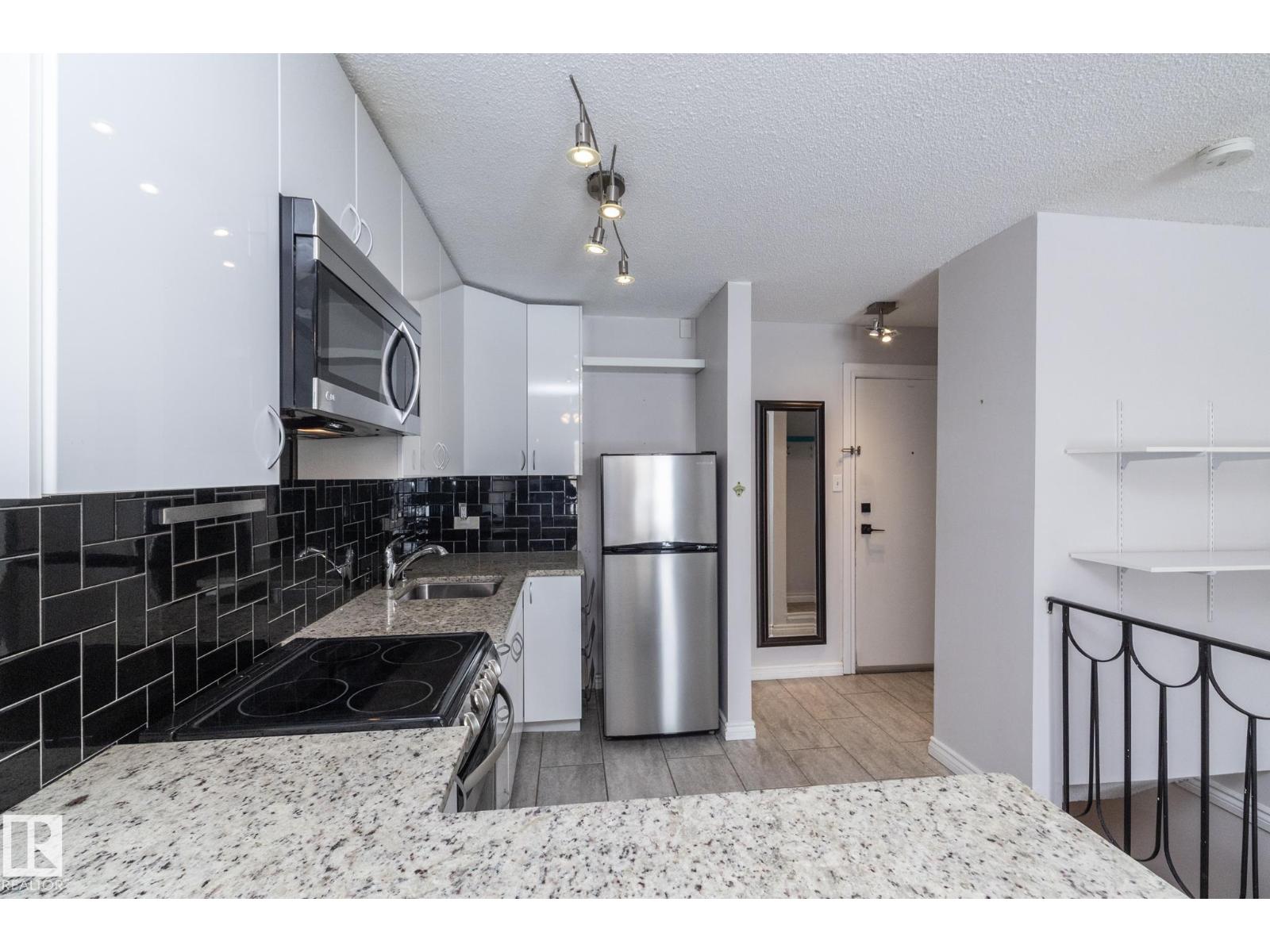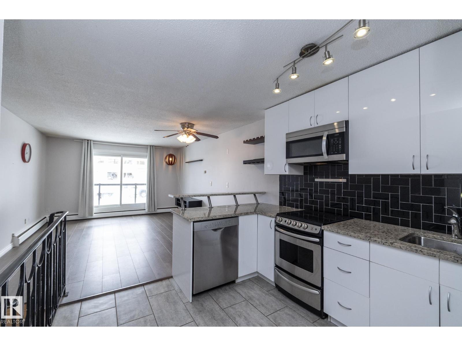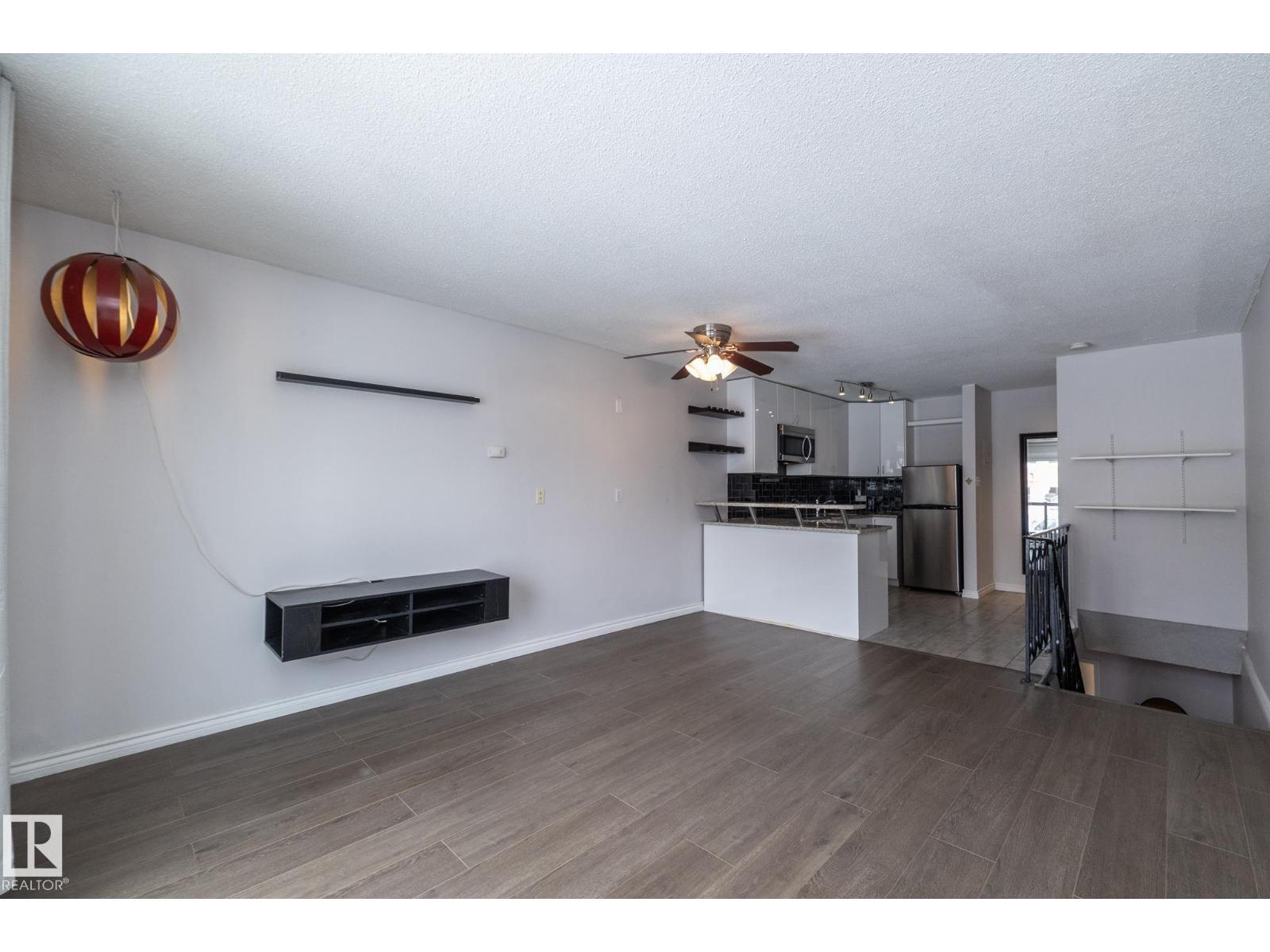Prime location just steps from Edmonton’s vibrant 124 Street district, one of the city’s most desirable areas known for its boutique shopping, cafés, art galleries, & top restaurants. This centrally located condo places you minutes from Grant MacEwan, the River Valley trail system, downtown, & convenient public transit, making it an ideal choice for professionals, students, or investors. Inside, the thoughtfully designed 2-level layout offers a unique separation of living & sleeping space. The upper level features an open-concept design w/durable laminate throughout the main living areas. The modern kitchen is finished w/high-gloss cabinetry & granite countertops, flowing seamlessly into the open space perfect for everyday living or entertaining.The lower level offers a quiet sleeping area. The spacious bedroom includes a custom walk-in closet. The renovated bath includes the laundry. This well-maintained complex also features newer balconies, updated windows & renovated common hallways. (id:51989)