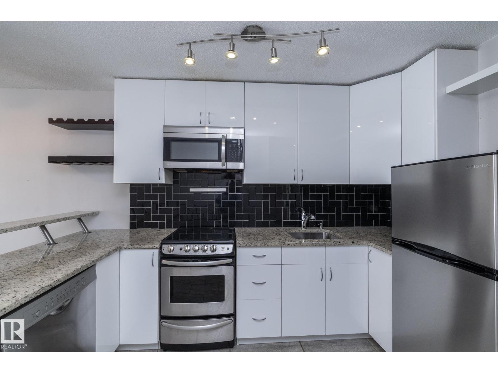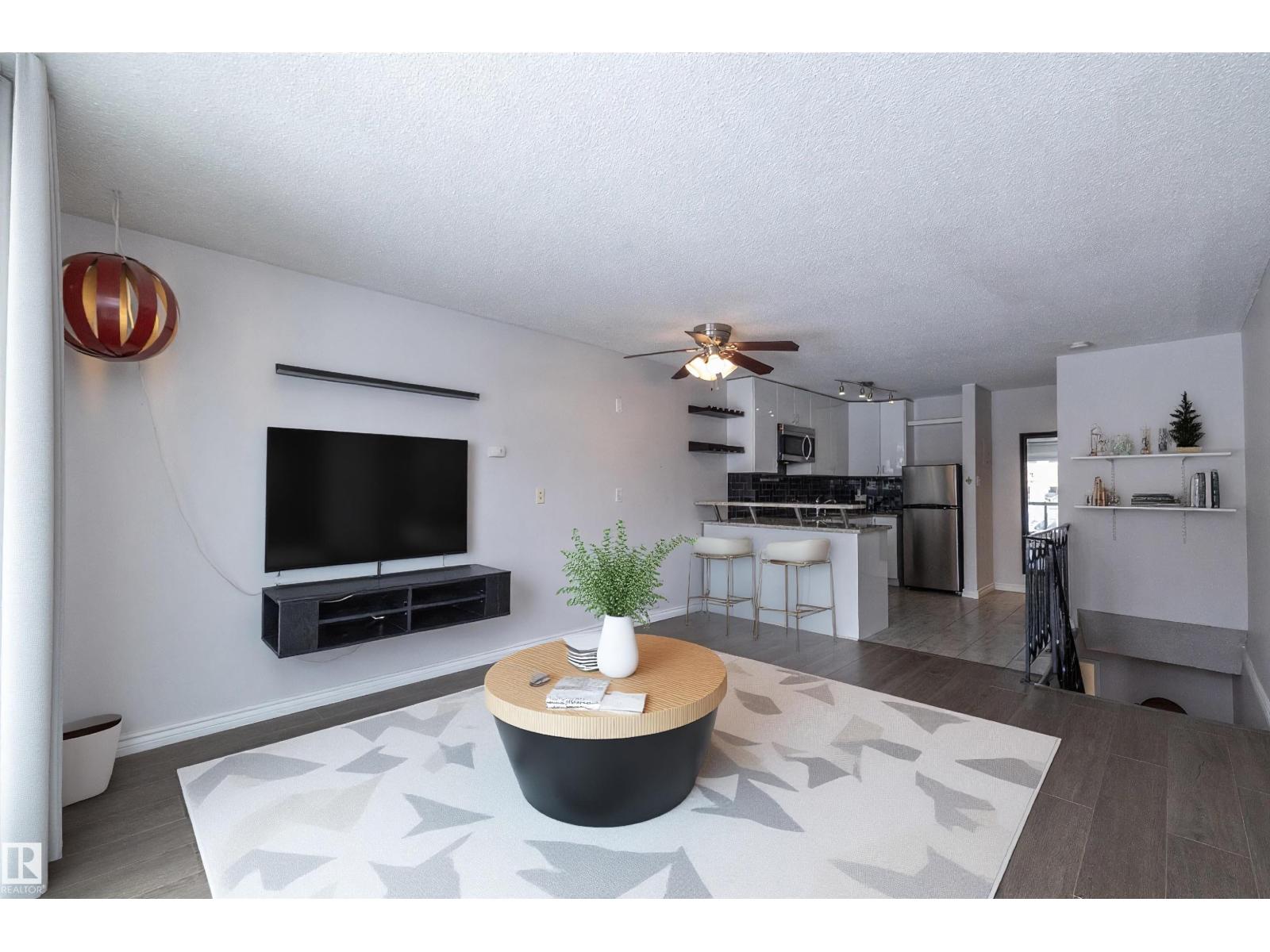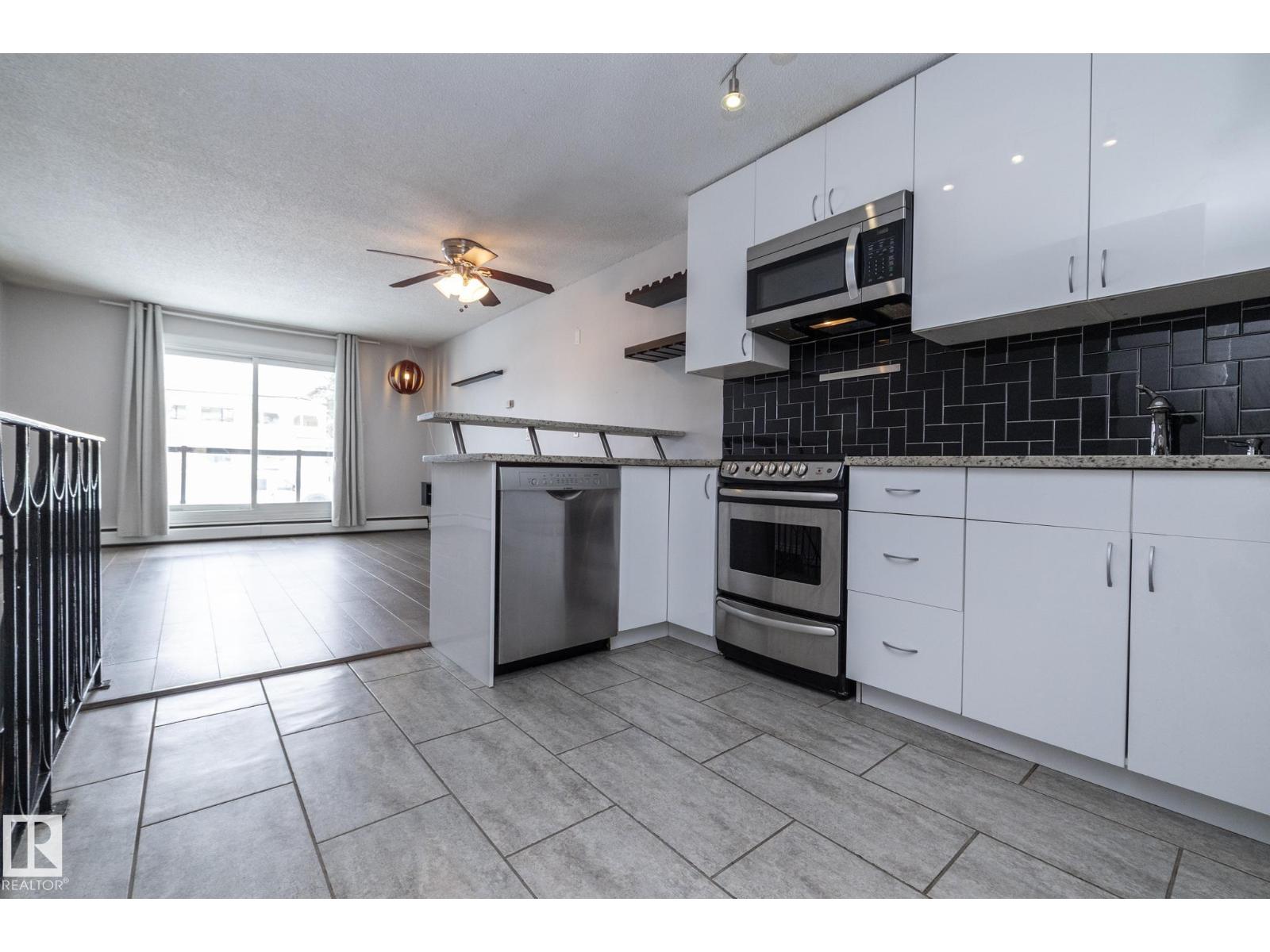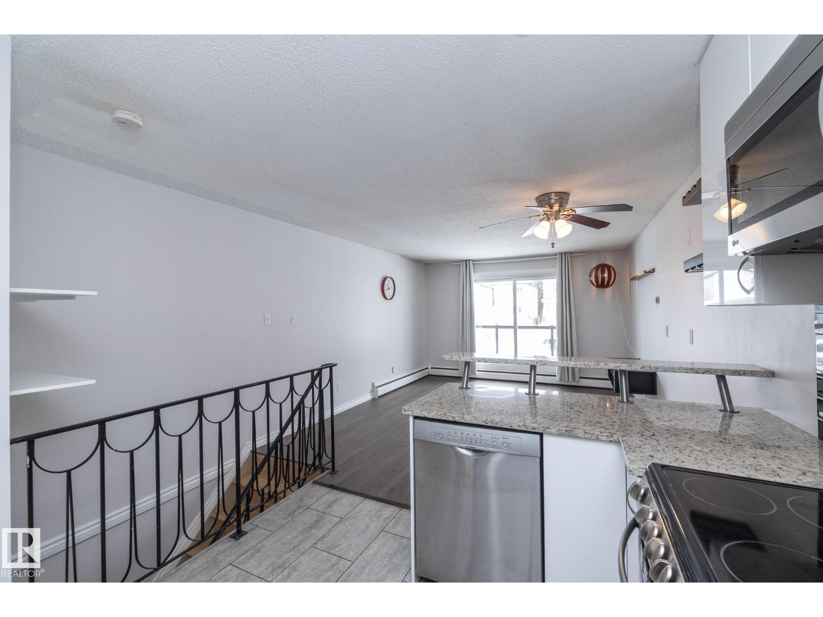 Prime location just steps from Edmonton’s vibrant 124 Street district, one of the city’s most desirable areas known for its boutique shopping, cafés, art galleries, & top restaurants. This centrally located condo places you minutes from Grant MacEwan, the River Valley trail system, downtown, & convenient public transit, making it an ideal choice for professionals, students, or investors. Inside, the thoughtfully designed 2-level layout offers a unique separation of living & sleeping space. The upper level features an open-concept design w/durable laminate throughout the main living areas. The modern kitchen is finished w/high-gloss cabinetry & granite countertops, flowing seamlessly into the open space perfect for everyday living or entertaining.The lower level offers a quiet sleeping area. The spacious bedroom includes a custom walk-in closet. The renovated bath includes the laundry. This well-maintained complex also features newer balconies, updated windows & renovated common hallways. (id:51989)