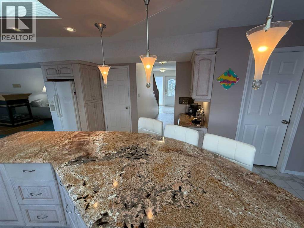 Welcome to 104 Mistaya Road, a hidden gem nestled on a cozy cul-de-sac in Hinton’s desirable Valley District. This charming and spacious home offers character, comfort, and versatility — perfect for families or those looking for income potential. The main floor features a bright and open layout with a large kitchen complete with a breakfast bar island, stone countertops, and ample cabinetry. The dining and living areas flow seamlessly together, divided only by a stunning three-sided gas fireplace that adds warmth and elegance. A sunken family room provides the perfect space for gatherings and offers direct access to the backyard oasis, which includes a covered gazebo-style deck, a patio, and beautifully landscaped grounds. This level also includes a bedroom (or office), a three-piece bathroom, and main-floor laundry for added convenience.Upstairs, the home offers a unique double-primary layout, creating flexible living options. The current owners have utilized one of the spacious bedrooms as a licensed Airbnb suite, featuring a private exterior entrance via an upper-level deck and stairs, a walk-in closet, den area, and a luxurious ensuite. The second bedroom on this level is equally generous in size and has access to a large four-piece bathroom.The partially developed basement includes multiple storage areas and a large open space currently used as a family room, with windows already in place offering the potential to add additional bedrooms or customize the space to suit your needs. Additional features include an attached double garage with main-level access, beautiful landscaping, and a peaceful cul-de-sac location. With its thoughtful design and income potential, this charming home in Hinton’s Valley District is truly a must-see. (id:51989)