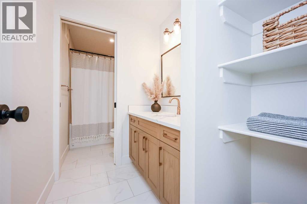 Magazine Worthy....Immaculate....Outstanding....I am not sure I can find the words to properly describe what this home truly has to offer. Let's start with the incredible cul-de-sac location in Whispering Ridge just steps away from the Whispering Ridge Community School. Take your first look and be amazed by the elevated black trim windows, warm wood beam features, and welcoming front deck space. Time to start your tour....you will instantly feel welcome in the spacious entry with custom tile and front entry open concept storage feature. Make your way into the kitchen where you are greeted by a sprawling quartz island with eat up bar, generous pantry space with built in shelving, coffee bar, formal dining space w/ elegant lighting feature, and did I mention the oversized custom chef's fridge and gas stove for the ultimate entertaining experience. Turn your attention to living room and enjoy the stunning beam work, bright windows, and the centerpiece of it all the floor to ceiling stone gas fireplace feature. Continuing exploring the main floor and you will find the true oasis of a primary bedroom which offers an immense walk in closet, upgraded lighting, and a 5-piece ensuite suitable for a spa with dual sinks, soaker tub, and oversized shower with floor to ceiling tile finishes. Additional main floor amenities included main floor laundry room w/ sink and folding station, and a conveniently located 2 piece washroom. Head upstairs and you will find 2 impressive bedrooms which both feature walk in closets w/ built in shelving and are strategically located right next to the 4 piece bathroom perfect for kids and/or guest rooms. Were not done yet....as we make our way to the basement you will be amazed by the tremendous sized basement living room, the storage spaces, the luxurious 4 piece basement bathroom, and the 2 additional grand basement bedrooms. Let's not forget the extensive additional offerings in this gem....walk up basement w/ separate entrance, central air, tr iple gar garage, surround sound audio system, exceptional covered deck area for enjoying your outdoor space, no current rear neighbours, and to top it all off RV Parking space. Welcome to luxury living in the wonderful community of Whispering Ridge....Welcome Home! (id:51989)