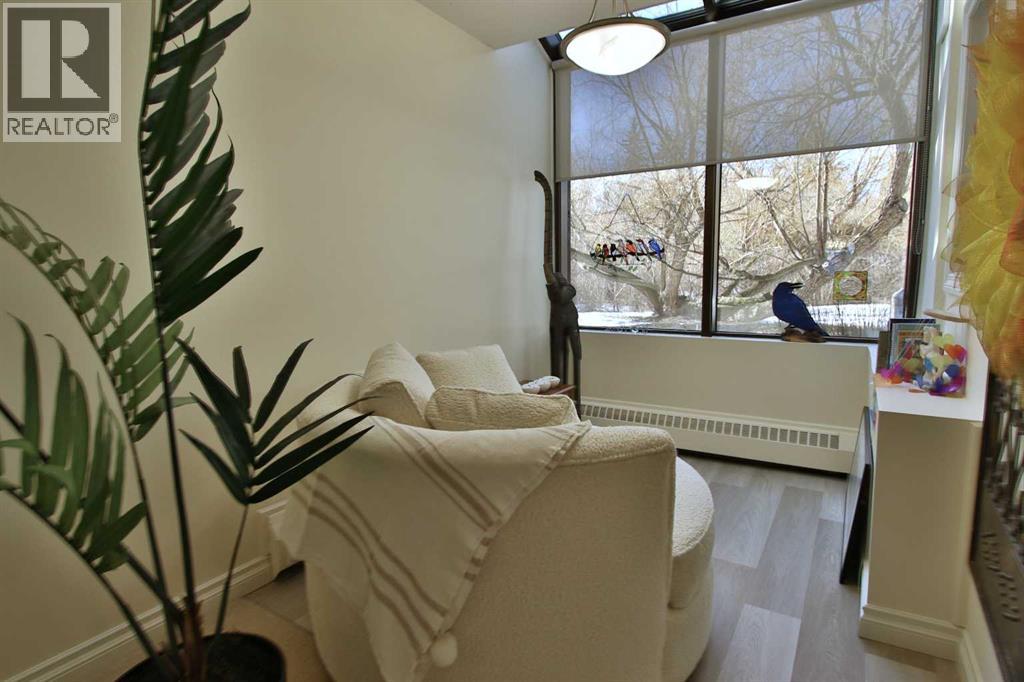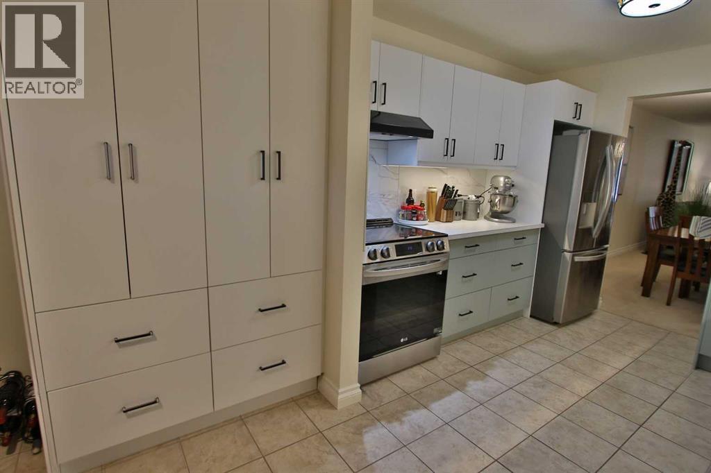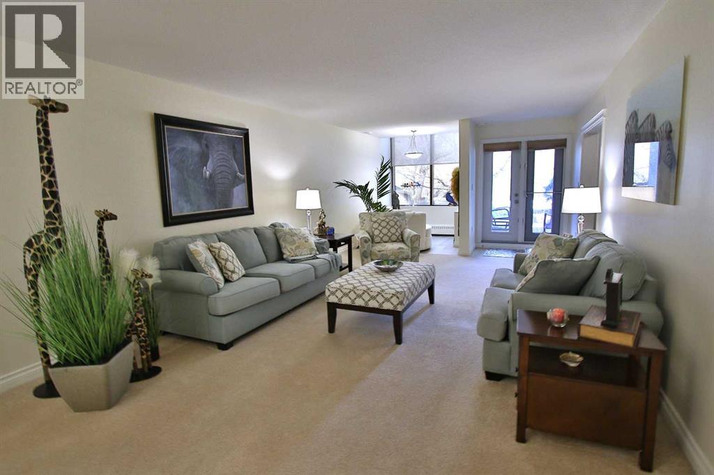 Recently renovated main floor condo in the highly sought-after Park Green complex in desirable Woodlea! This spacious 2-bedroom unit offers excellent functionality and comfort. The oversized primary bedroom features large windows, walk through wardrobe and a convenient 3-piece ensuite. The bright kitchen showcases stainless steel appliances, recently upgraded cabinets, newer countertops and backsplash, plus an oversized pull-out pantry. The dining area accommodates a large table, and the living room provides a welcoming space for open concept entertainment. An additional flex area is perfect for an office, reading room, or exercise space. The second bedroom is located near the 4-piece bathroom with ample vanity and storage. Step out to the south-facing patio with beautiful park views and direct access to walking paths. This unit includes a secure underground parking stall with enclosed storage. Building amenities feature a car wash bay and woodworking room, plus rooftop A/C for summer comfort! An excellent location close to shopping, amenities, and walking/biking trails (id:51989)