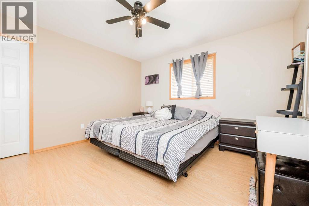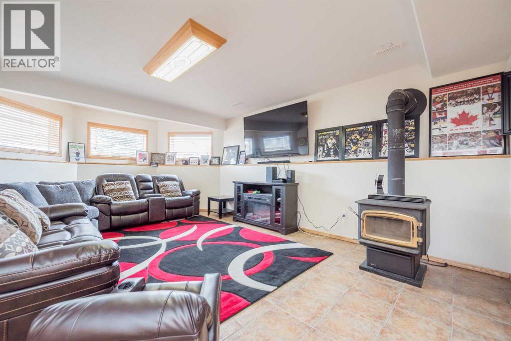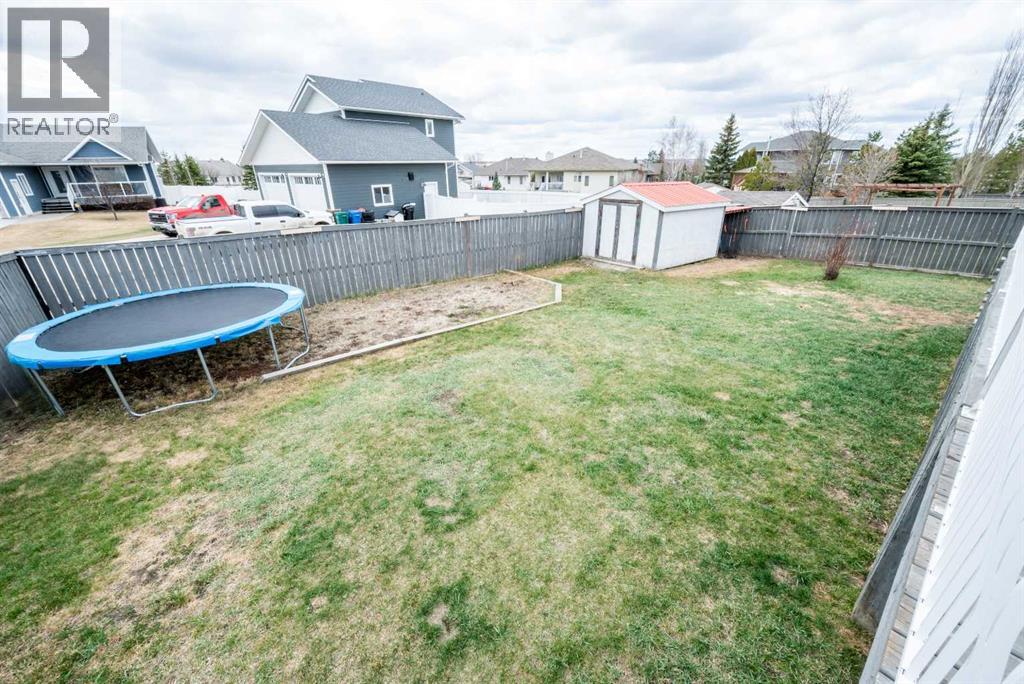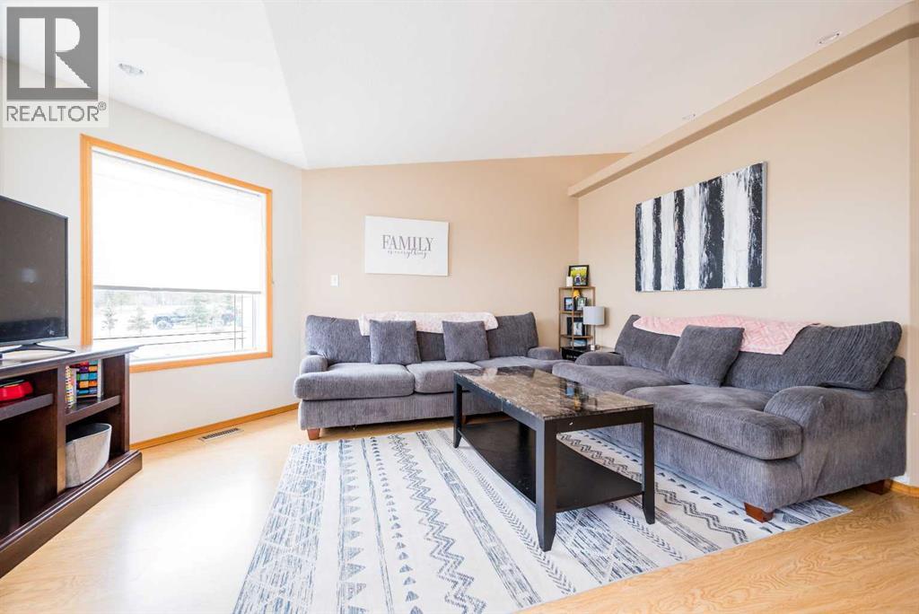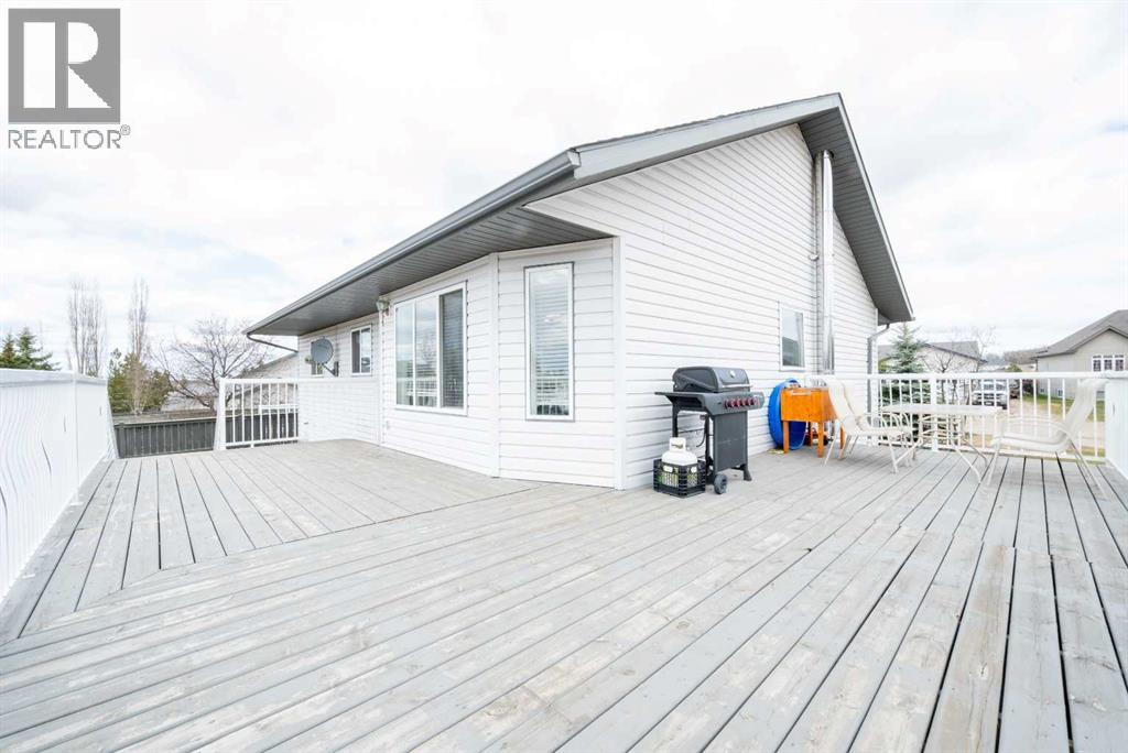 Fully developed 4 Bed 3 bath home located on corner lot with RV Parking pad on a quiet street in lovely Beaverlodge. Generous sized entry way welcomes you, heading up a few stairs you will find the good sized living room with vaulted ceilings. Open concept boasted between the kitchen and dining, with ample cabinet + counter space and must have pantry. Dining is complimented nicely but exterior door to your massive back deck great for entertaining and BBQ season which is upon us. Remainder of main floor is made up of three bedrooms, full bathroom, master bedroom with en-suite and walk in closet. Heading to the finished basement that has a large living room with wet bar with wood burning stove that could be easily converted to gas , fourth huge bedroom, full bathroom , and utility room which has had updated high efficiency furnace + hot water tank in the last few years. Back yard is fully fenced with a true RV Parking gravel pad. Attached double car garage is heated, great for our long winters. Book your viewing today of this affordable home with all the boxes checked. (id:51989)