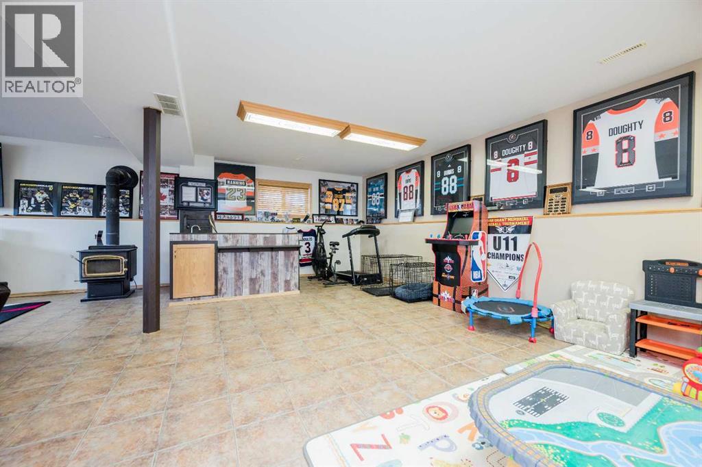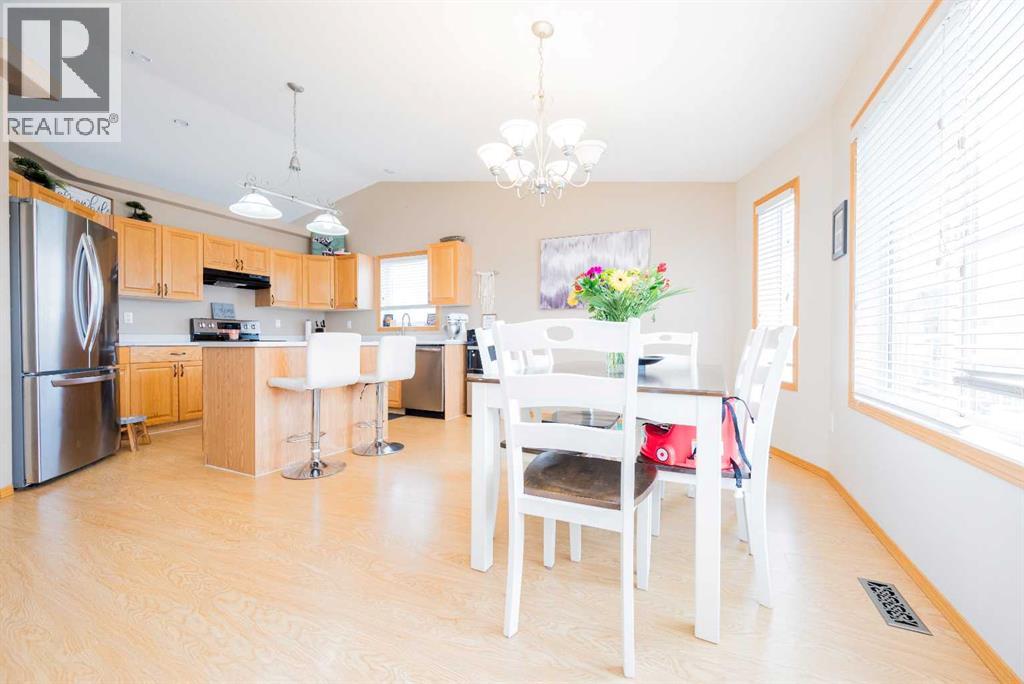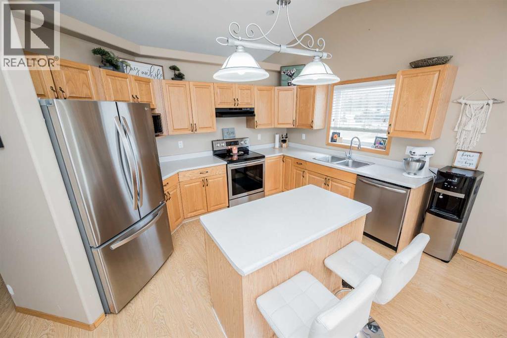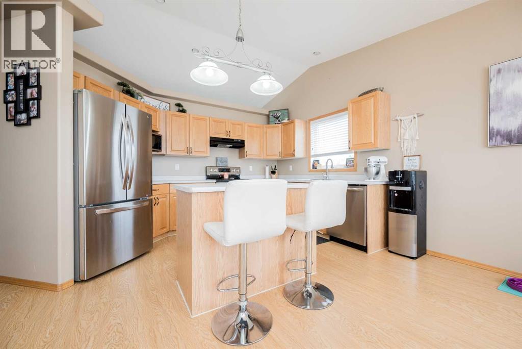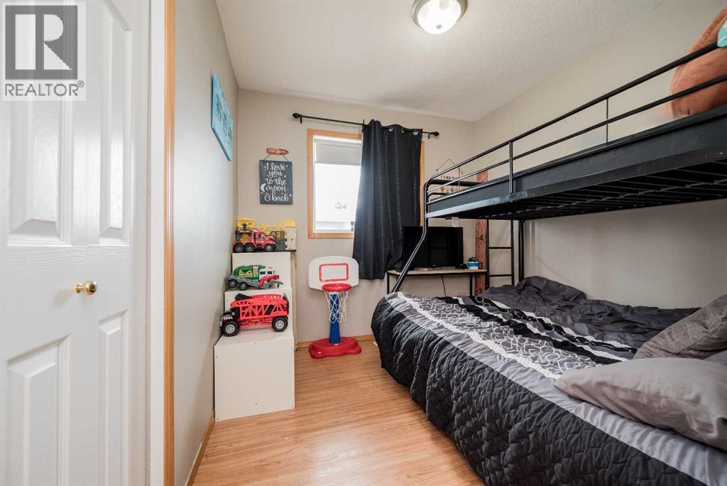 Fully developed 4 Bed 3 bath home located on corner lot with RV Parking pad on a quiet street in lovely Beaverlodge. Generous sized entry way welcomes you, heading up a few stairs you will find the good sized living room with vaulted ceilings. Open concept boasted between the kitchen and dining, with ample cabinet + counter space and must have pantry. Dining is complimented nicely but exterior door to your massive back deck great for entertaining and BBQ season which is upon us. Remainder of main floor is made up of three bedrooms, full bathroom, master bedroom with en-suite and walk in closet. Heading to the finished basement that has a large living room with wet bar with wood burning stove that could be easily converted to gas , fourth huge bedroom, full bathroom , and utility room which has had updated high efficiency furnace + hot water tank in the last few years. Back yard is fully fenced with a true RV Parking gravel pad. Attached double car garage is heated, great for our long winters. Book your viewing today of this affordable home with all the boxes checked. (id:51989)