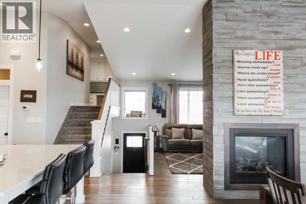 Impressive craftsmanship, thoughtful design, and exceptional value—this stunning Deeproot home is sure to stand out. At $775,000, it’s hard to believe everything this sparkling, fully developed floor plan offers.Perfectly positioned on a massive lot—far from your standard Whispering Ridge size—this property backs onto Westlake homes and mirrors those larger lot dimensions, offering a rare combination of space, privacy, and long-term value. With RV parking and a triple car garage featuring a convenient pull-through third bay, this home delivers both function and flexibility for families, toys, and day-to-day living. The garage is heated and finished with spray foam insulation, providing year-round comfort and efficiency.Step inside to a spacious, welcoming entryway complete with built-in lockers and storage—ideal for keeping life organized. As you move upstairs, you’re greeted by a bright and airy main level enhanced by vaulted ceilings and a seamless open-concept layout. The kitchen, dining, and living areas connect effortlessly, creating a space that feels both expansive and inviting.A striking floor-to-ceiling, double-sided fireplace acts as a stunning focal point, subtly defining the dining and living spaces while maintaining flow and warmth throughout. The kitchen is finished with quartz countertops, complemented by rich hardwood flooring and ceramic tile, delivering both durability and elevated style.The main floor primary suite is thoughtfully positioned for privacy and convenience, offering a spacious retreat complete with a large walk-in closet and a beautifully appointed 5-piece ensuite featuring a soaker tub and tiled shower.Upstairs, you’ll find two well-sized bedrooms, a full bathroom, and a charming office nook at the top of the stairs—perfect for homework, remote work, or a quiet reading space.The fully developed basement expands your living options even further, featuring two additional bedrooms, a full bathroom, a large rec room ideal for family gatherings or entertainment, and a massive laundry room with tile flooring that adds both practicality and function. Spray foam insulation continues into the basement, enhancing comfort and efficiency throughout the home.A classic Deeproot build with high-end finishes, vaulted ceilings, and a layout designed for real life—this home offers space, quality, and versatility in every corner. From the oversized lot to the upgraded features, this is a property that delivers on both lifestyle and long-term value. (id:51989)