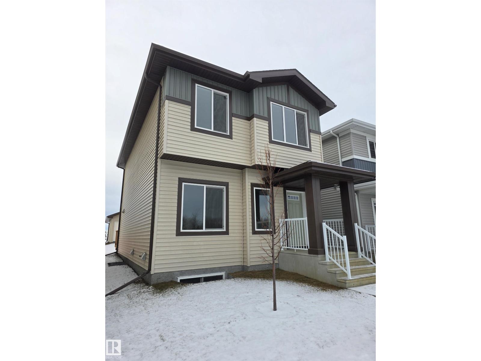 Located in the desirable Brickyard community, this newly built 2-storey Alquinn home is just steps from the recreation centre, schools, parks, playgrounds, and shopping. The thoughtfully designed open-concept main floor features spacious living, dining, and kitchen areas anchored by a cozy fireplace—ideal for everyday living and entertaining. The chef-inspired kitchen offers a central island with breakfast bar, ample storage, and sleek modern finishes. Upstairs, the smart layout includes a bonus area, two additional bedrooms, upper-floor laundry, and a full bathroom. The primary suite serves as a private retreat, complete with a walk-in closet and a beautifully finished 5-piece ensuite. This home delivers comfort, functionality, and timeless style in a highly sought-after location. UPGRADES INCLUDE: electric fireplace, bonus area, upper-floor laundry, upgraded finishes throughout, modern kitchen cabinetry, and more. (id:51989)