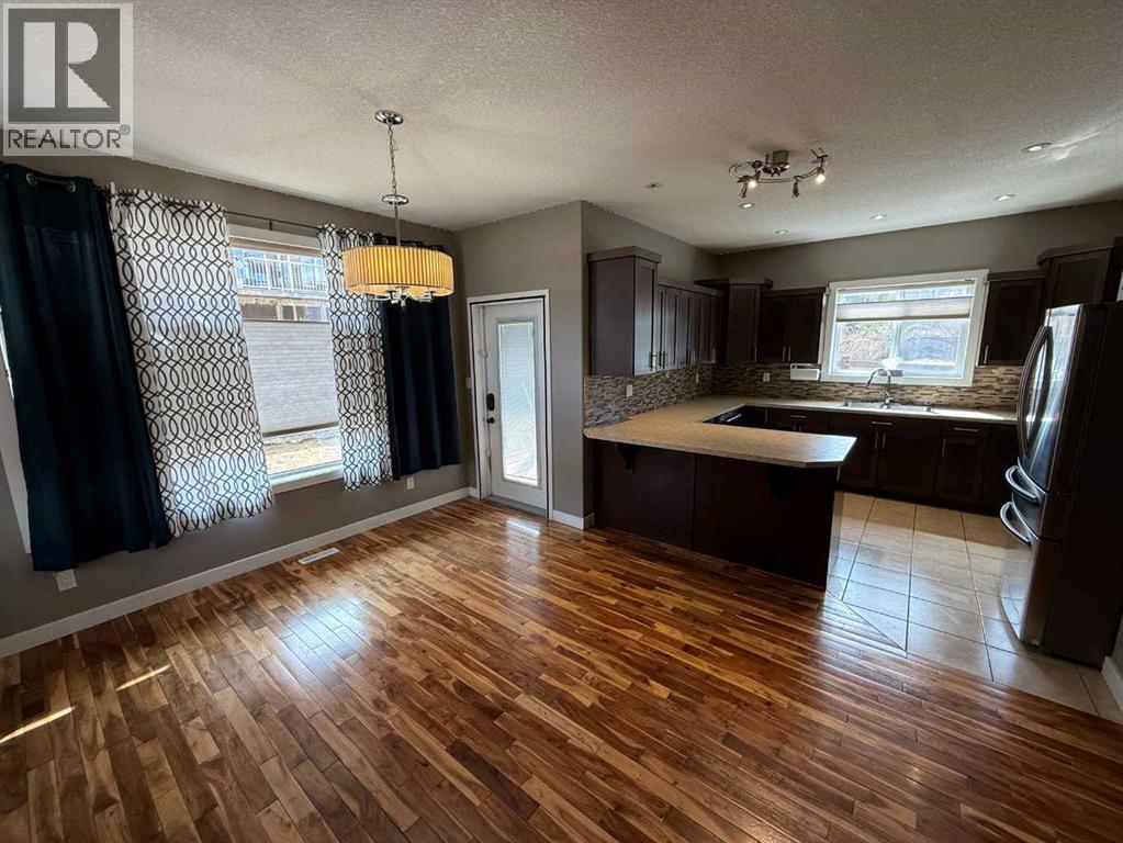 This well-appointed two-storey home was built by Jareth Homes, a respected local builder in Hinton known for quality craftsmanship and a strong reputation. Offering over 2,150 sq ft across the main and upper levels, this home provides a functional and spacious layout ideal for family living.The main floor features a large, inviting living room complete with a cozy gas fireplace, a well-designed kitchen with a convenient breakfast bar, and a dining area that overlooks the backyard with direct access to the lower rear deck. This level also includes a 2-piece powder room and a generous mudroom off the garage, adding to the home’s practicality.Upstairs, you’ll find three good sized bedrooms, a 4-piece main bathroom, and a versatile den that could easily be converted into a fourth bedroom or used as a home office. The den also offers access to a second-level deck that spans the back of the home an ideal spot to enjoy your morning coffee. The primary suite is spacious, featuring a large walk-in closet and a 4-piece ensuite. For added convenience, the laundry room is also located on this upper level.The basement includes a fourth bedroom and a comfortable family room providing additional living space.Situated on a pie-shaped lot, the property offers a large backyard with plenty of room to enjoy. The location is equally impressive—set in Hinton’s only golf course community, just minutes from the course, and close to the mall and a variety of restaurants.A well-built, thoughtfully designed home in a fantastic location—ready for its next owners. (id:51989)