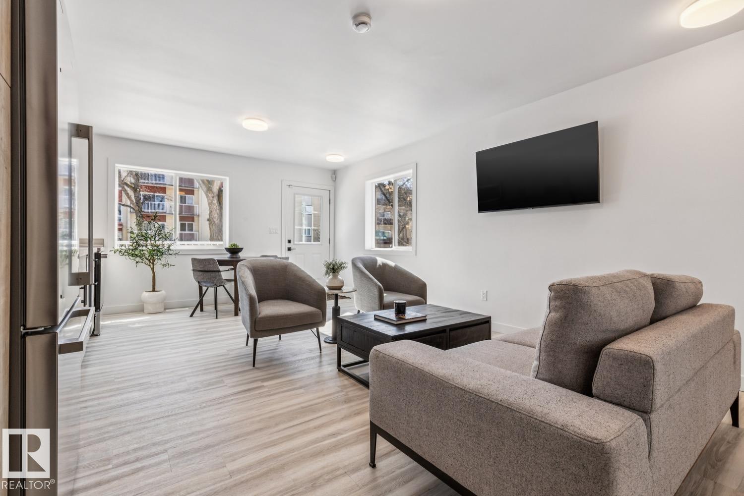 Brand new modern fourplex offers an exceptional investment opportunity in a prime location, just steps from downtown, MacEwan University & Rogers Place, with schools, daycare, NAIT, Kingsway Mall, & the Kingsway/Royal Alex LRT Station nearby. Each of the four townhomes spans three finished levels & feature 3 bedrooms & 2 full baths. Main floor features a gourmet kitchen with full-height cabinetry, stainless steel appliances, wood counter tops, complimented by subway tiled backsplash. Interiors include luxury vinyl plank flooring and two full bathrooms with tile to the ceiling. Finished basements add a large bedroom with ensuite & dual closets. Smooth ceilings throughout enhance the modern design. All units feature their own amenity space/private deck. Covered by New Home Warranty, this is a true turnkey investment. Price includes $65,000 gst; get 100% of that gst back with the New Residential Property Rebate Program. See the GST/HST memorandum 19-3-9. (id:51989)