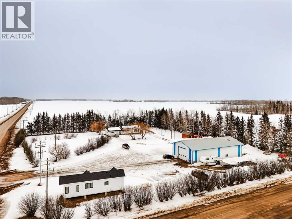 Welcome to this beautiful 2.85-acre acreage ideally located right off Highway 697, offering the perfect blend of convenience and country living. Surrounded by mature trees, this property provides a private and peaceful setting with plenty of space to enjoy the outdoors. The 1,445 sq ft home features 2 bedrooms and 1 bathroom, offering a comfortable and functional layout filled with natural light and cozy charm. A standout feature of this property is the impressive 40 ft x 90 ft shop, complete with a loft—ideal for storage, a workspace, or future development. Whether you're looking for room for hobbies, a home-based business, or extra storage, this shop delivers exceptional versatility. This property is perfect for those seeking space, privacy, and easy access to main routes while still enjoying the tranquility of rural living. (id:51989)