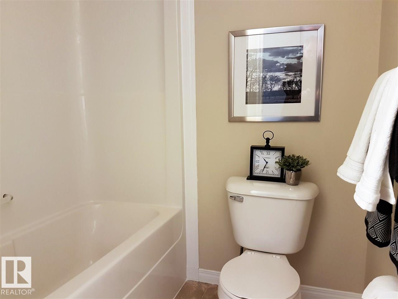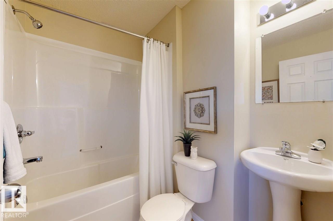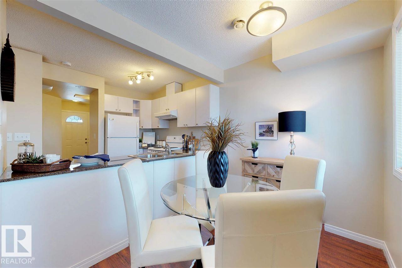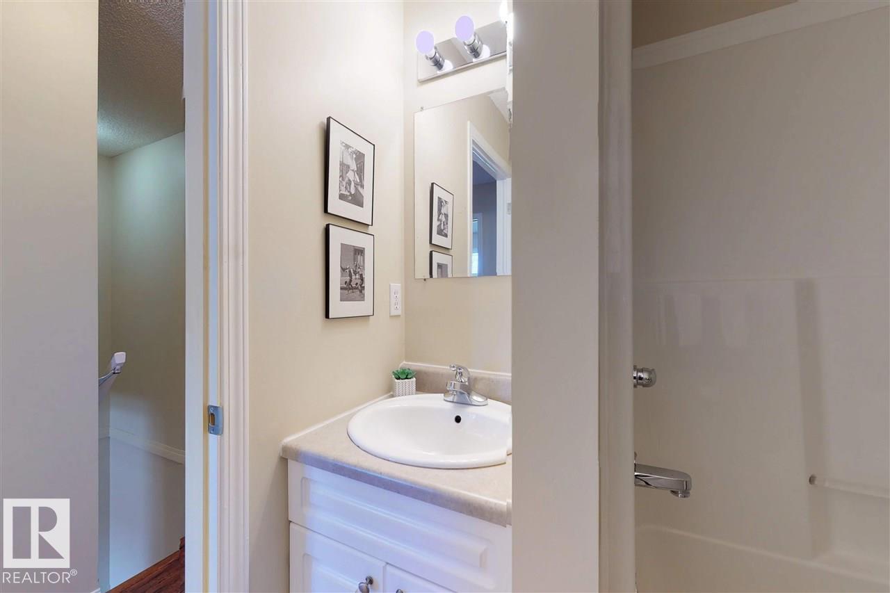 Welcome to this attractive two-story townhouse steps from LEDUC COMMON, offering restaurants, banks, major retailers, dollar stores and more. Enjoy an ATTACHED GARAGE plus driveway parking. Inside, a LARGE FOYER with coat closet and newer vinyl flooring leads to a convenient 2-PIECE BATH. The efficient kitchen features QUARTZ COUNTERS and a CERAN-TOP AMANA RANGE. A bright dining area overlooks the cozy living room with a NATURAL GAS FIREPLACE and a LARGE MANTEL for your TV and electronics. Upstairs are THREE BEDROOMS, including a SPACIOUS PRIMARY with WALK-IN CLOSET and FOUR-PIECE ENSUITE. Another FULL BATH serves the additional bedrooms. The 2ND-FLOOR LAUNDRY ROOM adds everyday convenience. Nearby is a HUGE PARK with playground and toboggan hill. Quick access to the INTERNATIONAL AIRPORT, NISKU and EDMONTON. You get it all: attached garage, three bedrooms, fireplace and 2.5 baths. (id:51989)