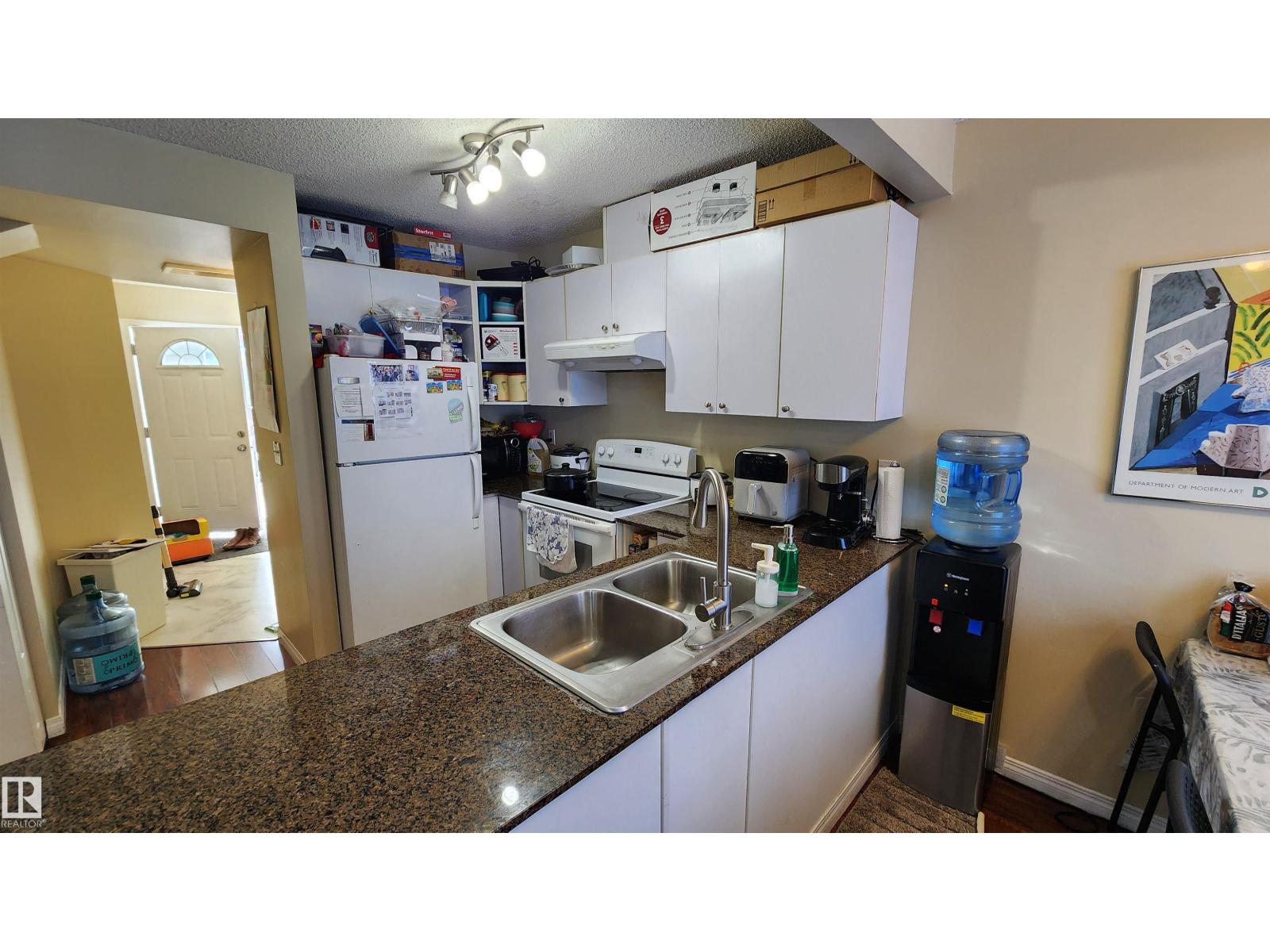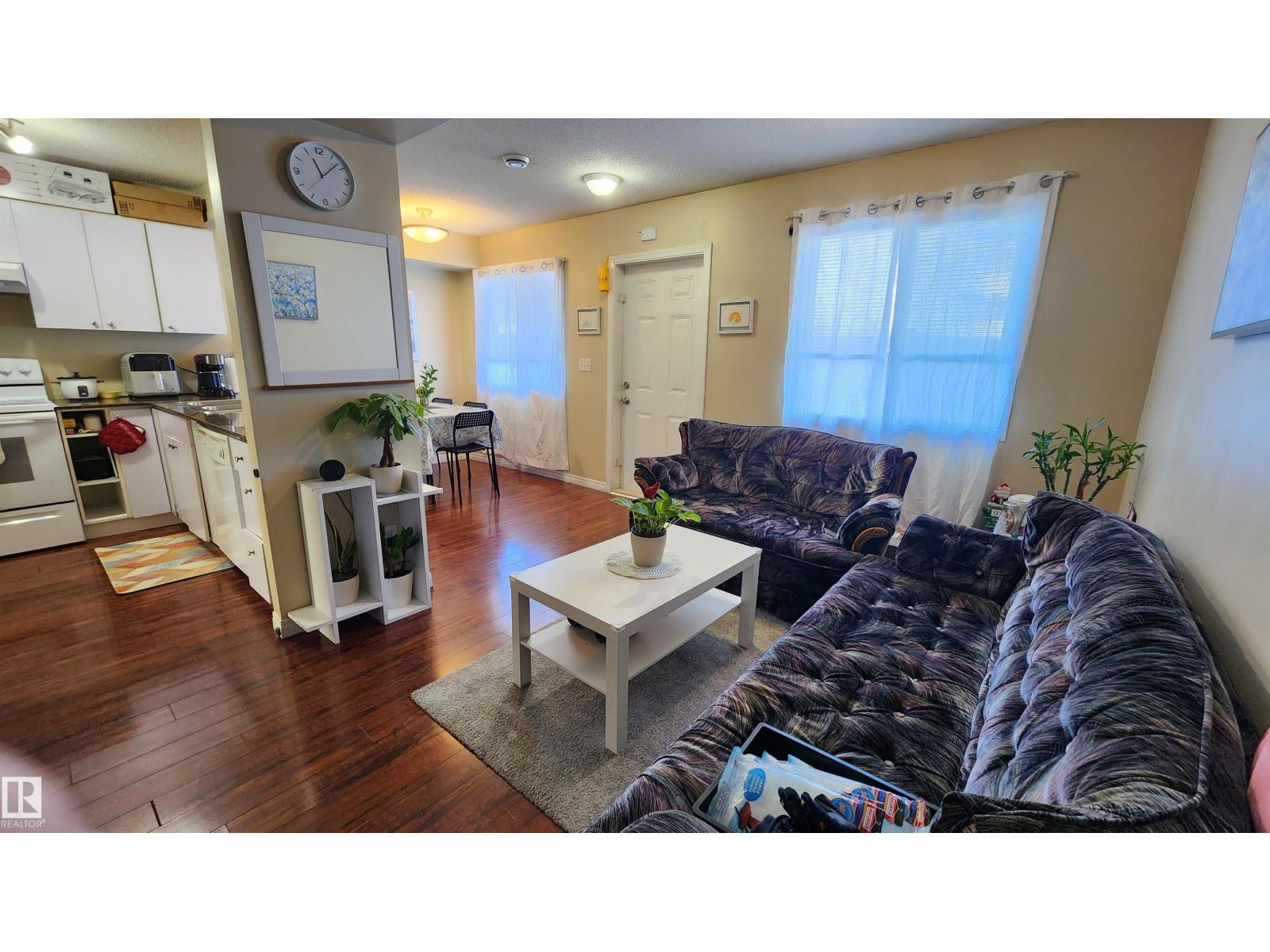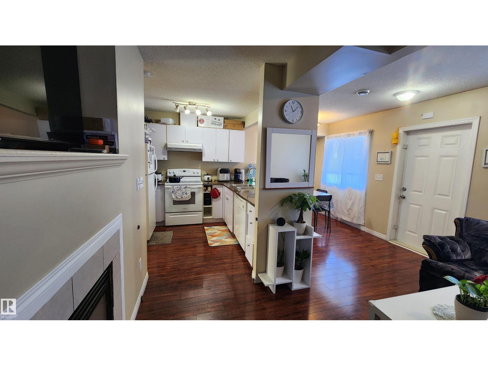 Welcome to this attractive two-story townhouse steps from LEDUC COMMON, offering restaurants, banks, major retailers, dollar stores and more. Enjoy an ATTACHED GARAGE plus driveway parking. Inside, a LARGE FOYER with coat closet and newer vinyl flooring leads to a convenient 2-PIECE BATH. The efficient kitchen features QUARTZ COUNTERS and a CERAN-TOP AMANA RANGE. A bright dining area overlooks the cozy living room with a NATURAL GAS FIREPLACE and a LARGE MANTEL for your TV and electronics. Upstairs are THREE BEDROOMS, including a SPACIOUS PRIMARY with WALK-IN CLOSET and FOUR-PIECE ENSUITE. Another FULL BATH serves the additional bedrooms. The 2ND-FLOOR LAUNDRY ROOM adds everyday convenience. Nearby is a HUGE PARK with playground and toboggan hill. Quick access to the INTERNATIONAL AIRPORT, NISKU and EDMONTON. You get it all: attached garage, three bedrooms, fireplace and 2.5 baths. (id:51989)