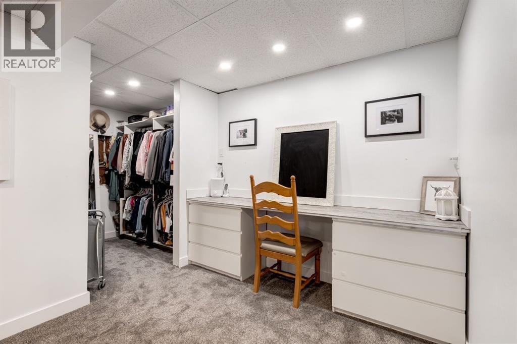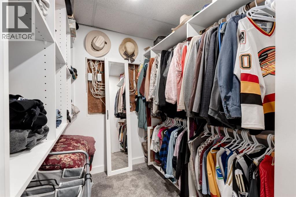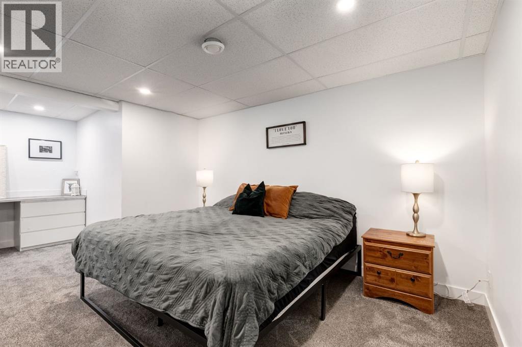 Perched on a sprawling pie-shaped lot on a peaceful cul-de-sac this expansive bungalow showcases an unbeatable location, over 2.500sqft of space, soaring vaulted ceilings, and easy walkability to Morgans Park, soccer fields, and Didsbury schools. This home has been meticulously maintained and updated over the years included a newer driveway, furnace, windows, deck, and more that allows you to not worry about replacing big ticket items. As you enter the home through your spacious entryway with room for bench seating and a walk-in closet, you will be greeted by soaring vaulted ceilings with wood paneling - a rare and elegant feature not often found in Didsbury. The main floor showcases a large open concept living space with high ceilings and is flooded with natural light through large south facing windows. The spacious dining room provides ample space for large gatherings with family and friends and is located adjacent your large kitchen that boasts beautiful, solid wood shaker cabinetry, a gas stove, stainless steel appliances, and tons of counter space and storage. The primary bedroom is large enough to fit king-sized furniture and features two closets – the walk-in closet is plumbed in for a 2-piece ensuite bathroom, which could be easily installed. The second spacious bedroom has a large, bright window, and tons of space for furniture and a desk. The third main floor bedroom provides direct access to the back deck through patio doors and could be the perfect place for a home office. Upstairs is completed with a sizable 4-piece bathrooms with beautiful tile. Downstairs is accessible through a separate side entryway that provides easy access to your oversized 24ftx24ft garage. The basement has been beautifully renovated and boasts a sprawling fourth bedroom with a stunning 4-piece ensuite bathroom, tons of storage, and a large walk-in-closet. The basement also features a large media room, gym/flex space, and a large storage and laundry area. Don’t worry about parkin g with your large, newer concrete driveway that makes the perfect place to store vehicles/RVs, and provides an amazing sport court for street hockey, basketball, and more. The expansive backyard features a newer deck, beautiful landscaping, and tons of room to play and enjoy the warm summer days. Don’t miss out on this opportunity to own an incredible home on one of the quietest cul-de-sacs in town with easy access to walking paths, golf, parks and school. (id:51989)