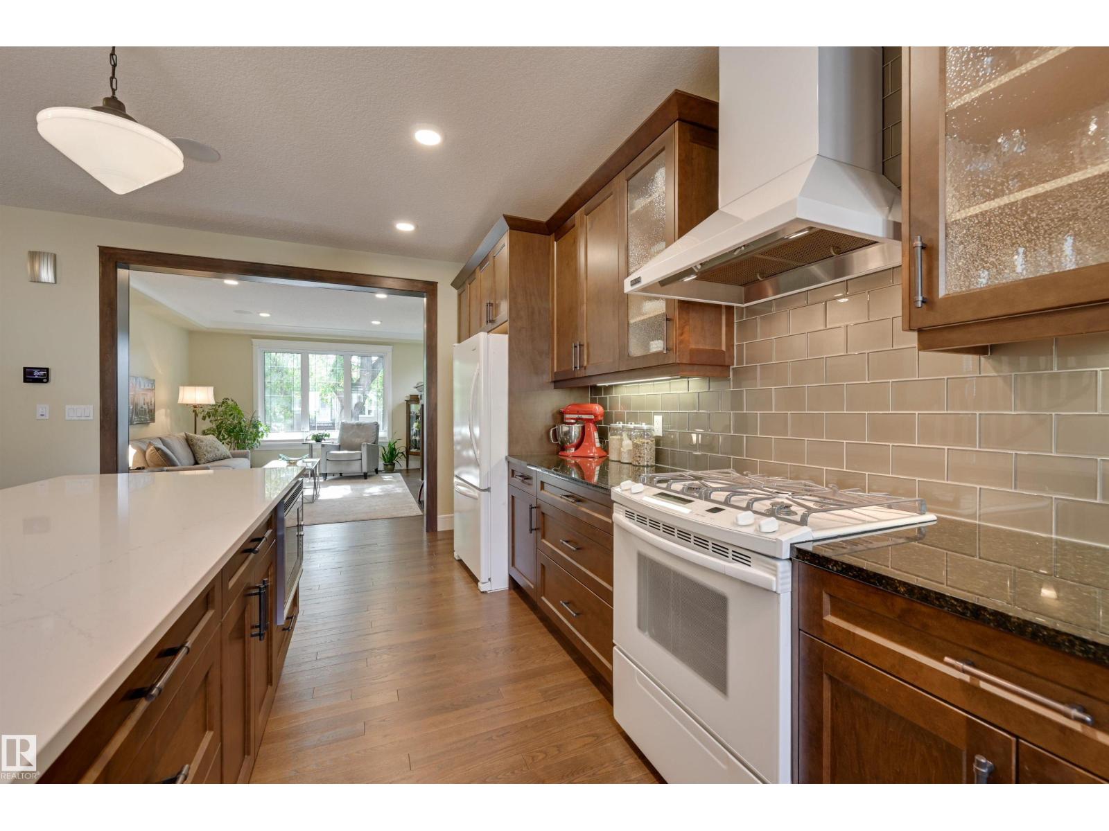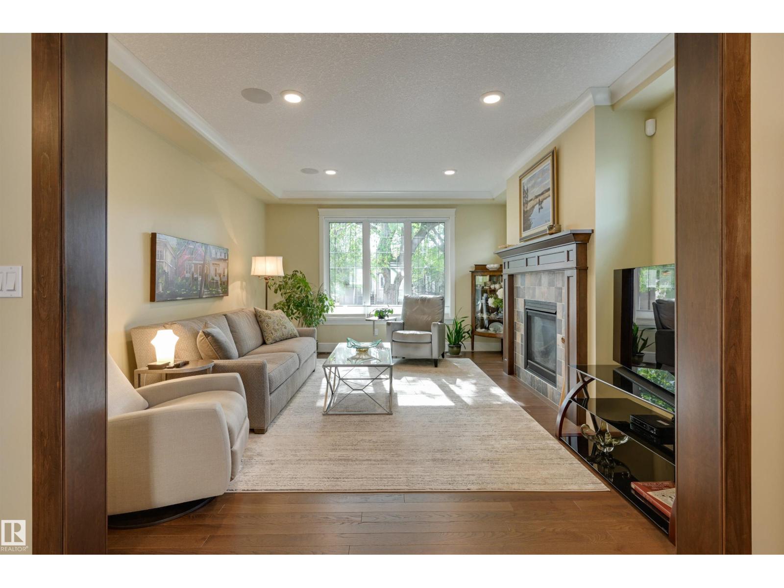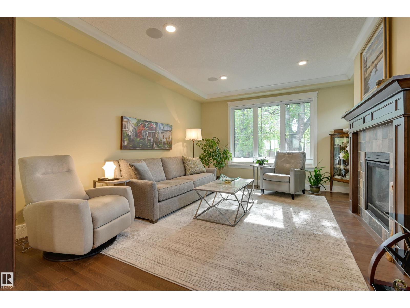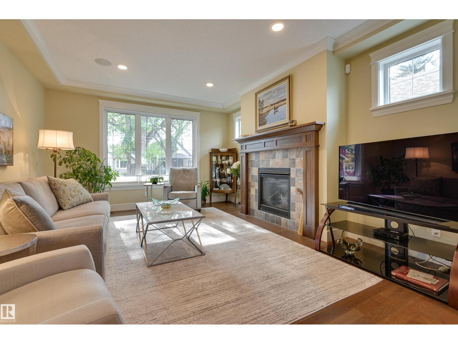 Welcome to this CUSTOM BUILT home! With aprox. 2,700 sq. ft.total living space, this property offers 3 bedrooms and 2.5 baths. The open floor plan is filled with natural light, featuring a modern kitchen,flowing effortlessly into the diningroom with views to the garden and living room enhanced by a cozy fireplace. Primary suite boasts a spa-inspired ensuite with STEAM SHOWER, bonus room w/ access to south balcony. Downstairs, find 2 additional bedrooms,full bath & family room with wet bar—perfect for entertaining.Outdoors, enjoy a private yard enhanced with a bubbler water feature and perennial gardens and patios.A true highlight is the OVERSIZED HEATED DOUBLE GARAGE WITH LARGE LOFT,ideal for workshop, studio or man cave. Energy efficiency shines with SOLAR PANELS.Set on a 4,300+ sq. ft. lot and located minutes from the University of Alberta, Whyte Avenue, downtown, and the river valley, this home combines style, function, and convenience. A true Queen Alexandra gem—move-in ready and designed to impress! (id:51989)