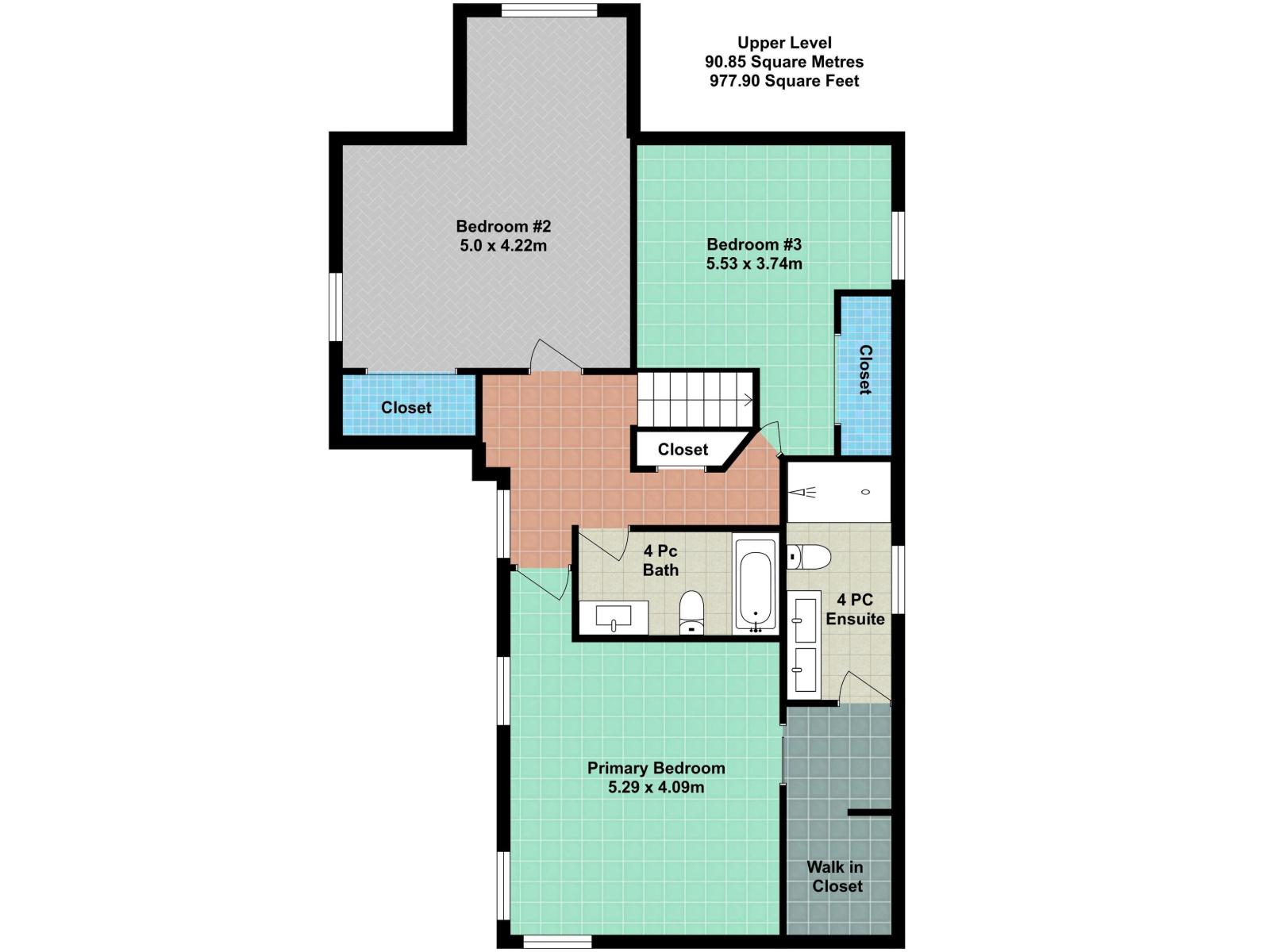 | Upper Level | Primary Bedroom | 5.29 m | 4.09 m | 5.29 m x 4.09 m |