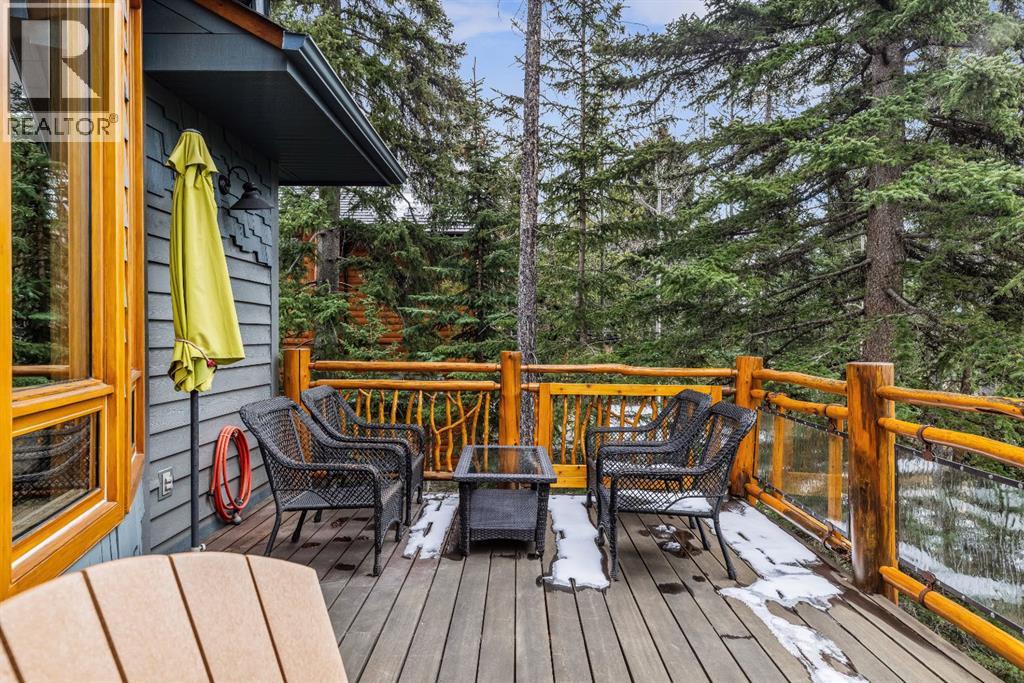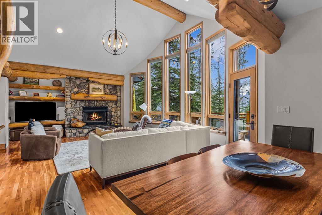 Perched along the ridge in Silvertip and backing directly onto the golf course, this beautifully crafted single-family home offers timeless mountain charm, privacy, and breathtaking views of the Three Sisters. Spanning over 2,800 square feet, the home showcases classic Canmore character with exposed log beams, vaulted ceilings, and warm finishes that create an inviting alpine atmosphere. The main level is designed for convenient one-floor living, featuring a bright, open-concept layout with seamless access to a large south-facing deck perfect for soaking in the sun and surrounding mountain vistas. Both bedrooms on this level include private ensuites, offering comfort and flexibility for owners and guests alike. The lower level expands the living space with a generous recreation room that walks out to a private, treed backyard. Here, you’ll find a peaceful setting complete with a patio, fire pit, and hot tub ideal for relaxing or entertaining year-round. Two additional bedrooms and a full bathroom complete this level, providing ample room for family and visitors. A double car garage and additional storage shed add practicality, while the home’s location on the Silvertip ridge offers a rare combination of tranquility, views, and direct access to world-class golf and mountain trails. A true Canmore mountain home, rich in character and perfectly positioned in one of the area’s most sought-after communities. (id:51989)