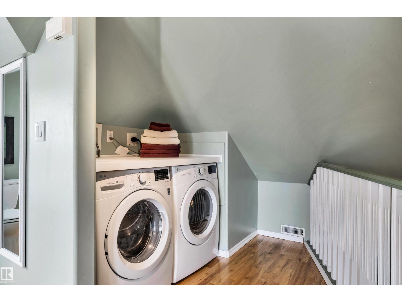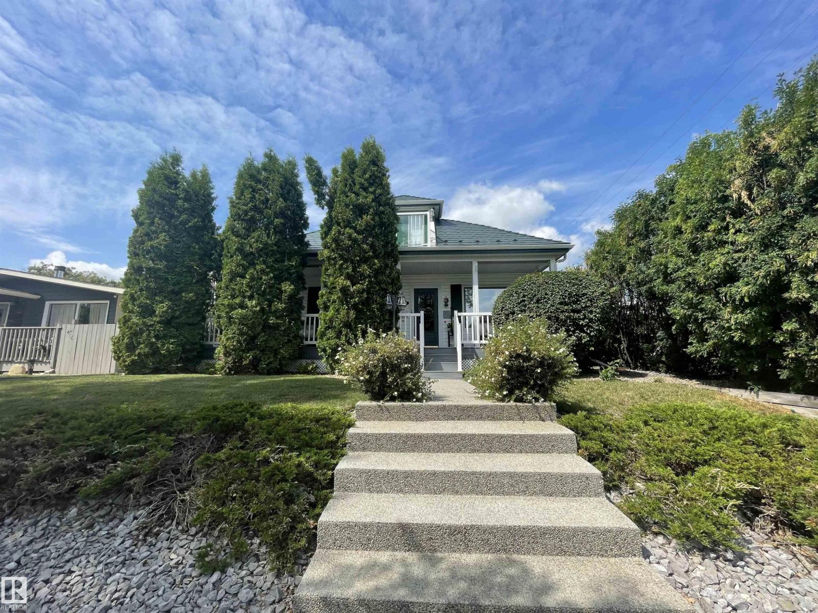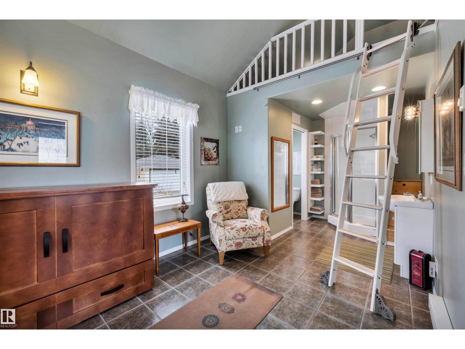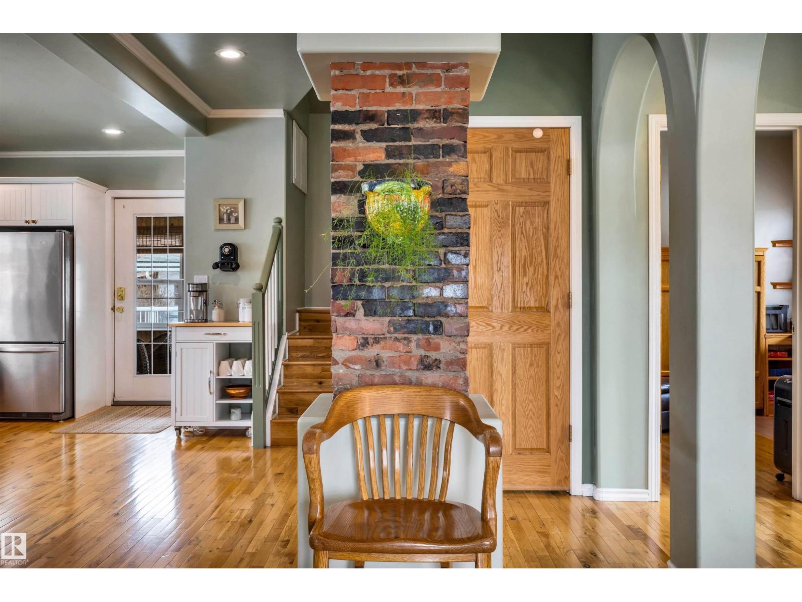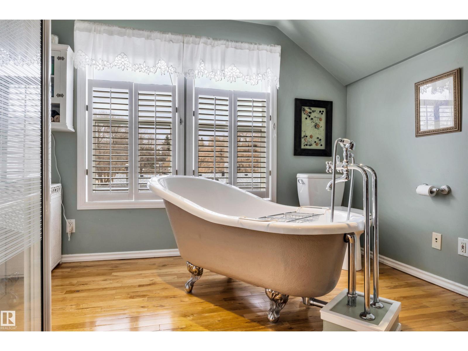 One-of-a-kind historical home in the heart of St. Albert! Built in 1910 and meticulously restored, this house once belonged to Bertha Kennedy, and features gleaming hardwood floors and an open design on the main floor with archways and crown moulding. The modern white kitchen has stainless steel appliances, pantry and lots of counter space. Enjoy the spacious living room with gas fireplace, the original brick chimney in the center and formal dining room. An office and 2 pce bath complete the main floor. The entire upper floor is the primary suite, featuring hardwood floors, a 4 pce ensuite with claw foot tub and garden doors to a balcony. The basement is finished as a one bedroom in-law suite with 2nd kitchen, laundry facilities and storage. There is also a guest suite at the back with its own 3 pce bath, sleeping loft with rolling ladder and its own washer and dryer! A 3 season sunroom with wood stove is great for fall nights! Maintenance free decks at front and back. Central A/C. Newer furnace and HWT. (id:51989)