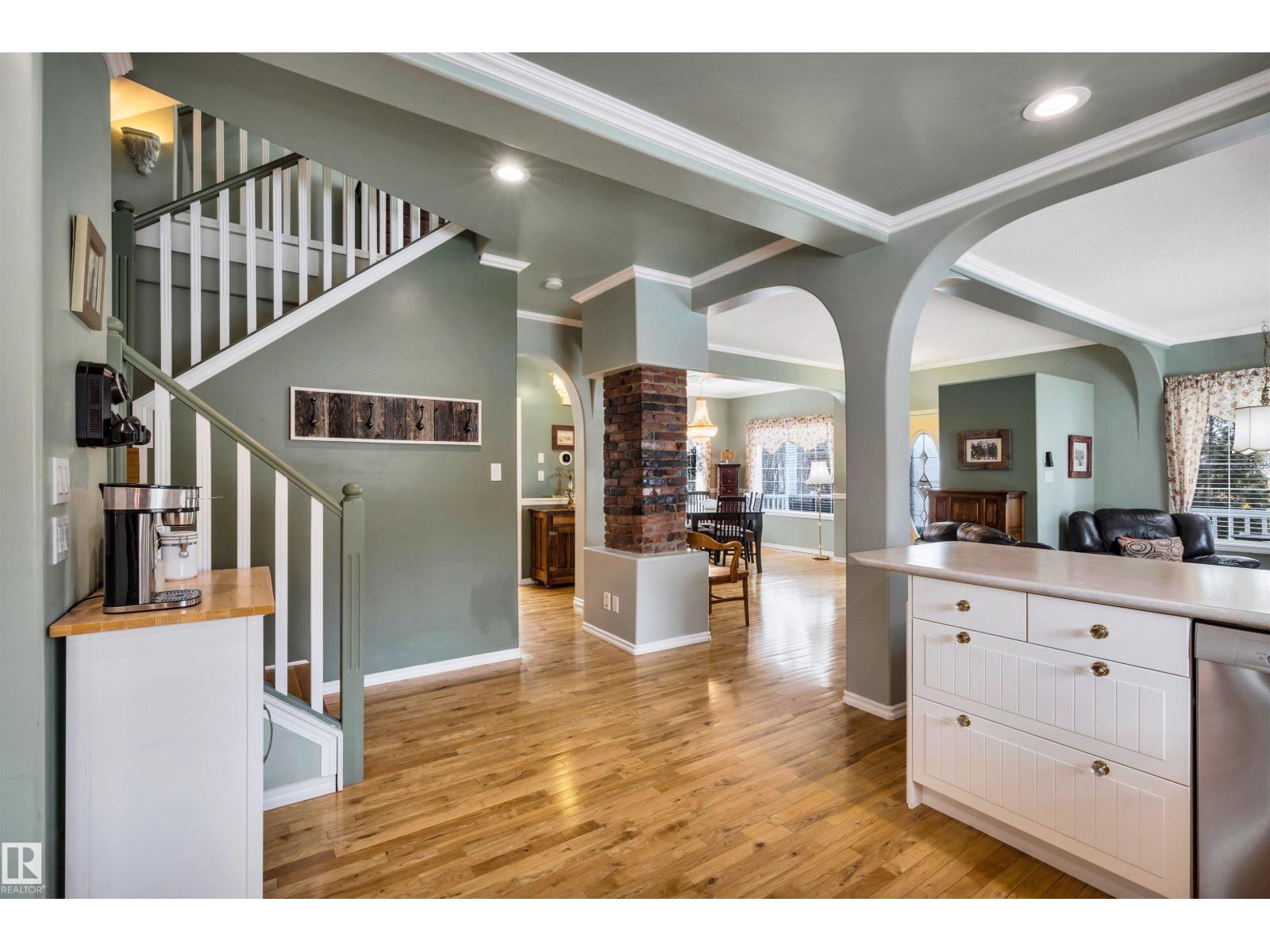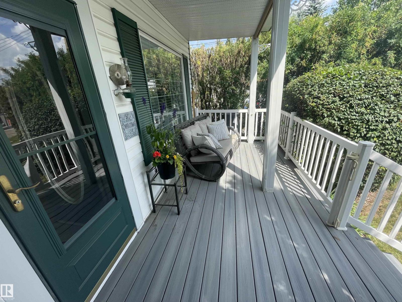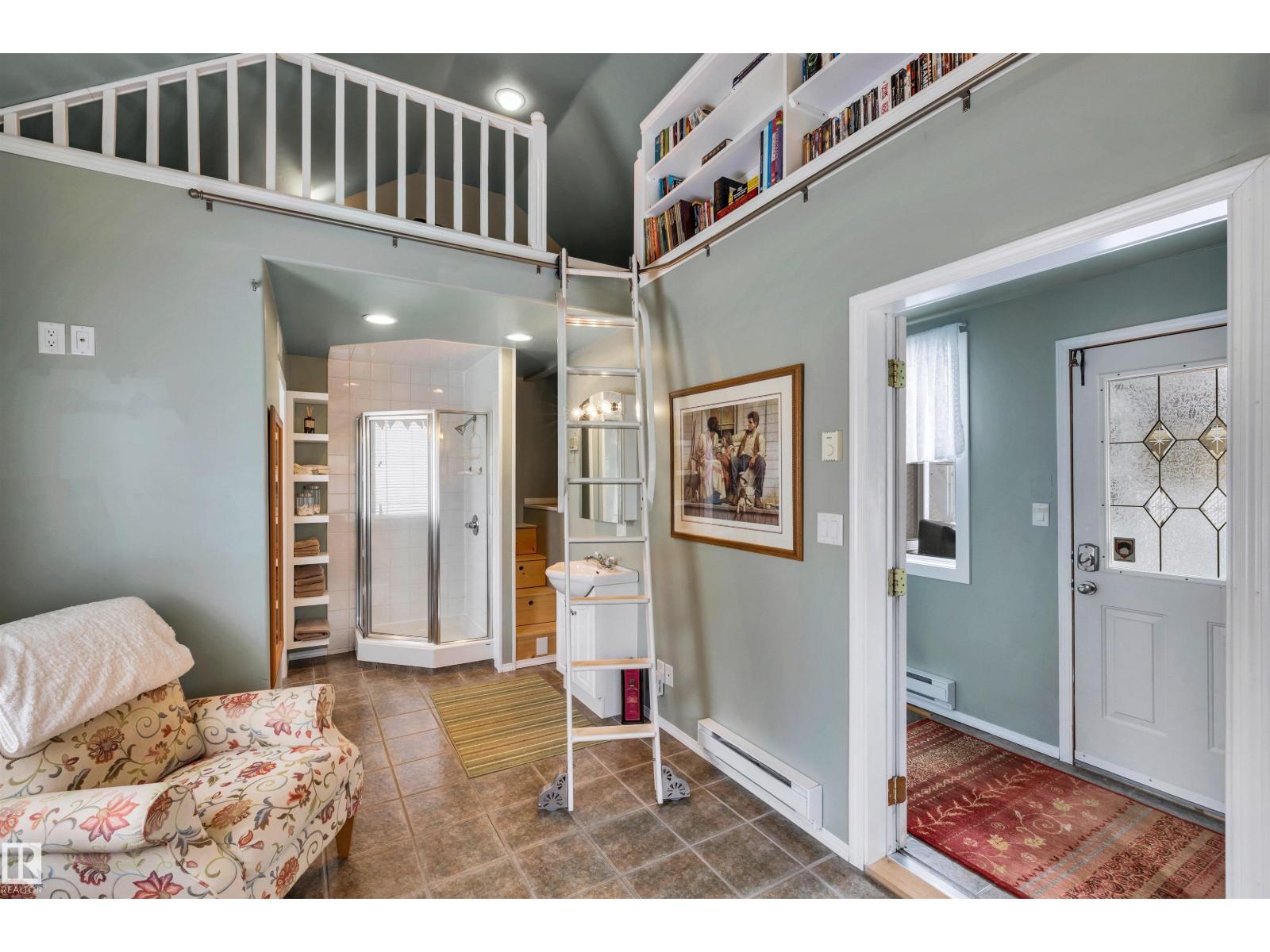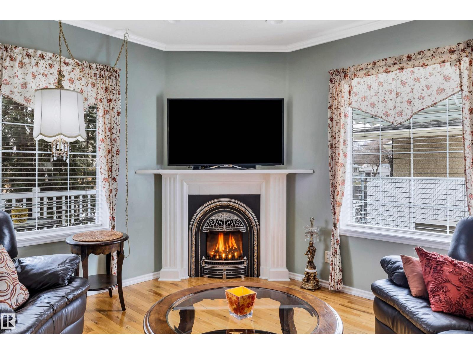 One-of-a-kind historical home in the heart of St. Albert! Built in 1910 and meticulously restored, this house once belonged to Bertha Kennedy, and features gleaming hardwood floors and an open design on the main floor with archways and crown moulding. The modern white kitchen has stainless steel appliances, pantry and lots of counter space. Enjoy the spacious living room with gas fireplace, the original brick chimney in the center and formal dining room. An office and 2 pce bath complete the main floor. The entire upper floor is the primary suite, featuring hardwood floors, a 4 pce ensuite with claw foot tub and garden doors to a balcony. The basement is finished as a one bedroom in-law suite with 2nd kitchen, laundry facilities and storage. There is also a guest suite at the back with its own 3 pce bath, sleeping loft with rolling ladder and its own washer and dryer! A 3 season sunroom with wood stove is great for fall nights! Maintenance free decks at front and back. Central A/C. Newer furnace and HWT. (id:51989)