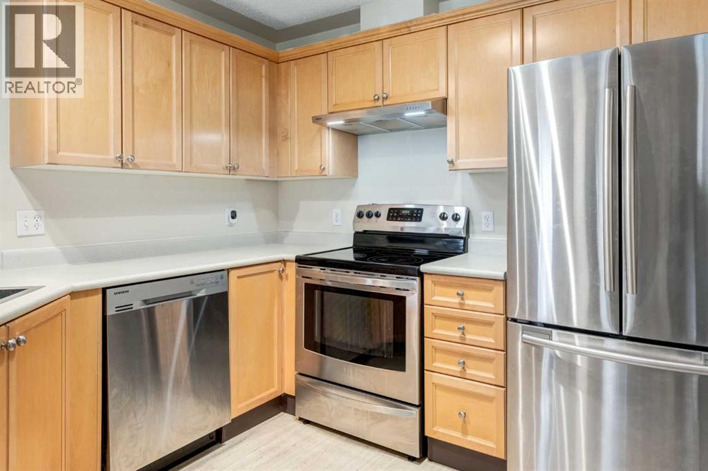 Welcome to this fully renovated, move-in ready 2-bedroom, 2-bathroom home in the highly desirable Pavilions at Rocky Ridge — an ideal choice for anyone looking for modern style, great amenities, and easy access to transit. The open-concept layout brings in plenty of natural light, with a bright living room and kitchen that flow seamlessly together. Step out onto your private balcony to enjoy the beautiful southwest warm morning sun. The balcony also includes a gas hookup for your BBQing convenience. The spacious primary bedroom features a 3-piece ensuite and a walk-in closet that feature closet organizer. The second bedroom works well for guests, a home office, or a roommate and comes with built-in Murphy bed. You’ll also love the full-size laundry room with extra storage and newer stacked washer/dryer, plus an additional storage space right on the balcony.Your titled underground parking stall is conveniently located just steps from the elevator, making year-round access simple and comfortable. This unit also comes with 2 parking passes allowing for street parking as well. Residents of The Pavilions enjoy an impressive range of amenities, including a fitness centre, theatre room, library, social room, and a games room with a pool table and more. All of this is set within a quiet, well-managed community close to the Rocky Ridge LRT, parks, pathways, and all the conveniences of Northwest Calgary. (id:51989)