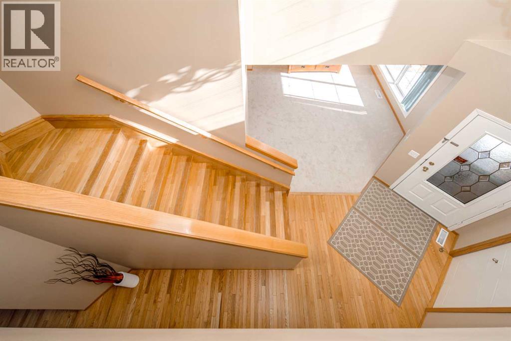 Well maintained 2,240 sq ft two-storey home featuring 4 bedrooms on the upper level, ideally located on a quiet street with a west-facing backyard perfect for afternoon sun. The spacious primary bedroom offers a comfortable sitting area and a 4-piece ensuite with separate shower. The main floor features hardwood flooring throughout the hallway, family room, kitchen, breakfast nook and staircases, a cozy family room with gas fireplace and built-in bookshelves, plus a formal living room and dining room, ideal for family gatherings and entertaining. Functional kitchen with bright breakfast nook and direct access to the large backyard deck, perfect for summer BBQs. Main floor office/den and laundry add everyday convenience.The fully developed basement includes a large bedroom, huge recreation room with wet bar, hobby room and another 4-piece bathroom, offering plenty of space for family living or guests. New carpet on the main level (2026) and hot water tank replaced in 2021.Excellent location within walking distance to bus stops, playgrounds, parks and nearby shopping amenities. (id:51989)