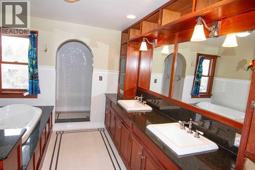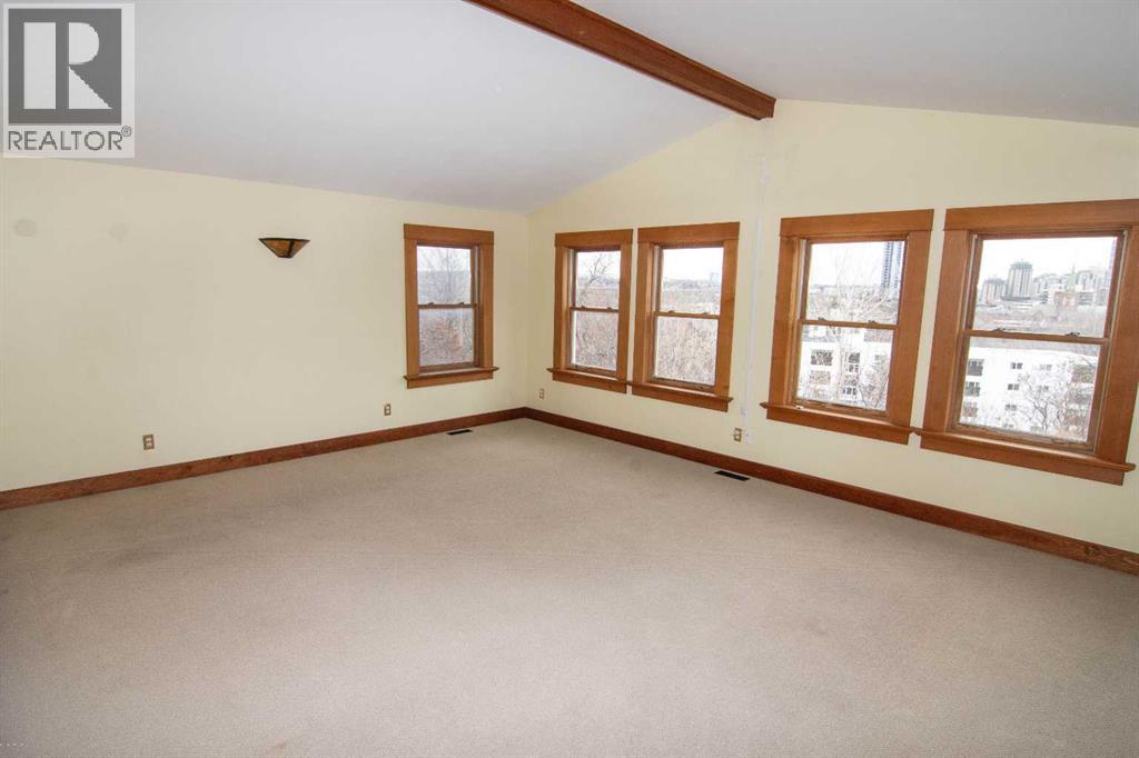 Perched above the city in one of Calgary’s most storied and coveted enclaves, this exceptional craftsman residence captures sweeping downtown views and timeless architectural beauty. Nestled on an expansive 7500 sw ft lot, the home offers over 4500 sq ft of meticulously designed living space- where heritage character and modern refinement exist in perfect harmony. Originally constructed in 1919 and thoughtfully expanded, the home preserves its historic soul while embracing contemporary family living. A private tree-lined approach and inviting front veranda create a sense of arrival that is both warm and distinguished. Inside, rich hardwood floors, custom millwork, and 5 fireplaces set a tone of understood elegance. A series of inviting living spaces unfold, including a refined sitting room, and a beautifully appointed open-concept kitchen and living area. Designed for both intimate moments and grand entertaining, the kitchen features premium appliances, including a new dishwasher, stone countertops, and abundant cabinetry., while the adjoining living room frames captivating city views and opens seamlessly to the rear veranda. The upper level is anchored by a serene primary retreat, where vaulted ceilings and expansive windows showcase panoramic skyline vistas. The spa-inspired ensuite offers a luxurious escape , complete with dual vanities, a deep soaker tub, and an elegant shower. Three additional bedrooms provide comfort and flexibility for family living. The walk-up lower level enhances the home’s versatility, offering a spacious family room with a gas fireplace, a dedicated wine room, a guest bedroom, and a full bath - ideal for hosting or private relaxation. Outdoors, the property transforms into a secluded inner-city sanctuary. The generous rear porch overlooks lush surrounding, creating an ideal setting for summer entertaining. A heated, insulated, oversized Double garage adds further functionality , while rear lane access provides additional convenience. Mom ents from downtown and within walking distance to the vibrant energy of 17 Avenue, the Calgary Tennis Club, and Sunalta School, this residence offers a rare opportunity to own a piece of Calgary’s architectural legacy in a premier location defined by pride of ownership and enduring community charm. (id:51989)