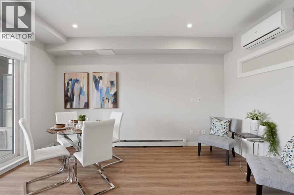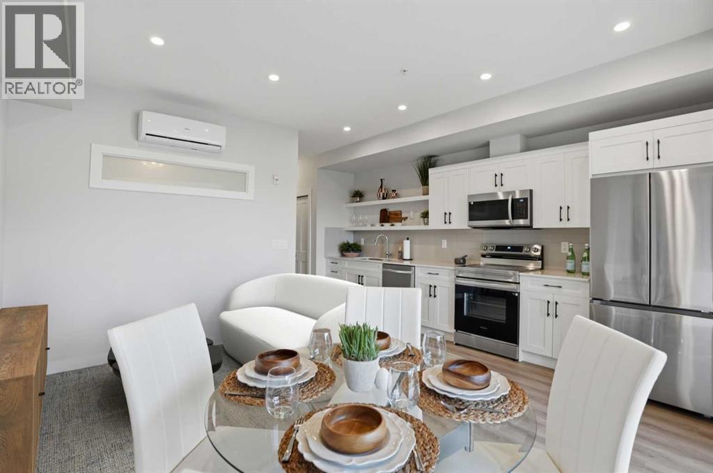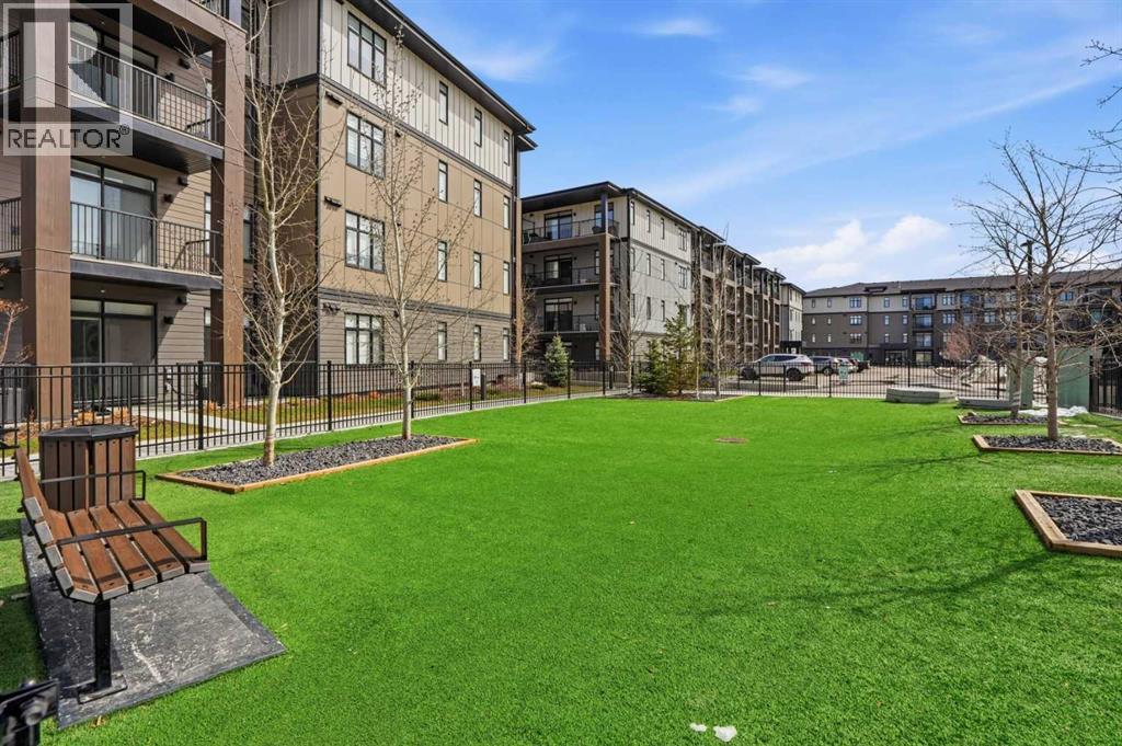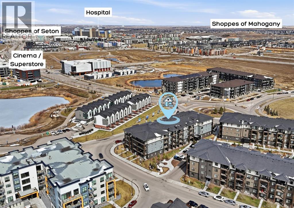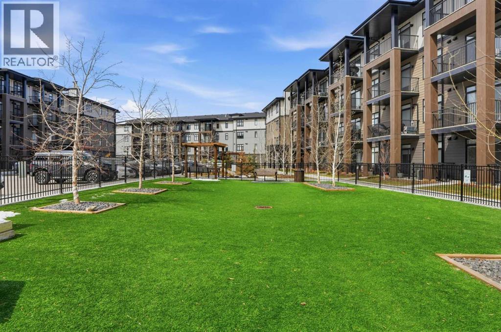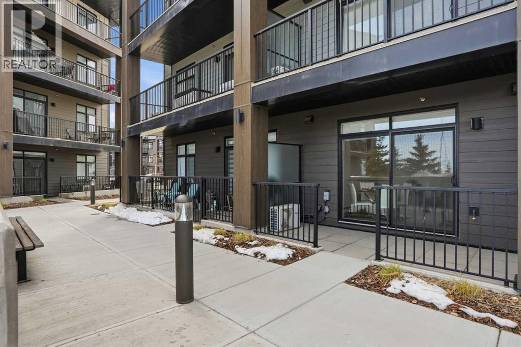This is THE ONE! - 1 bed 1 bath on the 1st floor. | TOP 10 FEATURES: .1. 9' Ceilings .2. Dogs/Cats Allowed .3. Smart Vibrant Finishes & Design .4. Upgraded unit .5. A/C & Air Recirculation .6. 1 Titled Parking Stall (exterior) .7. Walk-Out to Grade/Courtyard .8. Quiet - Sound Attenuation .9. Convenient walk to Grocery, Restaurants, Shopping , Work, Transit, Greenspace .10. Life Simplified. | *****Welcome to Unit 1102 at 200 Seton Circle SE—a stylish upgraded 500 Sq Ft, 1 bedroom, 1 bathroom condo designed for simplicity, comfort, and connection. Perfectly positioned on the main floor, this home offers true walk-out living to a spacious courtyard, making it ideal for pet owners, retirees, or anyone who values easy access and low-maintenance living. Step inside and you’ll immediately notice the 9’ ceilings and the light, airy feel, enhanced by a smart, open-concept layout that maximizes both space and function.The large functional kitchen is a standout feature within the central living area, showcasing higher end cabinetry, quartz countertops, stainless steel appliances, and modern open shelving that adds both style and practicality. It grounds the the dining and living area, where large patio doors allow ample natural light and create a smooth transition to your personal outdoor patio and outdoor space. The oversized bedroom offers a calm and comfortable retreat, while the sleek 4-piece bathroom and convenient in-suite laundry complete the home.This upgraded unit also includes air conditioning and air recirculation for year-round comfort, along with Logel Homes’ Acoustic Shield system that enhances sound attenuation for a quieter living experience. You’ll also have a titled exterior parking stall, and the building is pet-friendly, allowing up to two pets with board approval. For dog owners, the lifestyle here is unmatched—simply walk out your door and head across the street to the off-leash park, or enjoy the enclosed dog run within the central courtyard.Located in the heart of Seton, you’re just steps from Market Street amenities including cafes, restaurants, grocery stores, fitness facilities, and more. The nearby South Health Campus, transit options, greenspaces and walking paths make this an incredibly convenient and connected place to live. Rentals are allowed (no short-term hotel style), making this a flexible option for both homeowners and investors.Whether you’re a retiree looking to right size, a working professional wanting a short commute, or a buyer seeking modern, low-maintenance living in a walkable community, this home delivers on every level. Life is simply easier here—book your private showing today and experience why this is THE ONE. (id:51989)