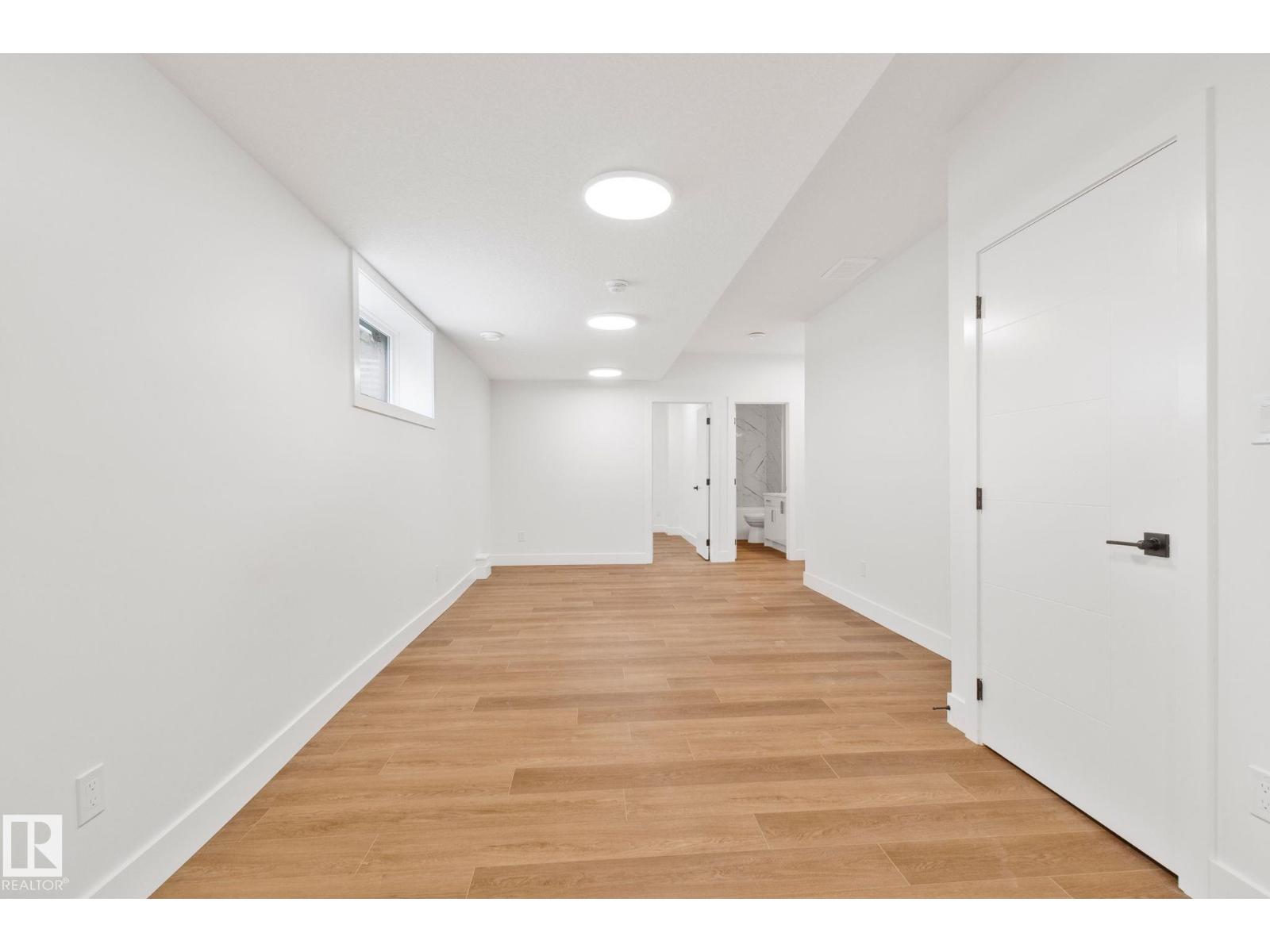 Welcome to this stunning brand new, architecturally designed 2-storey home in desirable Westmount! Featuring 5 bedrooms, 4 bathrooms, and a fully finished basement with separate entrance, this home offers space, style, and potential for a legal suite. The main floor features 10 ft ceilings, triple-glazed windows for natural light, a spacious living room with elegant fireplace, and a chef-inspired kitchen with quartz countertops, waterfall island, and premium finishes. Enjoy bright dining with access to the west-facing deck, plus a mudroom with built-in shelving and bench. The double detached garage is accessed via back lane. Upstairs offers a tranquil primary suite with walk-in closet and custom feature wall, 2 large bedrooms, full bath, and upper laundry. The basement provides a large rec room, 2 bedrooms, and full bath—ideal for extended family or future suite. Easy access to downtown, U of A, and the river valley. (id:51989)